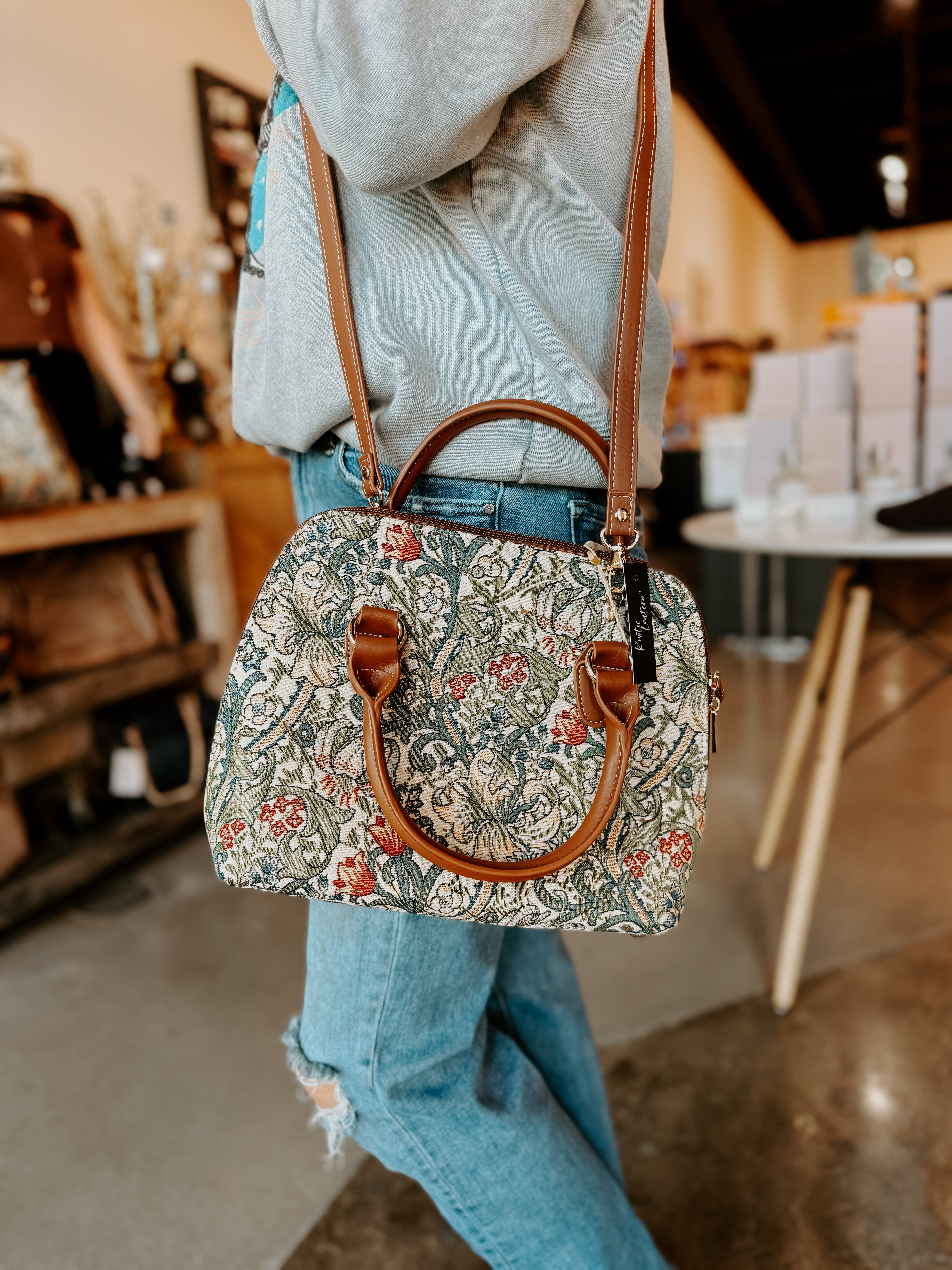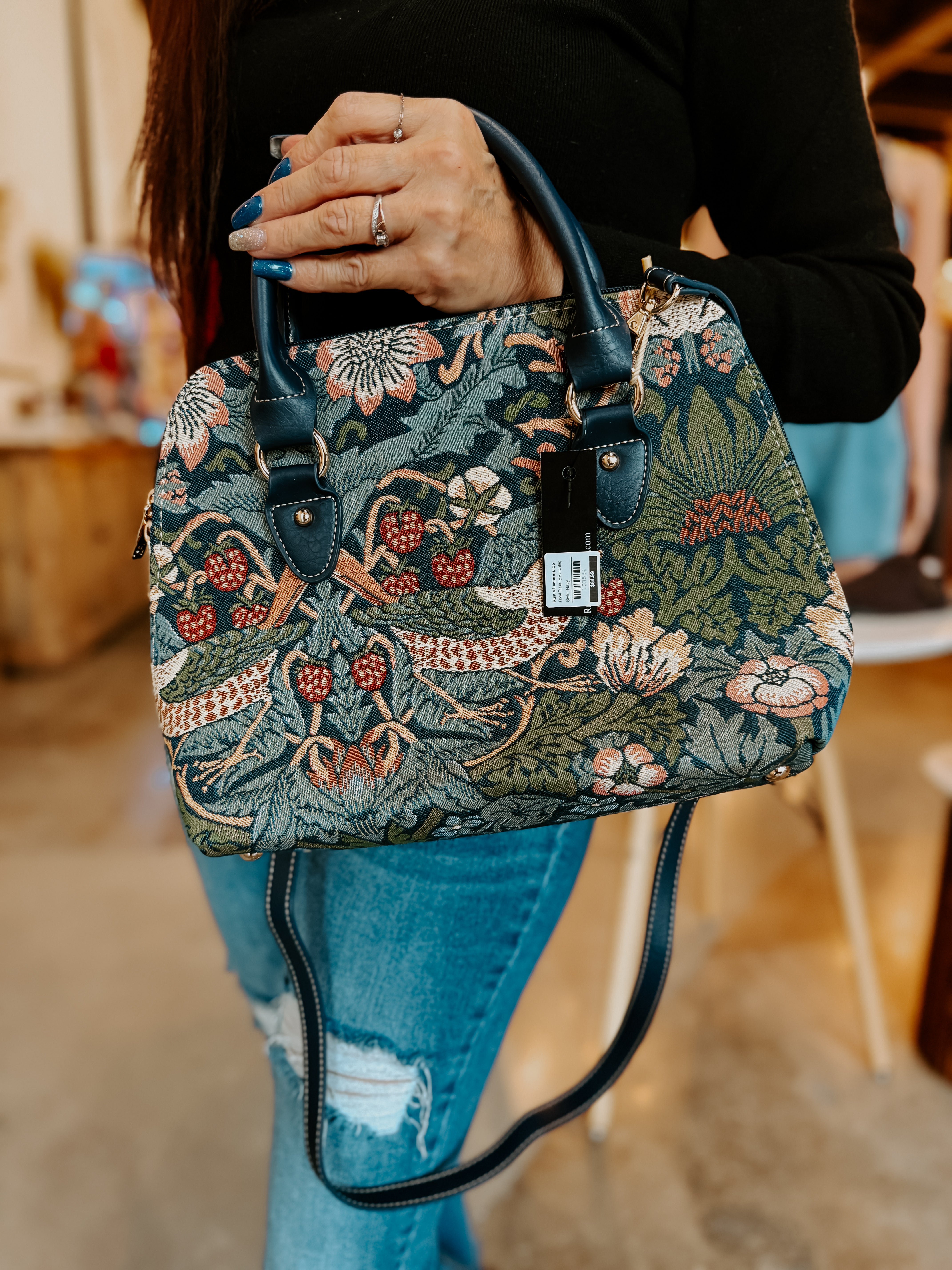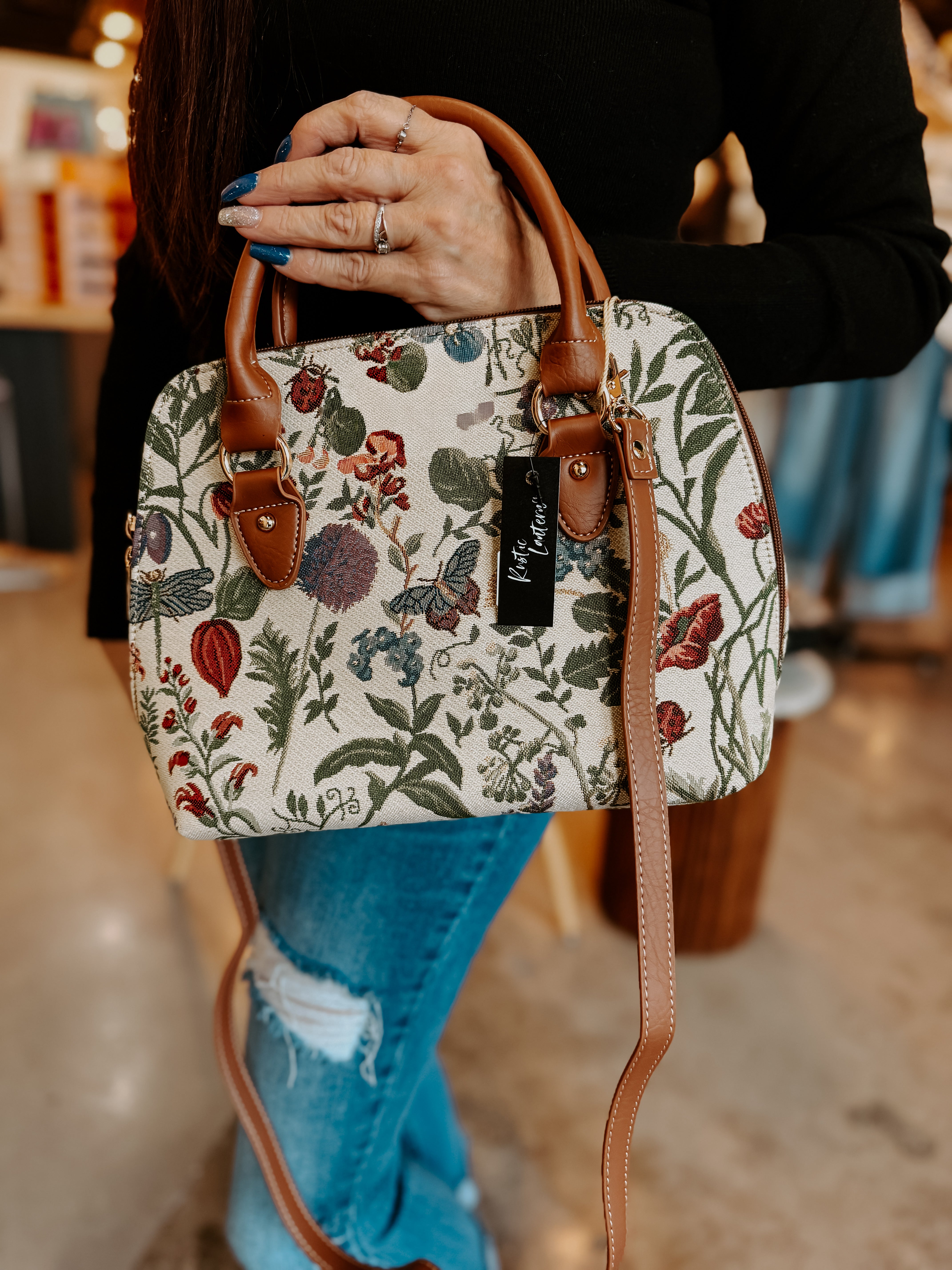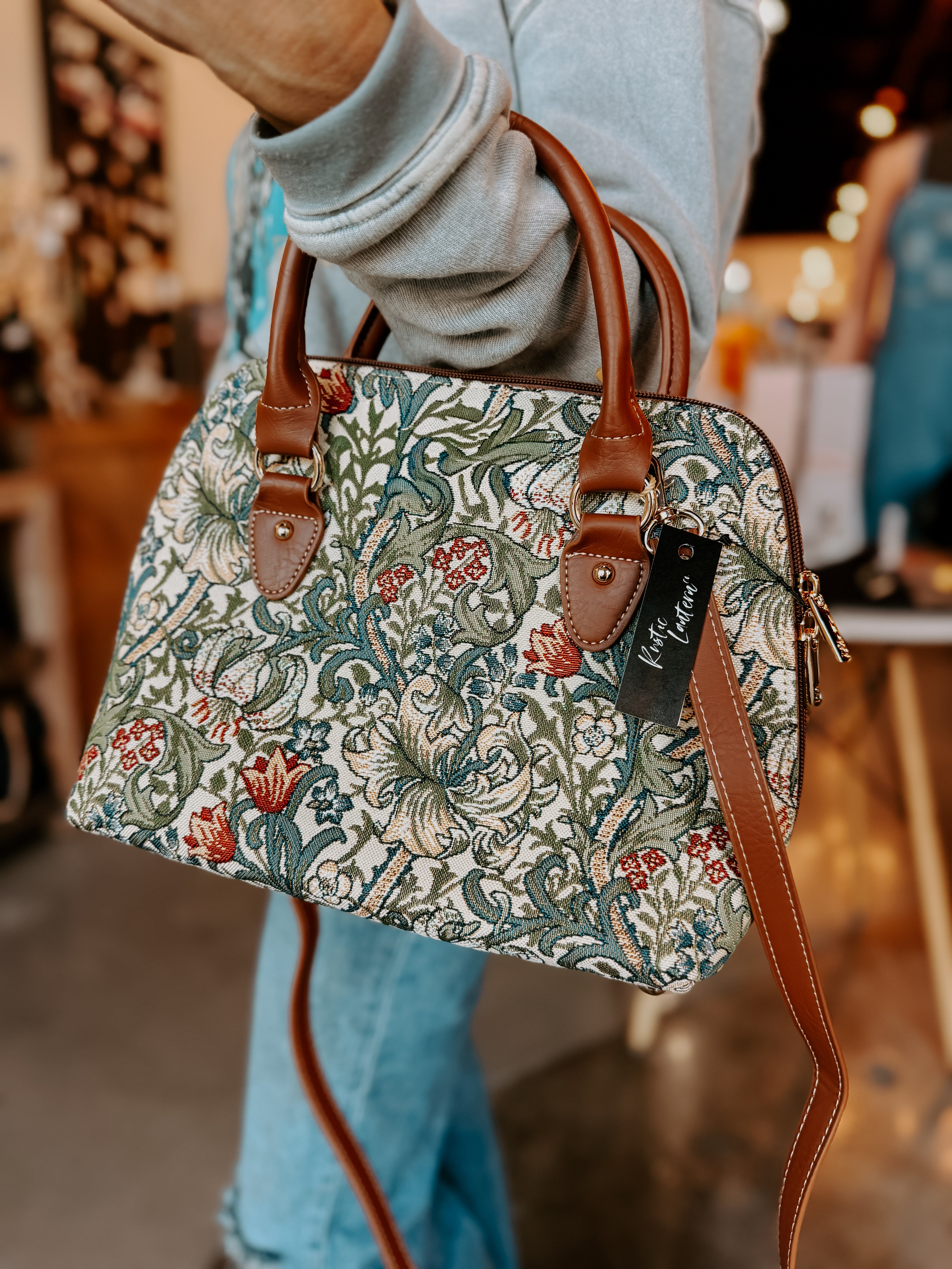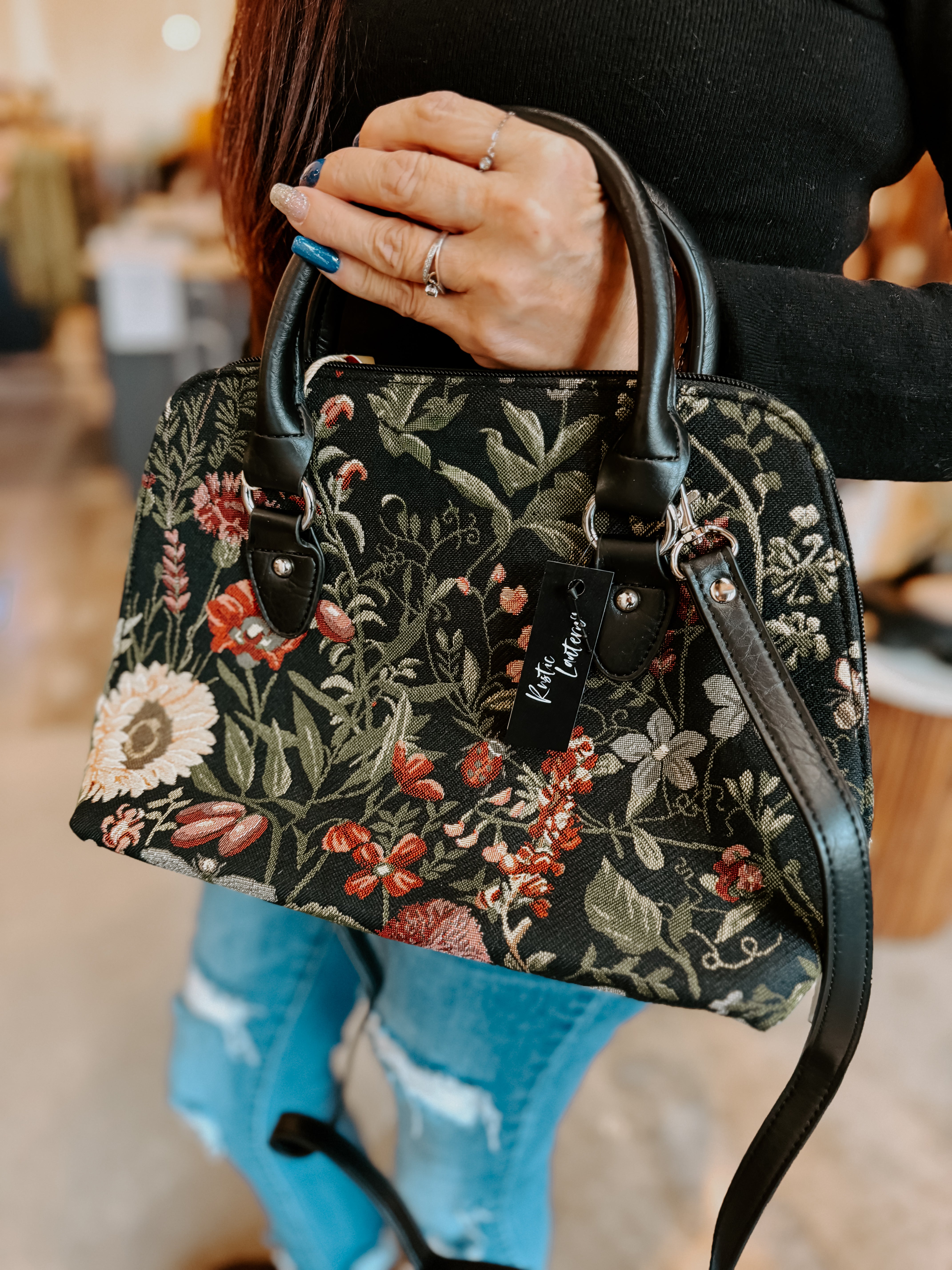 Discover the versatility you've been searching for in our Floral Tapestry Hand Bag—a customer favorite that seamlessly transitions from day to night. This elegantly crafted bag features a stunning floral tapestry design paired with faux leather handles and detachable shoulder straps, allowing you to wear it as a handbag, crossbody, or shoulder bag. Inside, you'll find a thoughtfully organized interior with an open sleeve and zippered pocket, all lined with durable patterned nylon. The full-length zip fastener keeps your essentials secure, while the sturdy base with studded feet protects your investment. Perfect for weekend getaways, evening outings, or everyday adventures—this is the one bag that truly does it all.