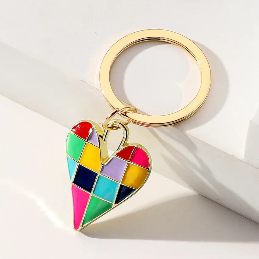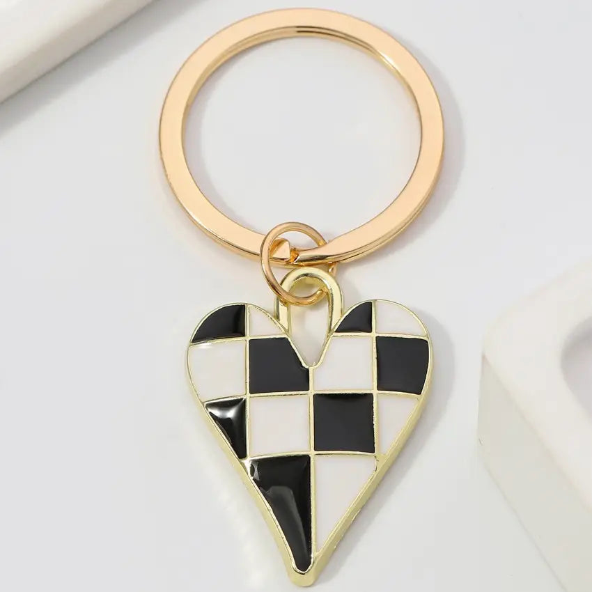 Add a fun touch to your keys or make your bags pop with these awesome checkered heart keychains!