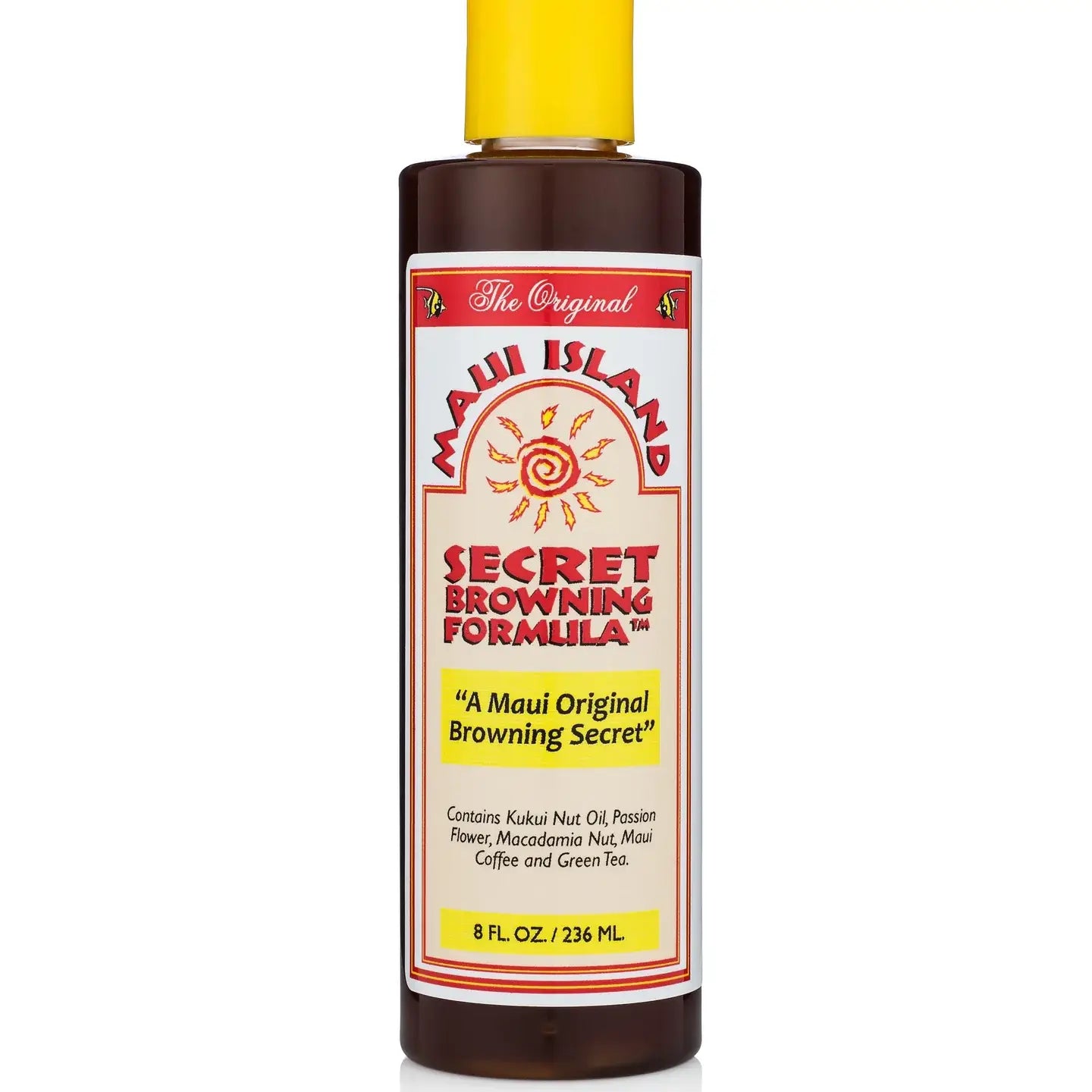 Our Famous Browning Formula born and popularized on the beaches of Maui and loved by those seeking a tan, promotes the fastest, darkest natural sun tan while hydrating your skin and infusing it with nourishing oils and vitamins. We recommend that you have a base tan before using this as it contains no SPF. Combine with SPF for extra sun-sensitive areas where needed.