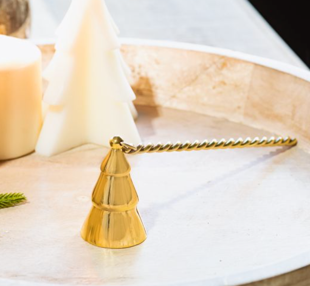 Safely extinguish candles with elegance this holiday season. Our gold Christmas tree snuffer combines festive charm with practical functionality, featuring a graceful tree-shaped design that doubles as charming décor. The long handle keeps your hands safely away from flames, while the polished gold finish adds a touch of sophistication to any room. Perfect for protecting your home and creating a cozy, controlled ambiance throughout the holidays.