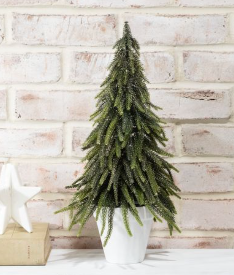 Elevate your holiday décor with this exquisite 17" Gold Dusted Tree, a stunning blend of natural green foliage and luxurious gold shimmer. Presented in a sleek white pot, it's the ideal accent piece for desks, shelves, and side tables throughout your home. The perfect size for those seeking festive charm without overwhelming their space, this tree brings warmth and sophistication to any room. Its versatile design complements both modern and traditional interiors, making it a go-to choice for holiday styling. Transform your seasonal display into something truly memorable with this elegant, conversation-starting centerpiece.