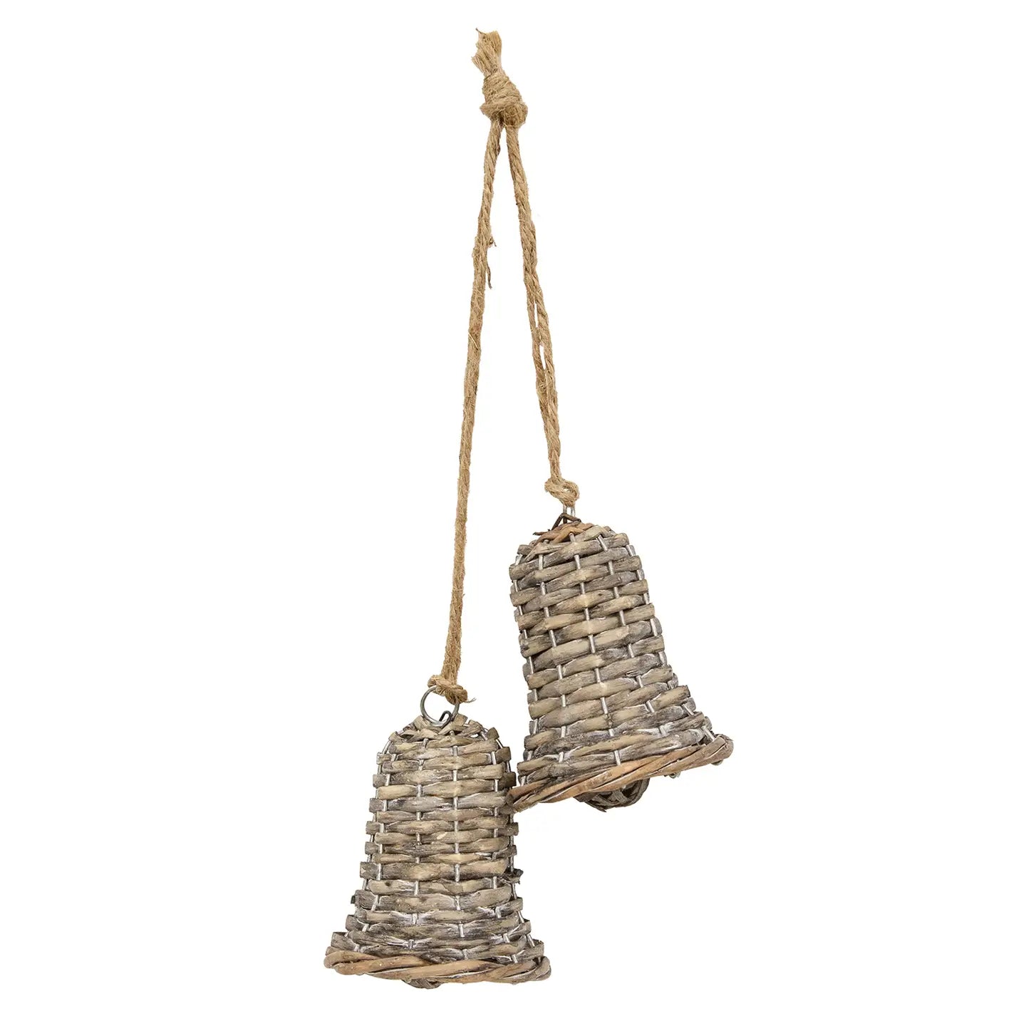 Celebrate the changing seasons with the Gray Willow Bells Pair Ornament. Crafted with a sturdy metal wire frame and woven willow baskets, these 12-inch ornaments feature delicate willow balls inside, hanging gracefully from natural jute cords. Each bell measures 3 inches in diameter, making them a charming focal point for wreaths, garlands, or farmhouse décor. Their rustic craftsmanship adds authentic texture and warmth, perfect for enhancing any seasonal arrangement with an expert touch.