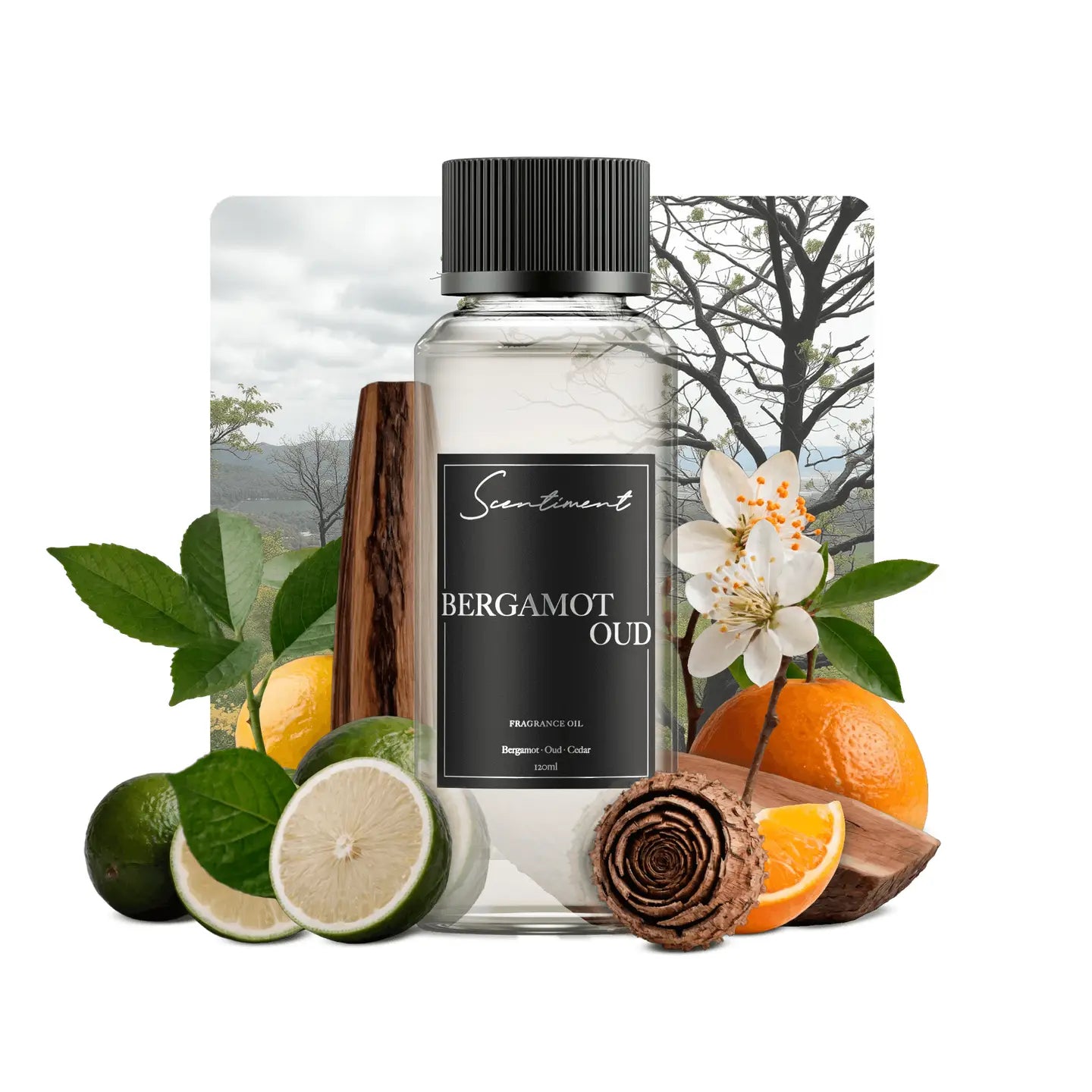 Bergamont Oud - Indulge in the captivating allure of Bergamot Oud, a luxurious fragrance oil that weaves a symphony of scents to enchant your senses. At first whiff, the top notes of vibrant orange, zesty bergamot, and citrusy lemon dance together in a harmonious melody, awakening your spirit with their refreshing brightness. Immerse yourself in the captivating blend of citrusy freshness and woody richness with Bergamot Oud, a scent that leaves a lasting impression wherever you go. Top: Orange, Bergamot, Lemon Middle: Oud Bottom: Cedar