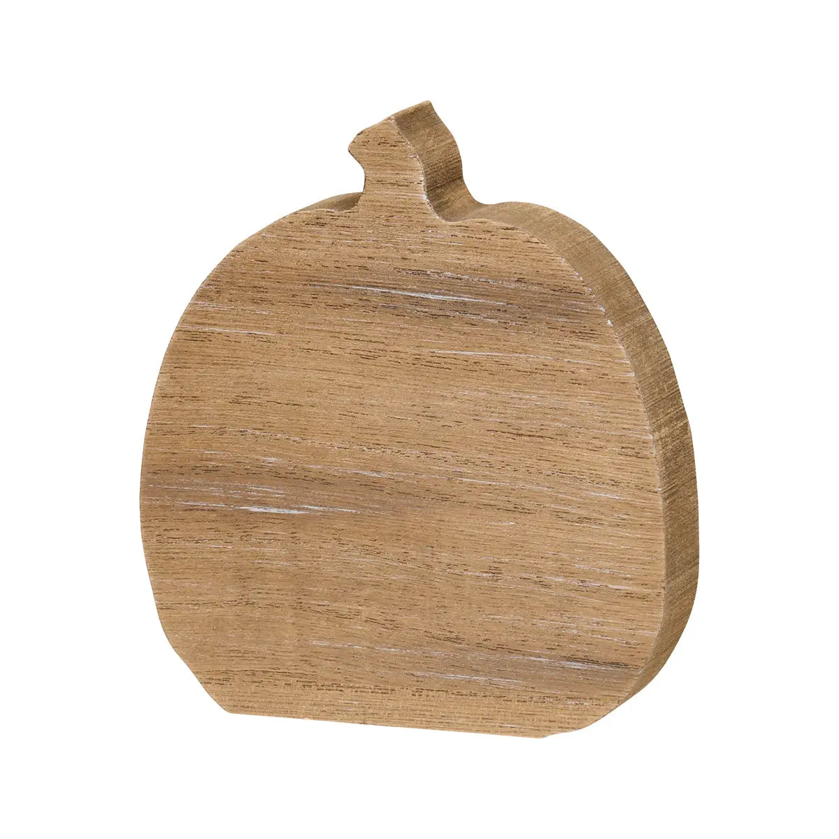 This medium-sized washed wood pumpkin cutout measures 4 inches wide, 4.5 inches tall, and 3/4 inch deep. Its subtle weathered finish adds a rustic charm, making it an ideal decorative accent for seasonal displays or craft projects. Durable and lightweight, it offers versatile use for both indoor and outdoor settings.