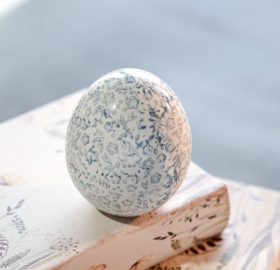 Bring natural elegance to your space with this charming 3.5" blue floral dolomite egg. Hand-finished with delicate botanical details, this decorative piece combines rustic appeal with artistic craftsmanship. Perfect for shelving, tabletops, or as a thoughtful gift, its compact size fits seamlessly into any room's décor. The smooth dolomite surface and soothing blue tones create a calming focal point that elevates your home's aesthetic while celebrating nature's timeless beauty.