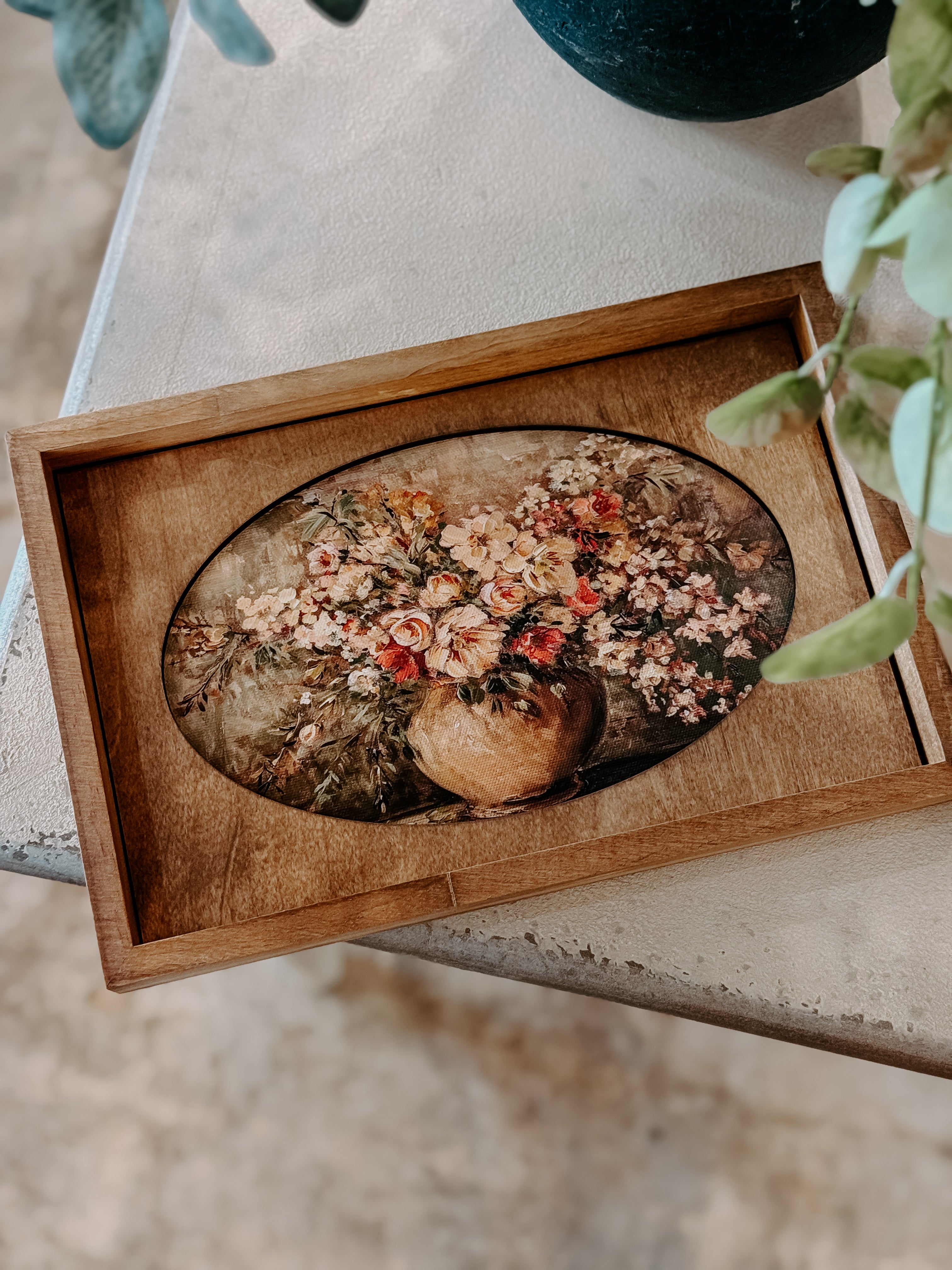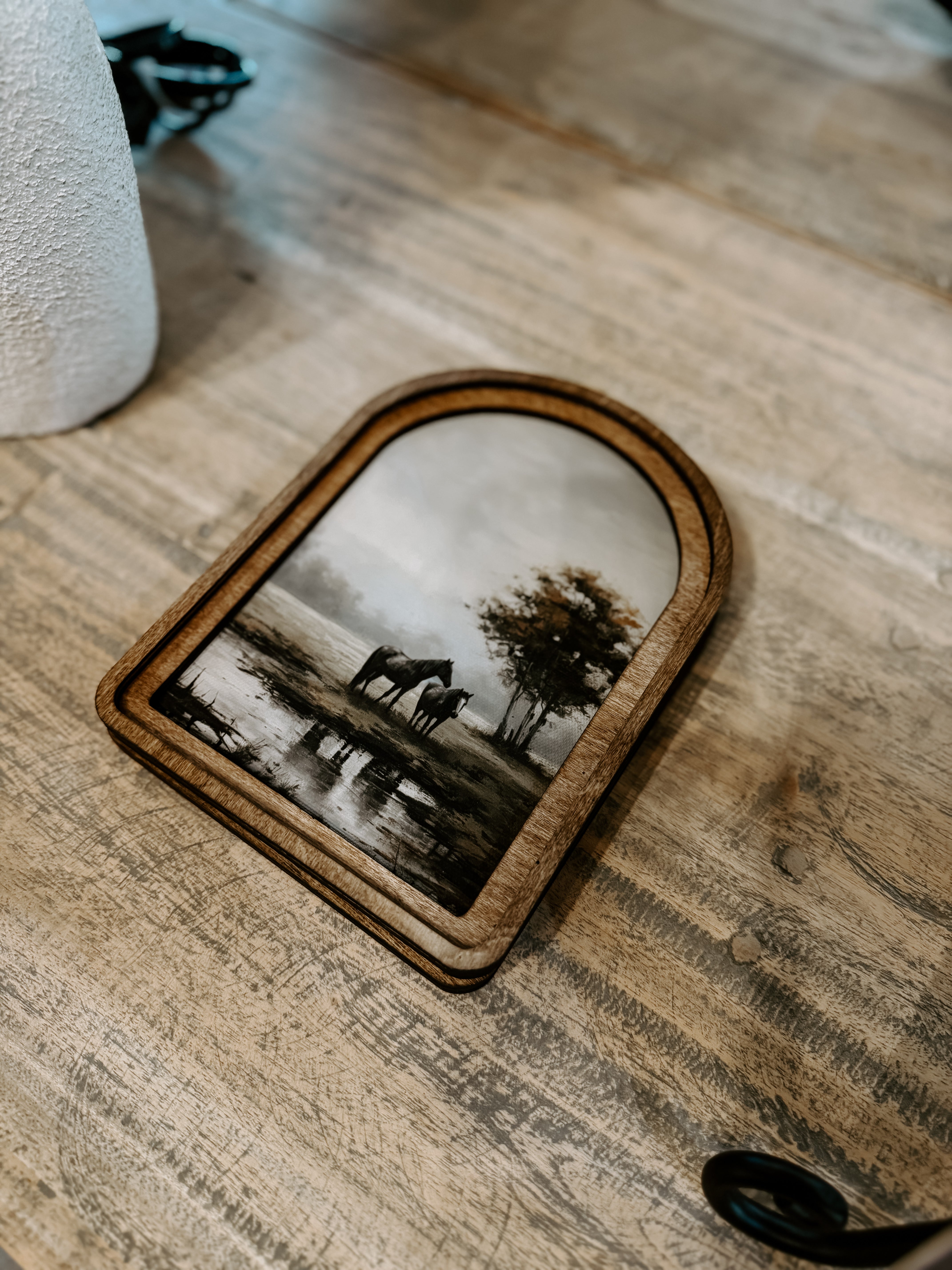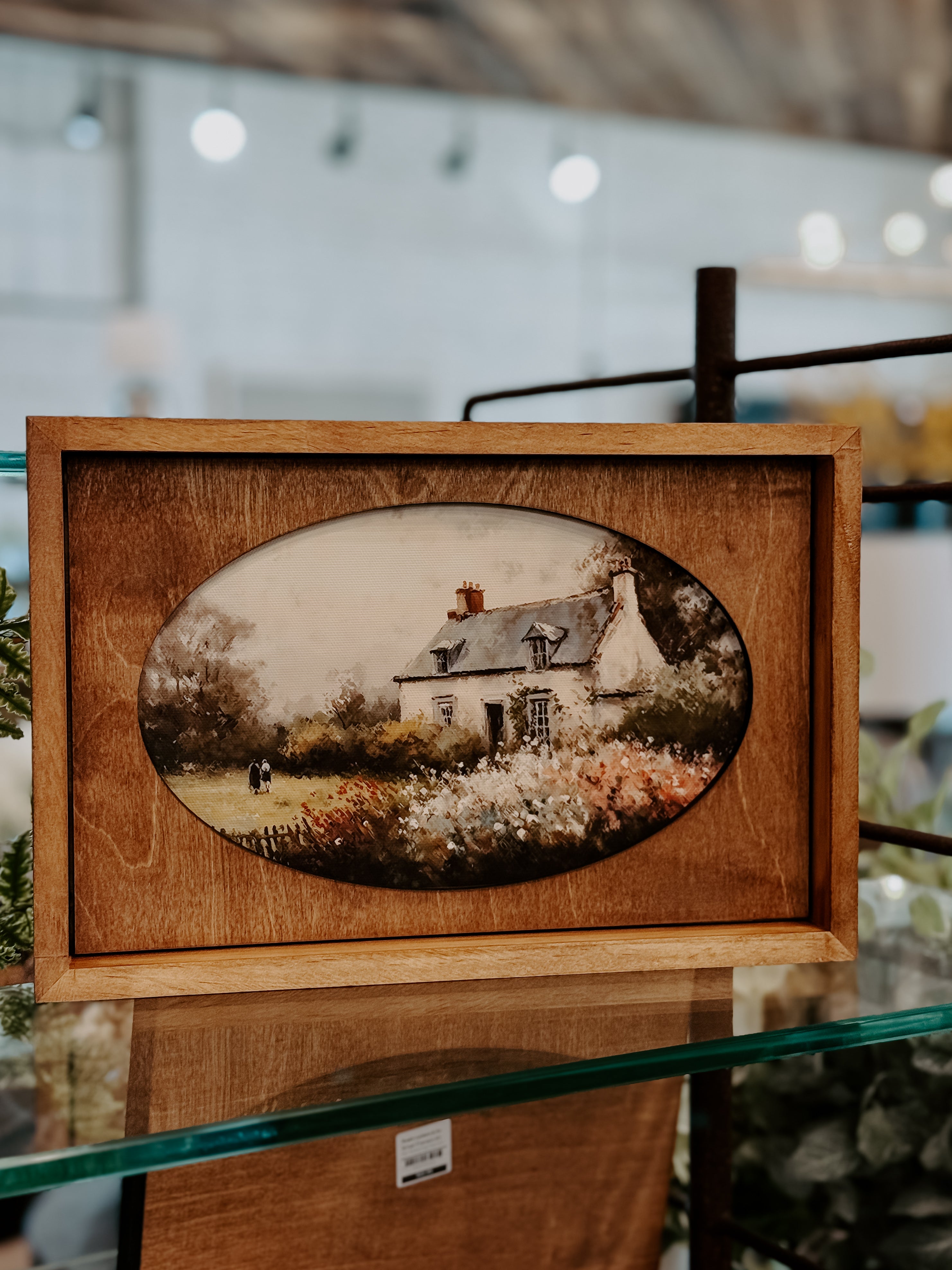 Elevate your space with our Small Framed Art. Printed on high quality canvas with Canon pigment inks, this unique piece is mounted on a wood backer and framed in a double layer of stained wood. Use an adhesive strip for wall display or place it on a shelf. Enhance your decor with sophistication and style.