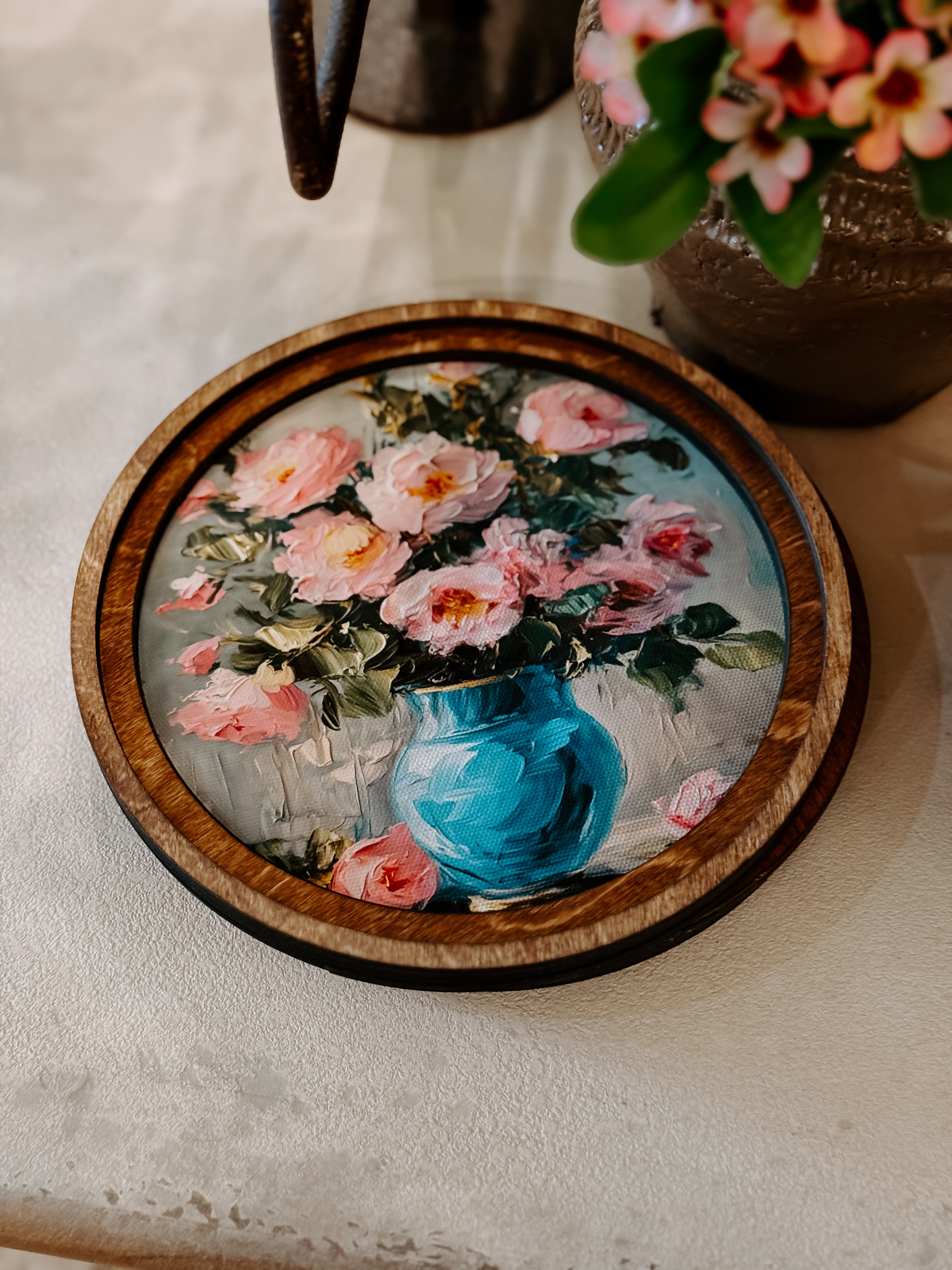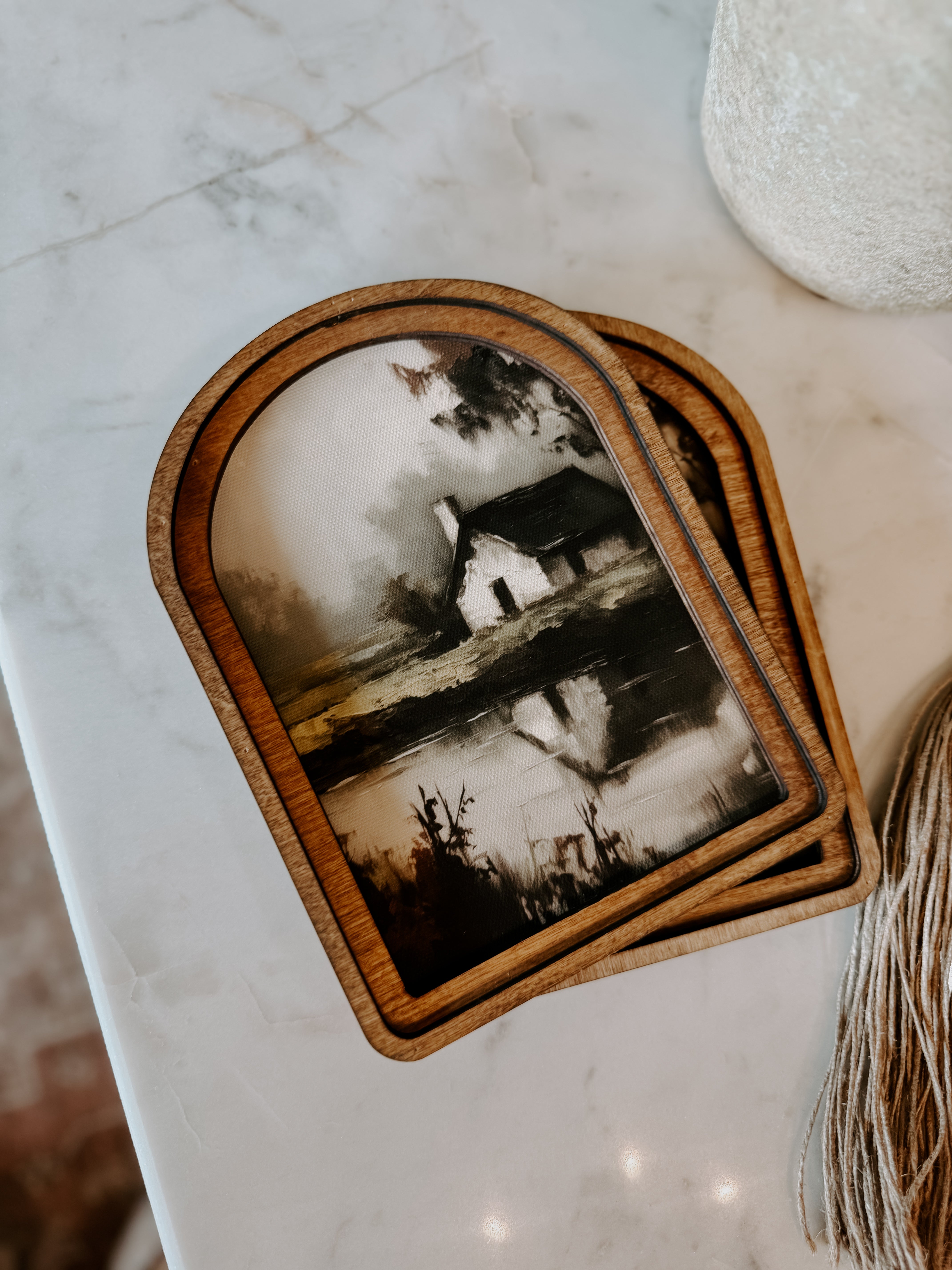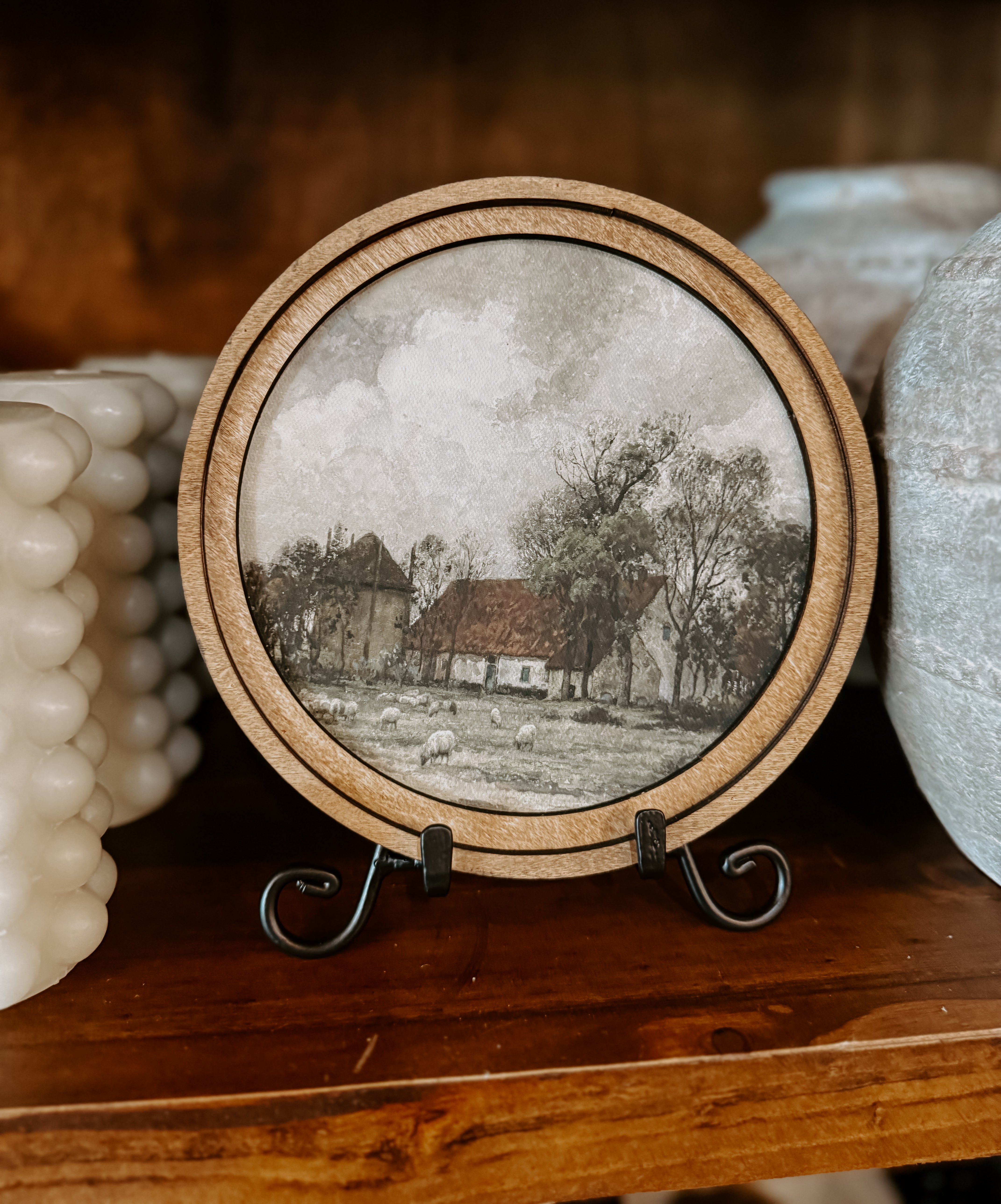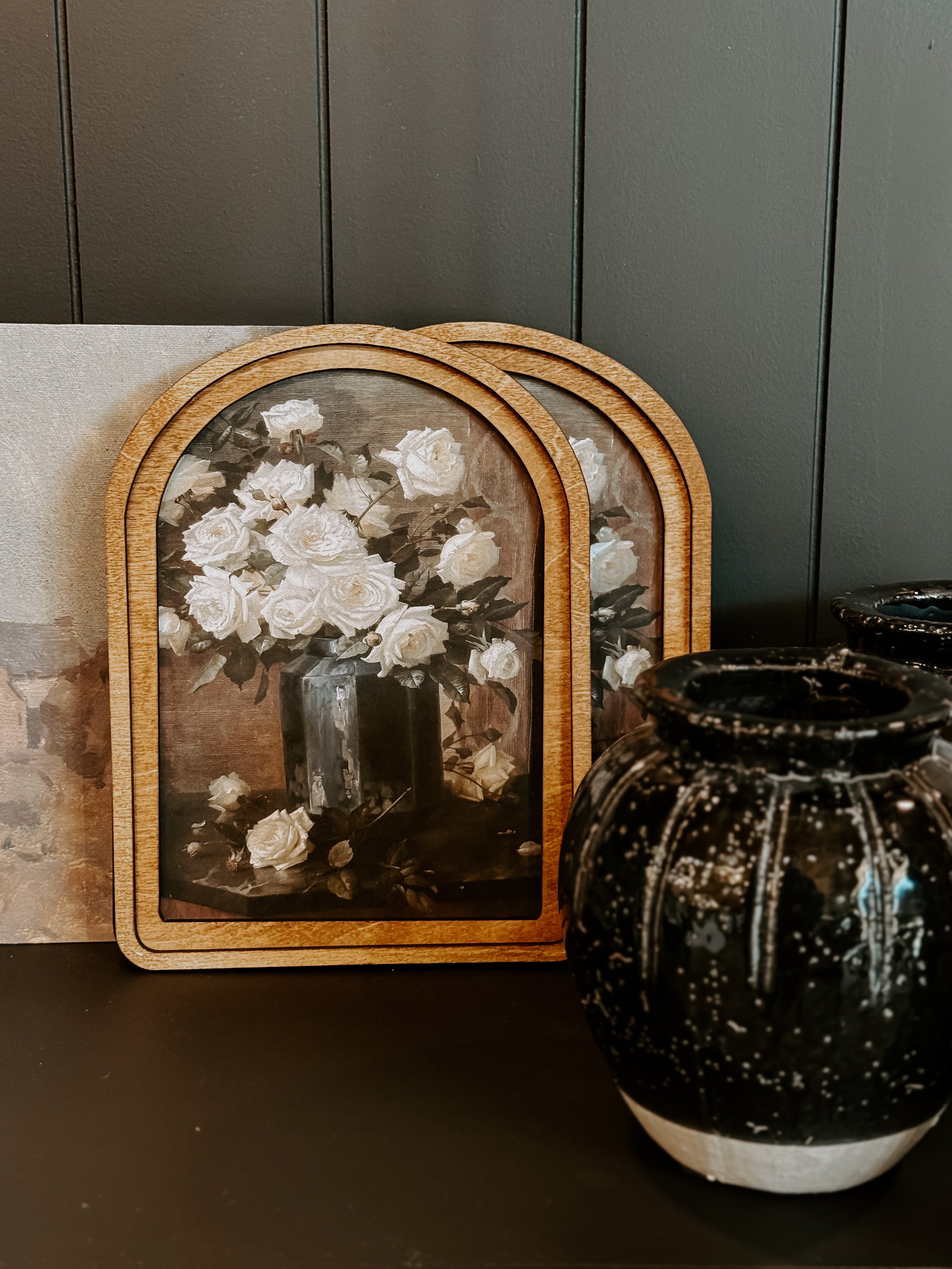 Elevate your space with our Small Framed Art. Printed on high quality canvas with Canon pigment inks, this unique piece is mounted on a wood backer and framed in a double layer of stained wood. Use an adhesive strip for wall display or place it on a shelf. Enhance your decor with sophistication and style.