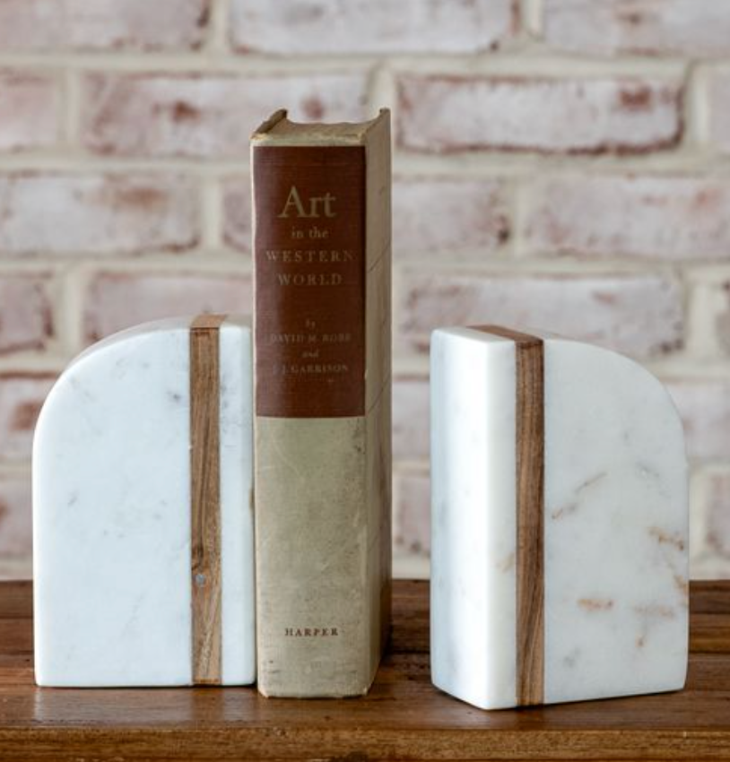 These 6-inch wood inlay marble bookends combine natural elegance with sturdy functionality. Crafted with precision, the marble base offers durable support while the intricate wood inlay adds a refined aesthetic. Ideal for organizing books or displaying decorative items, these bookends bring both style and stability to any shelf or desk.