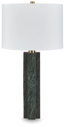 Add a touch of refined sophistication to your space with our sleek table lamp. Made from green marble and metal, its dimensional base and goldtone accents bring an exquisite and understated touch. Perfect for those with discerning taste, this statement lamp features a 3-way switch and fits 1 E26 socket bulb (not included).