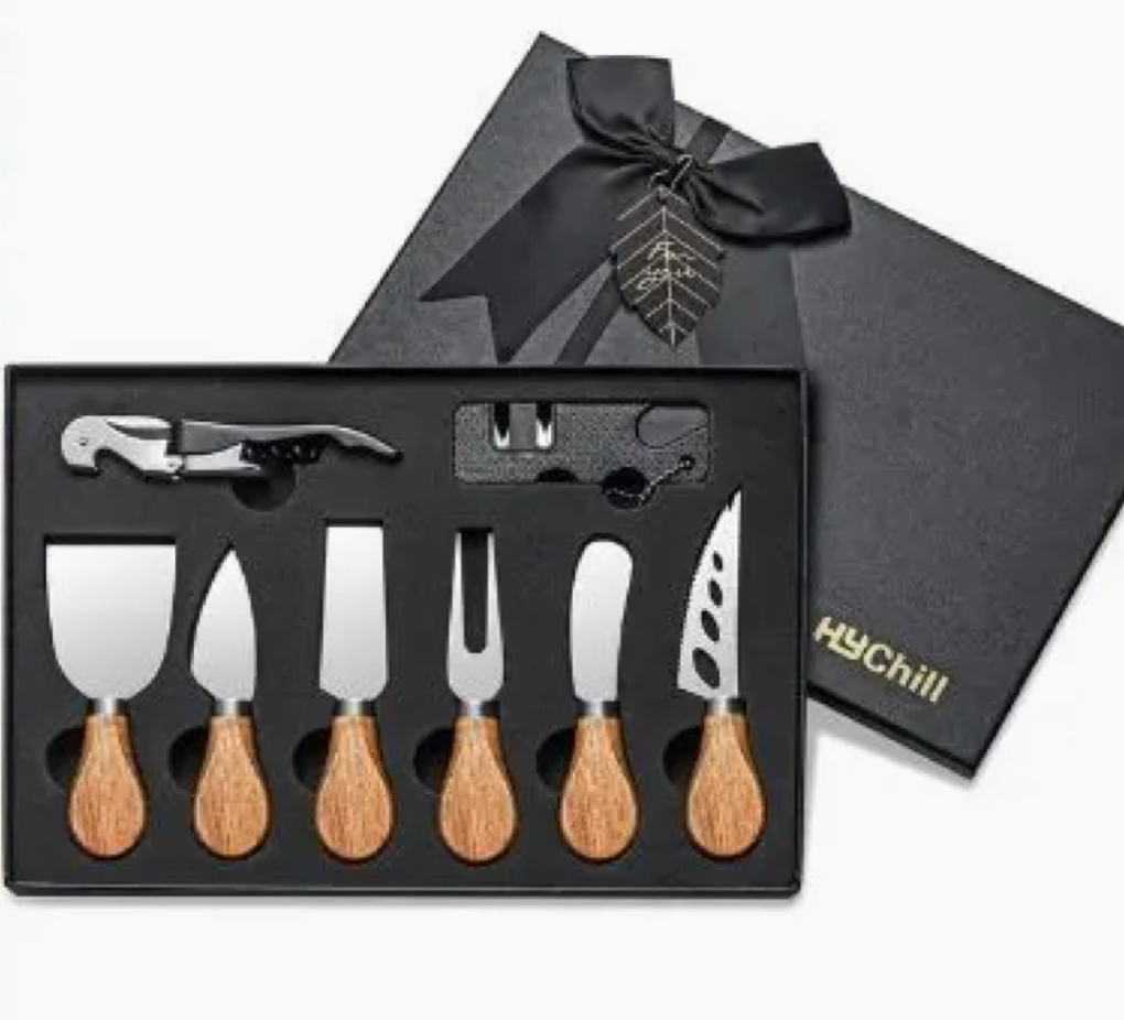 Elevate your cheese game with this playful 8-piece Cheese Knife Set, complete with a sharpener to keep every slice perfect. Whether it’s crumbly cheddar, creamy brie, or tangy blue cheese, these knives make serving fun and easy. Mix and match styles for cutting, spreading, and slicing — a must-have for cheese lovers who like to entertain with flair!