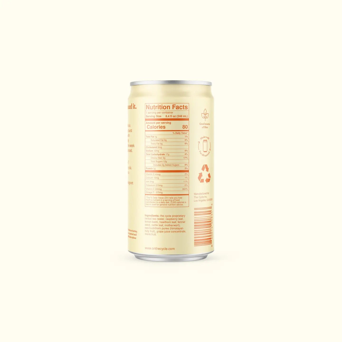 The Cycle is a functional beverage designed to support menstrual wellness through every phase of your cycle. Formulated with Himalayan Holy Fruit and carefully selected botanicals sourced through partnerships with leading women herbalists, this drink addresses the unique nutritional needs of luteal, menstruation, follicular, and ovulation phases. Rather than simply masking symptoms, The Cycle empowers you to actively manage your health by aligning your nutrition with your body's natural rhythms. Bold, unapologetic branding celebrates menstruation as a shared experience—when you see someone drinking The Cycle, you're part of a community reclaiming this conversation.