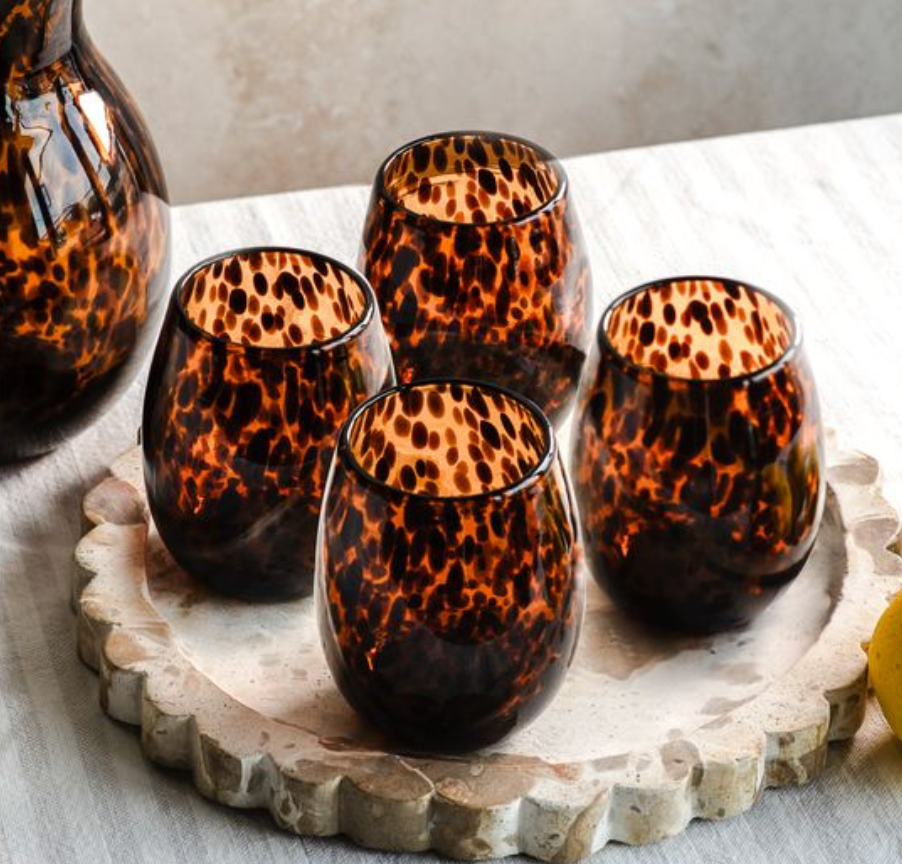 Make a statement with these exquisite tortoise shell wine glasses, where artisanal craftsmanship meets timeless design. The distinctive tortoiseshell pattern adds sophisticated flair to any gathering, while the carefully proportioned bowl—measuring 4.72 inches tall—showcases wine's color and complexity beautifully. The compact 2.91 x 2.16 inch base ensures stability on any table. Hand-wash these treasures to preserve their lustrous finish and intricate detailing. Whether hosting an intimate dinner or treating yourself to an elevated everyday moment, these glasses transform the simple act of sipping into an occasion worth savoring. Each glass sold separate