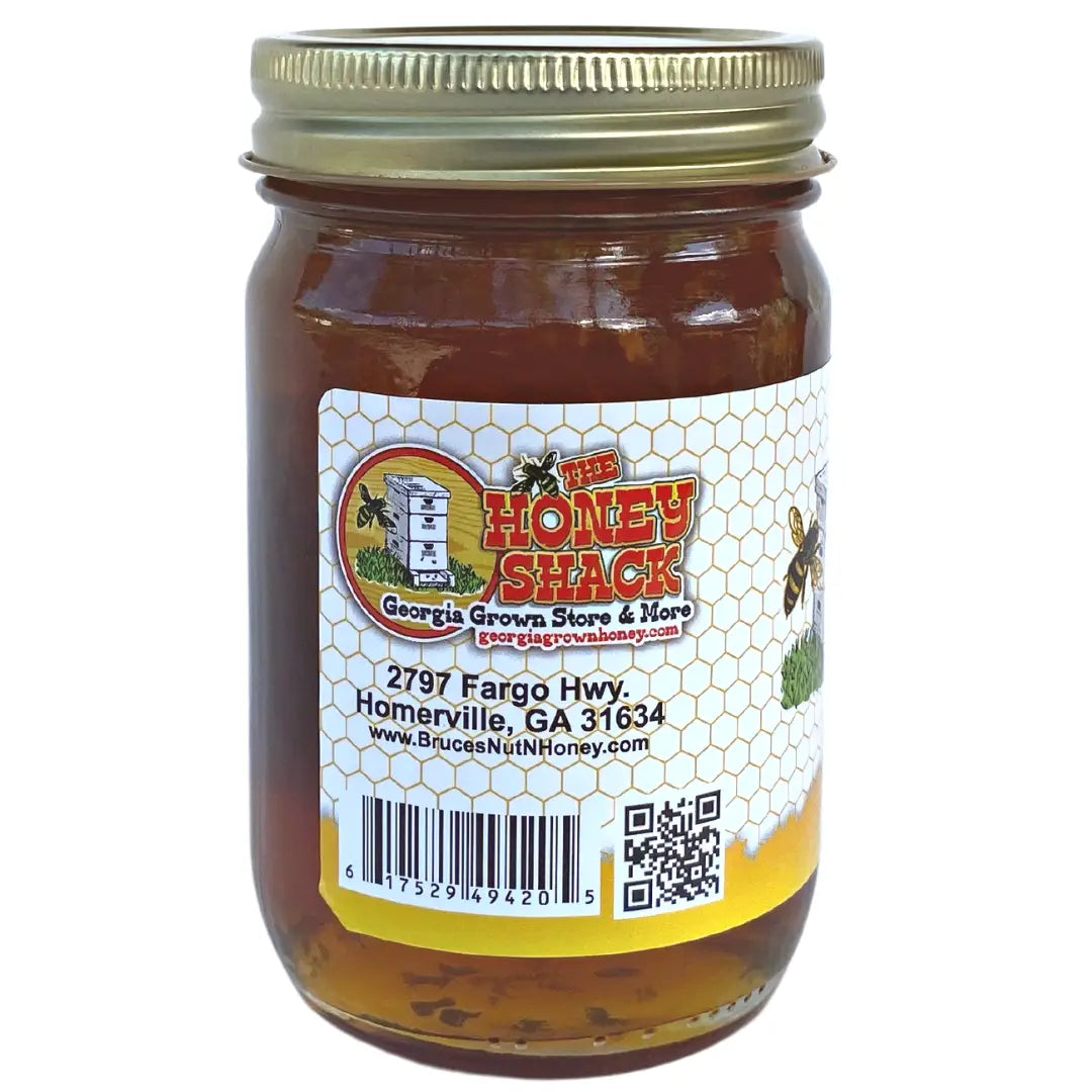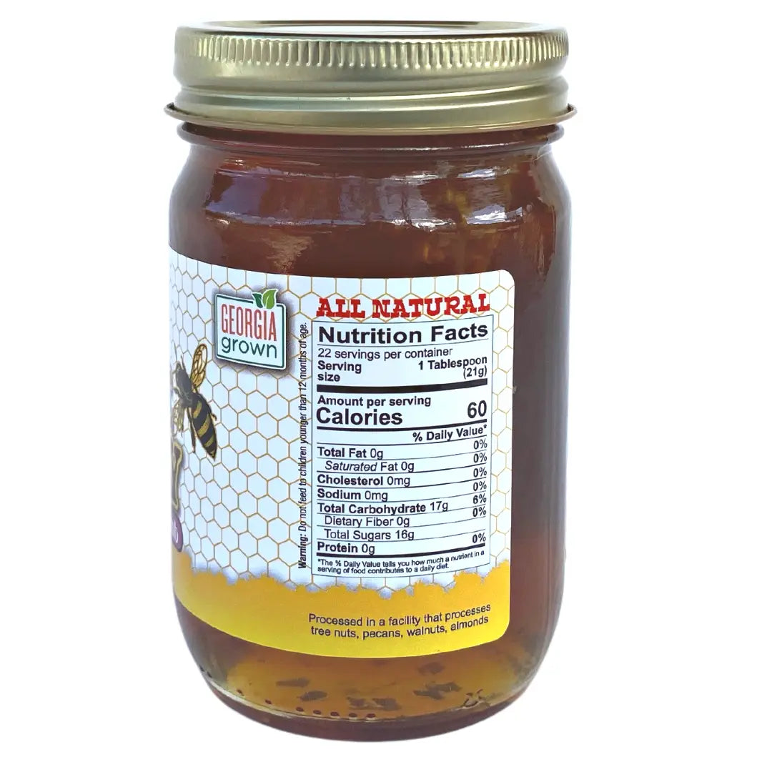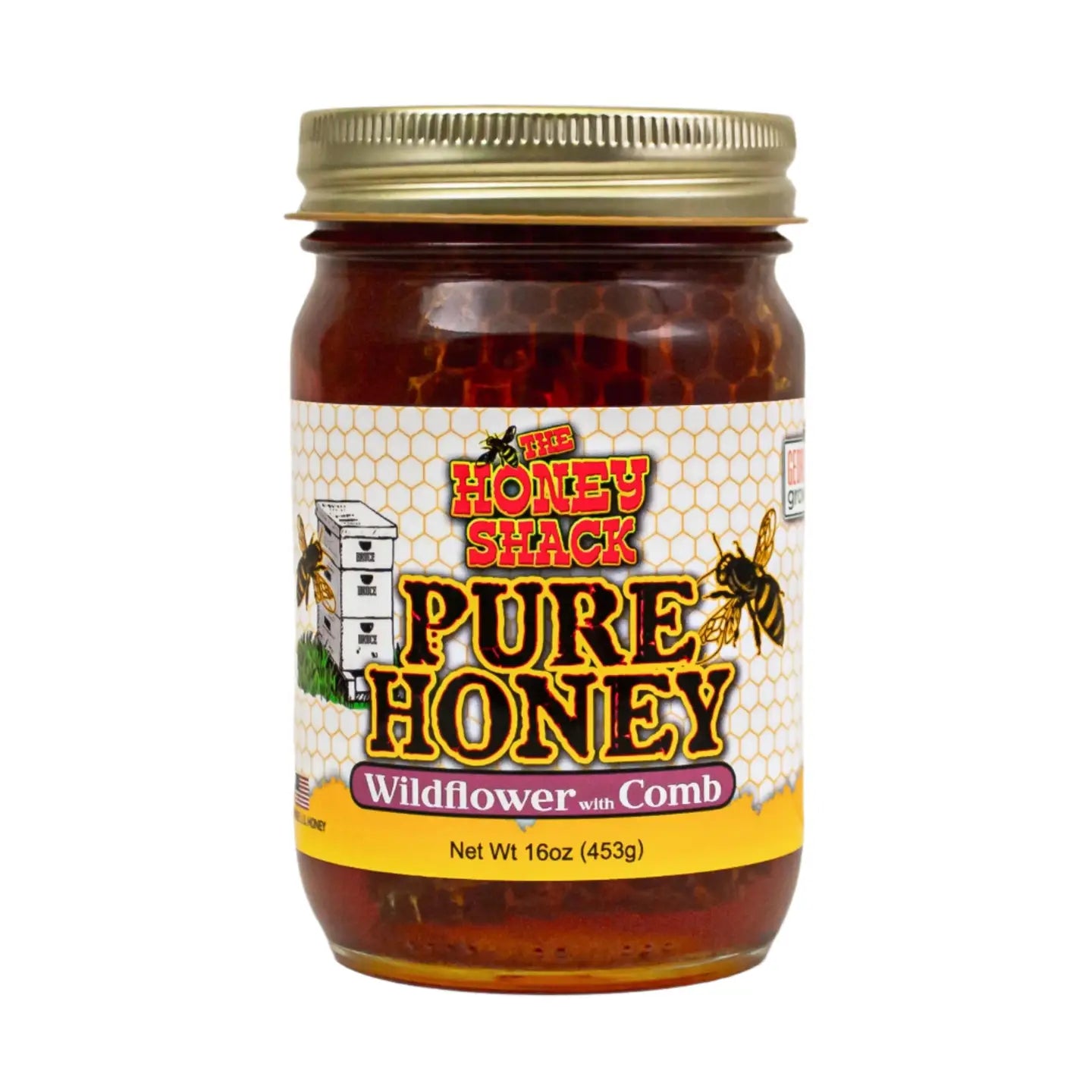 This 16 oz “cut comb” honey jar features a thick slice of honeycomb nestled in our light amber Wildflower honey. Known for its natural sweetness, this specialty honey offers an authentic taste straight from the hive. Experience the unique texture by chewing the honeycomb to release its rich honey flavor while naturally discarding the beeswax, just like gum. Perfect for those seeking a pure and traditional honey experience valued by locals.