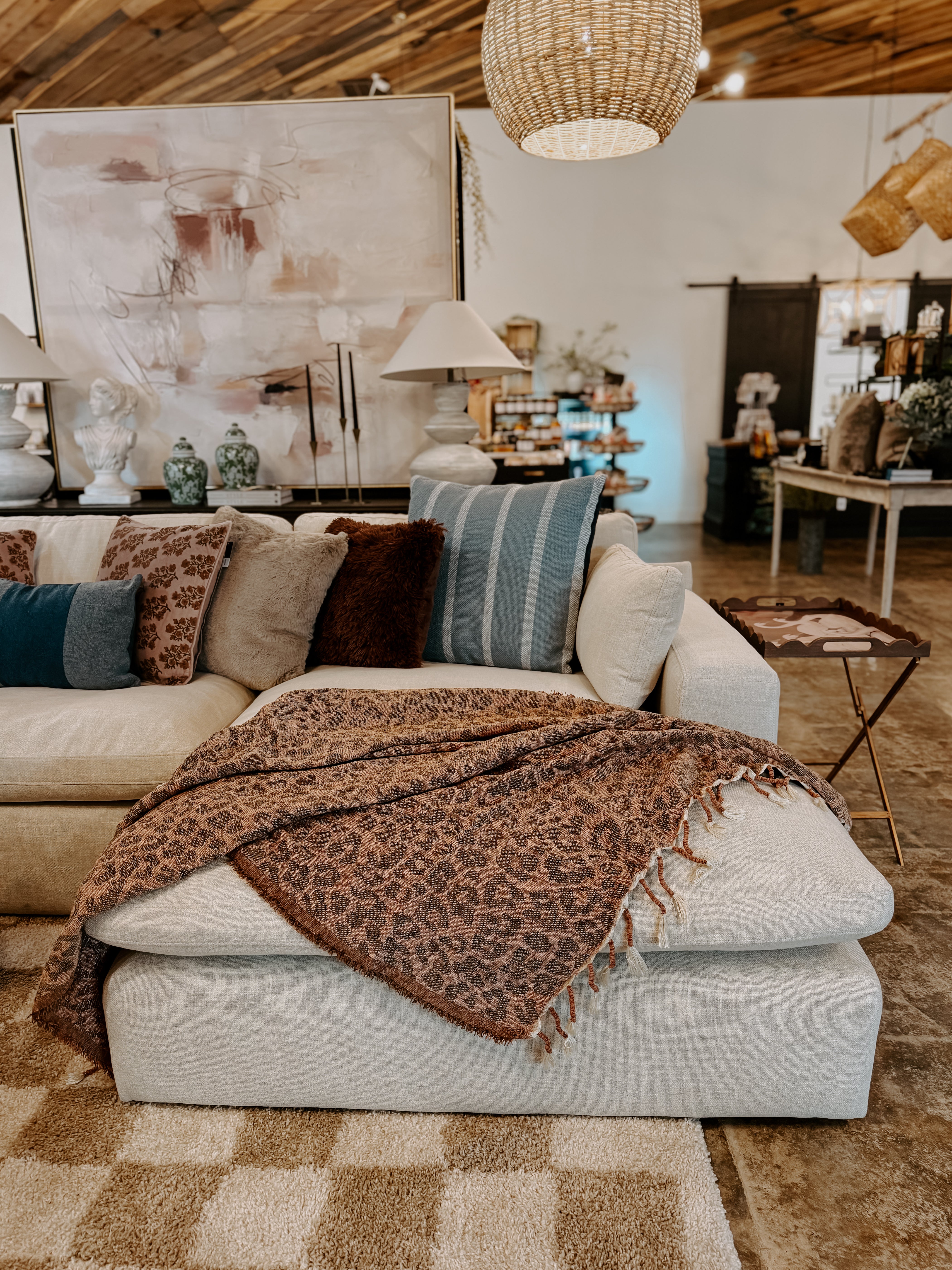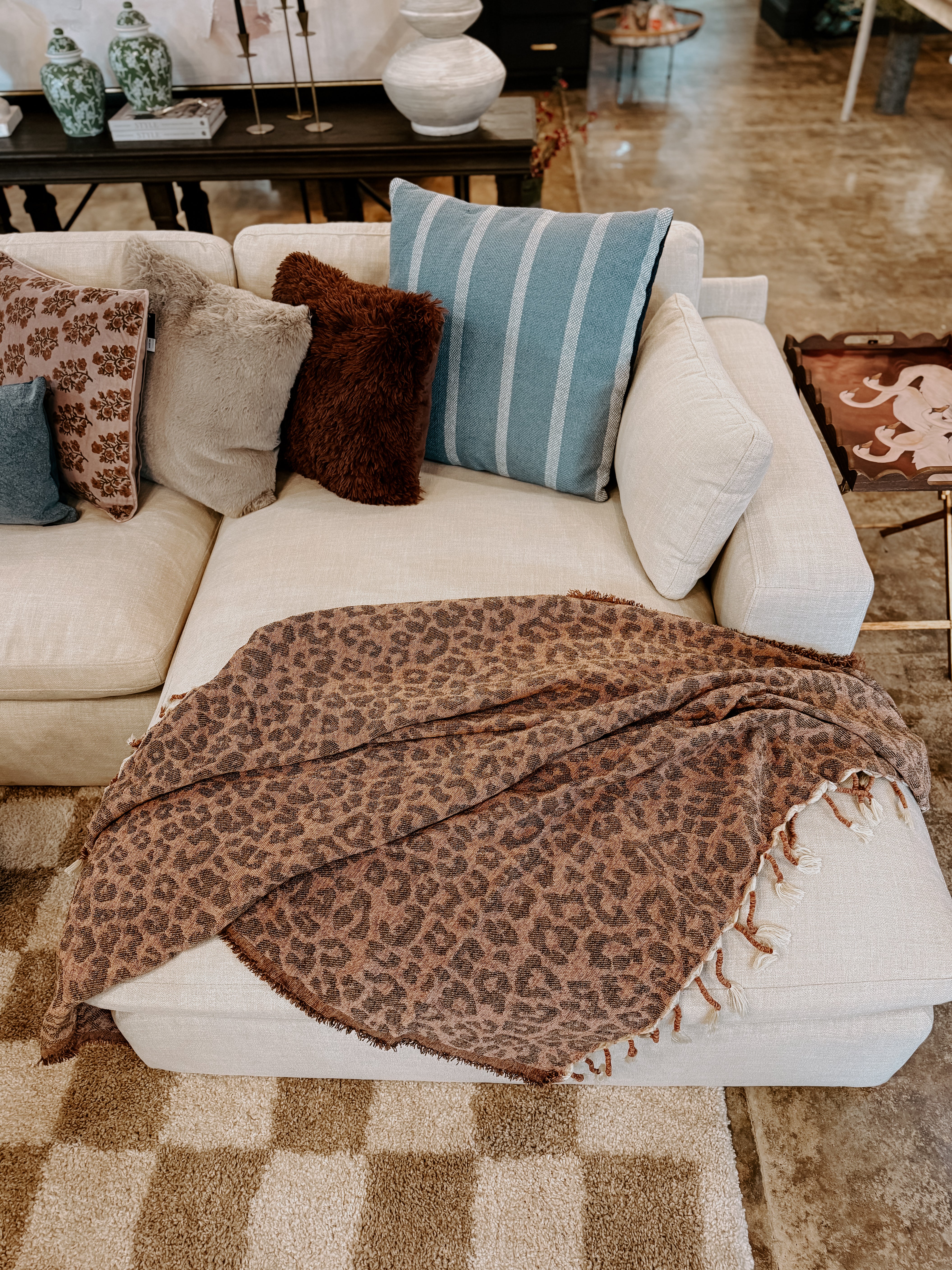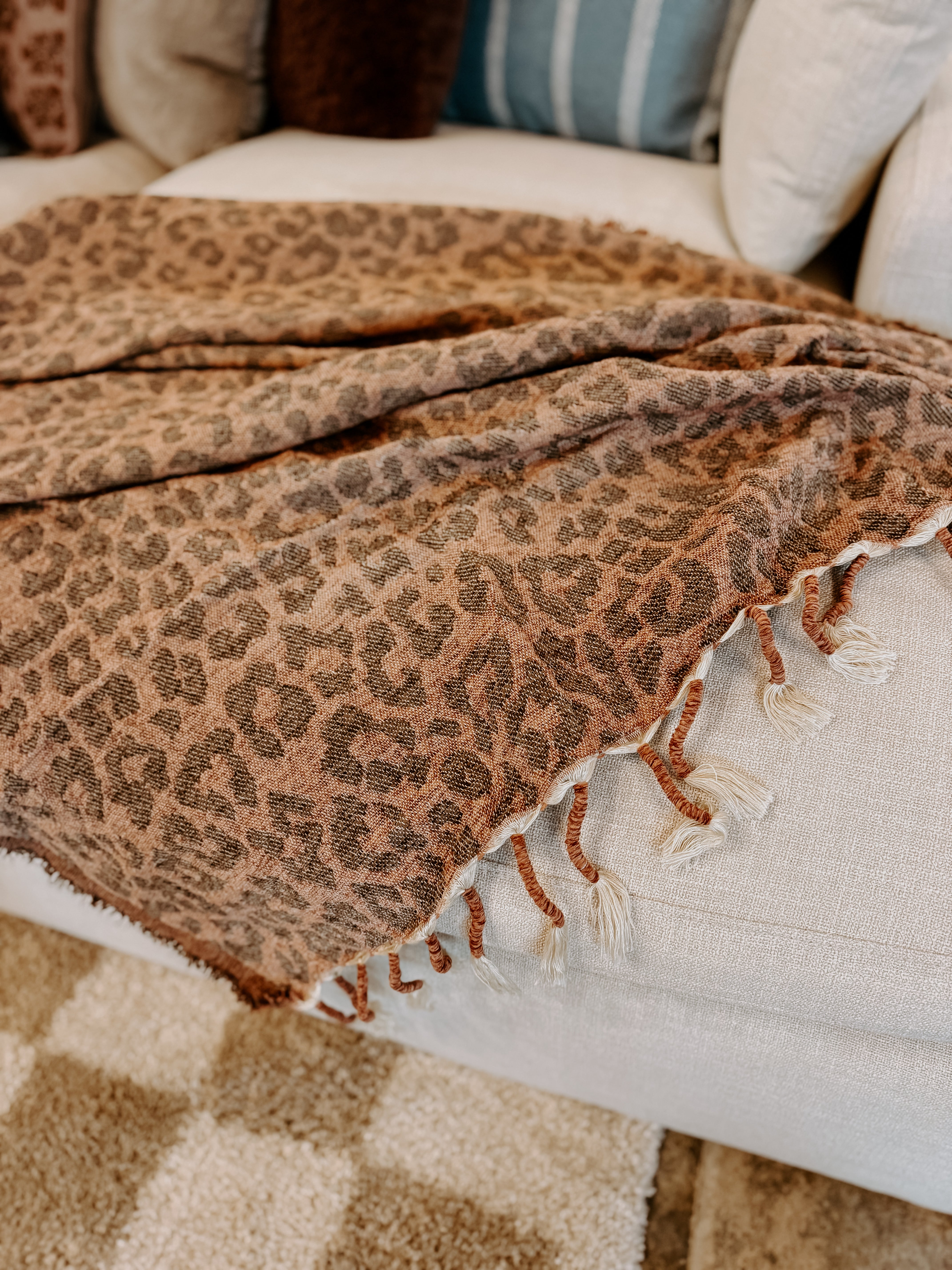 Make a bold statement with this striking hand-woven leopard throw blanket. The eye-catching animal print brings instant personality to any room, while the expertly blended 62% polyester and 38% acrylic construction ensures lasting durability and comfort. At 50x60", this generous throw is perfectly sized for layering on beds, draping across sofas, or adding flair to reading nooks. The premium fiber blend resists fading and maintains its plush softness wash after wash. Whether you're seeking to elevate your décor or add a touch of wild elegance to your space, this hand-woven piece delivers both style and substance that you'll treasure for years to come.