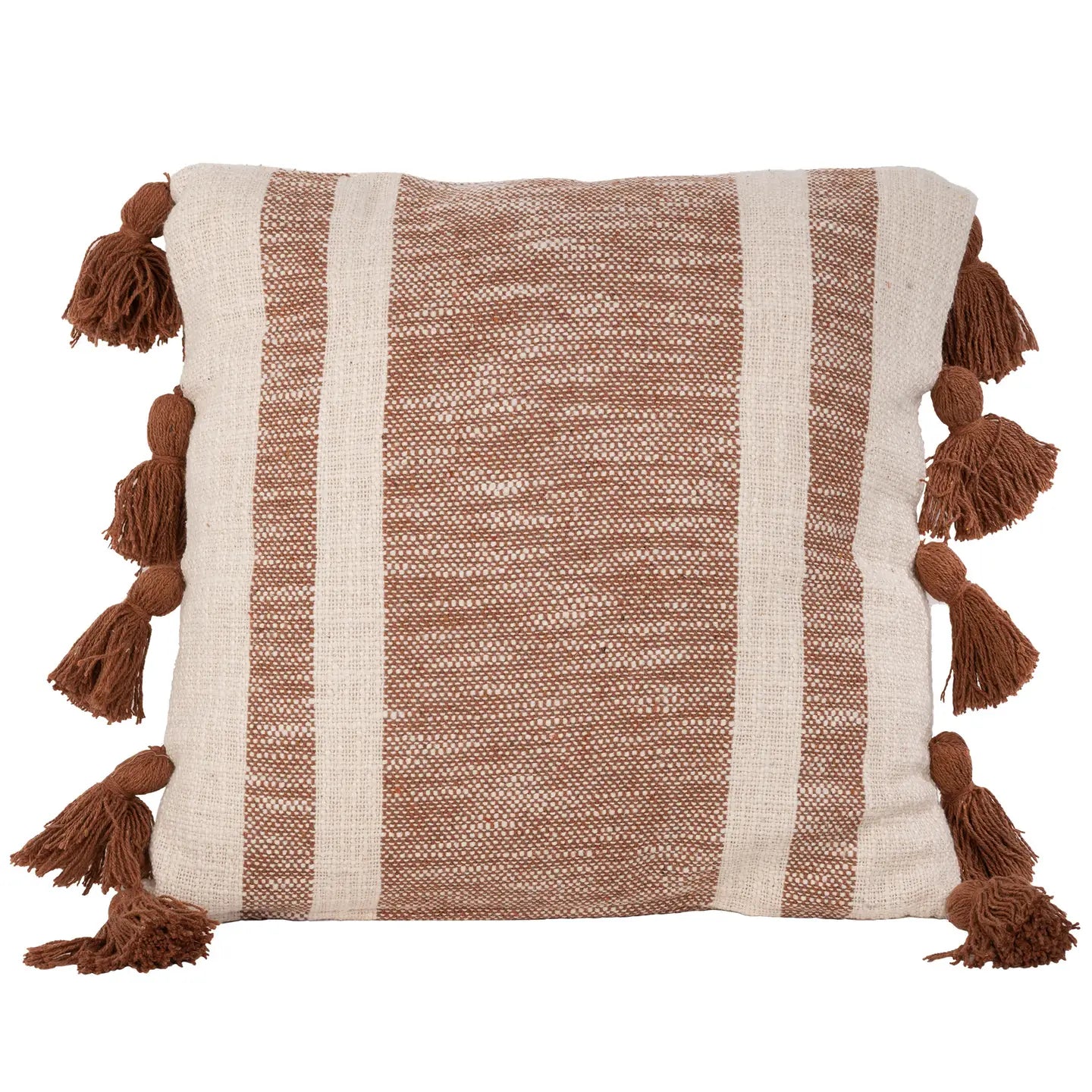 Elevate your living space with the Striped Tassel Pillow, expertly crafted to combine style and comfort. Featuring a refined striped pattern and delicate tassel accents, this pillow adds a sophisticated texture and visual interest to any room. Its durable fabric ensures long-lasting use, while the plush filling provides excellent support for relaxation. Ideal for enhancing sofas, chairs, or beds, this pillow seamlessly blends aesthetic appeal with functional comfort.