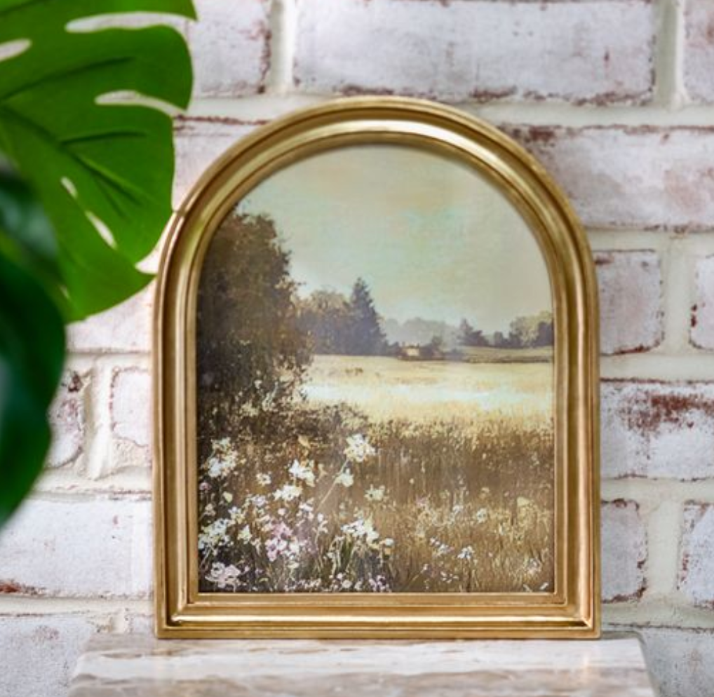 Add a touch of whimsy with this 8" x 10" arched gold frame! Perfectly sized for your favorite landscape photo or artwork, its elegant gold finish brings a splash of sunshine to any room. Whether brightening up your desk or cozying a shelf, this frame creates a playful spotlight for your memories.