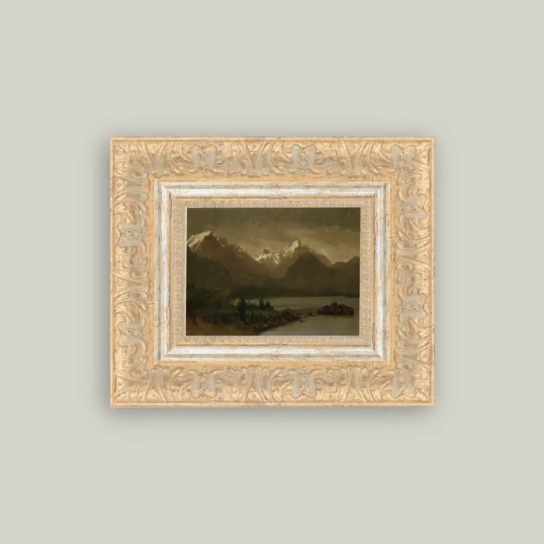 Add a touch of nature to your walls with Mountains and Lake Framed Art by Alver Bierstadt! Printed on premium canvas fabric, this art is lightweight and easy to install with included hardware. The handcrafted ornate frame adds a classic touch, while the glass-free design maintains its original texture. Proudly made in the USA.