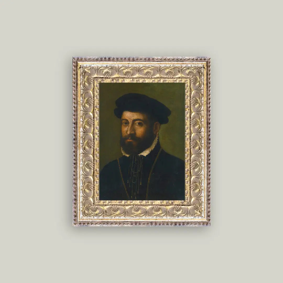 Add a touch of classic personality with the "Portrait of a Bearded Man" by Nicolo Dell' Abate. This artwork is printed on premium canvas for a textured, lasting look and framed in a handcrafted ornate frame that brings old-world charm. Lightweight and glass-free, it includes easy-to-install hanging hardware and a sturdy paper backing. Proudly made with care, it’s simple to maintain—just keep it dry and gently wipe if needed. Perfect for those who love art that’s both stylish and fuss-free!