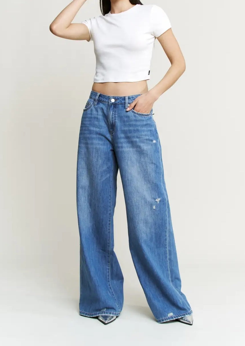 Elevate your denim game with these high-rise wide-leg jeans, designed for a flattering silhouette that works with any style. The generous 10½" rise sits perfectly at the waist, while the relaxed wide-leg cut offers comfort without compromising on sophistication. Crafted from a durable cotton-polyester blend, these jeans move with you throughout your day while maintaining their shape. With a 32" inseam and 25¼" leg opening, they deliver that coveted vintage-inspired look that feels effortlessly chic. Whether you're dressing up or keeping it casual, these versatile jeans are the wardrobe essential you've been waiting for.
