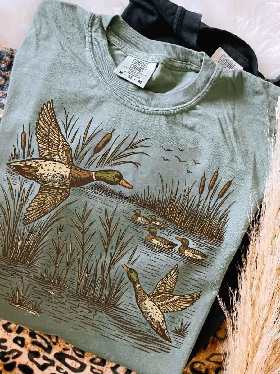 Capture the beauty of nature with our Flying Mallards Tee, featuring a striking mallard design printed on premium Comfort Colors fabric. This soft, garment-dyed tee offers exceptional durability and a lived-in feel that only improves with every wash. The breathable cotton blend keeps you comfortable all day, while the eye-catching wildlife artwork makes a bold statement. Perfect for nature lovers and outdoor enthusiasts who appreciate quality craftsmanship and timeless style. Make this versatile tee your go-to piece for casual wear that stands out.