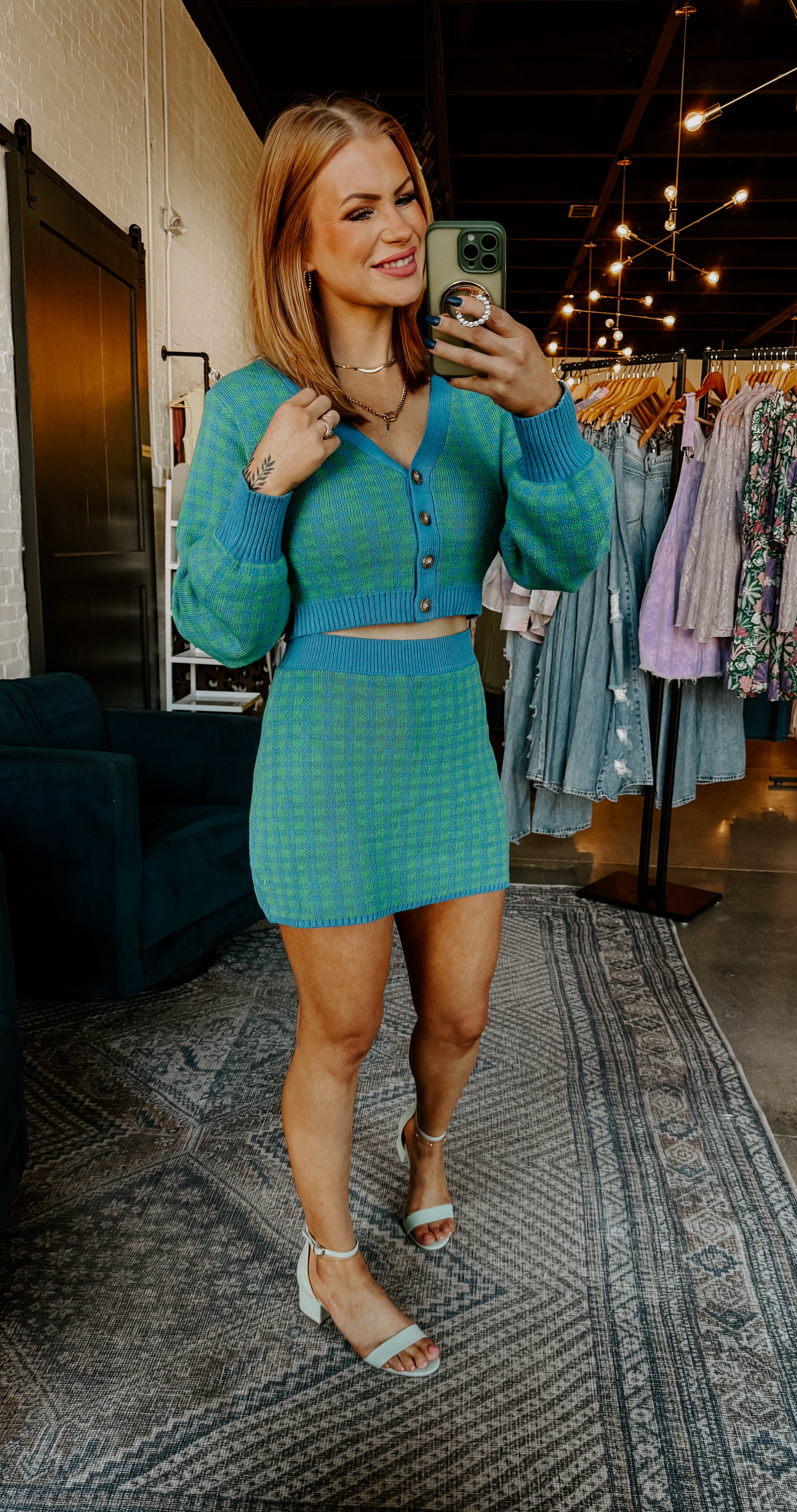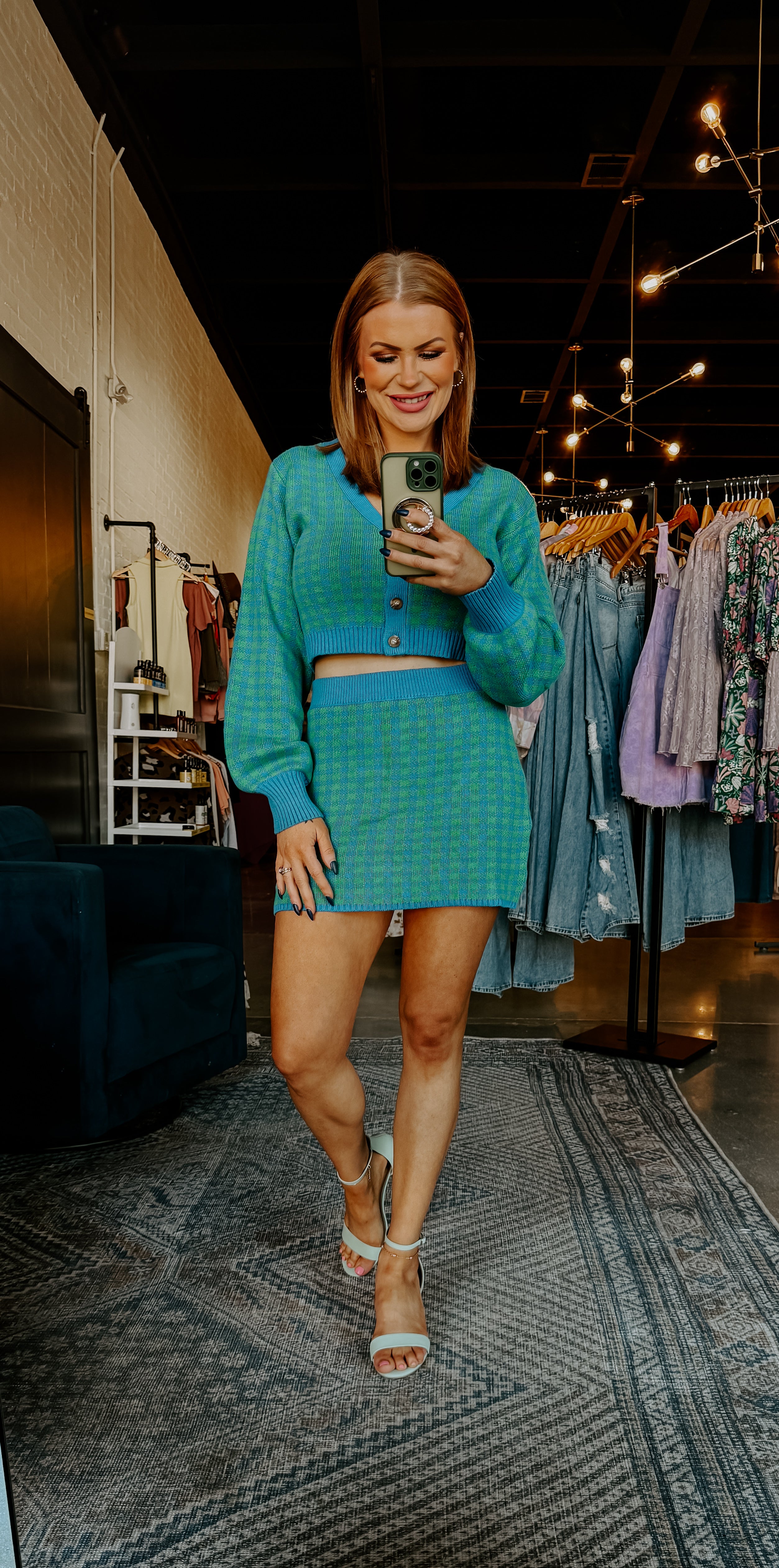 Introducing Girly Girl Fit, the perfect set for the modern and sophisticated woman. This luxurious set features a knit top and mini skirt with a long sleeve design and button up closure for a sleek and elegant look. The stretch fabric ensures a comfortable and flattering fit. Elevate your style and embrace your femininity with Girly Girl Fit.