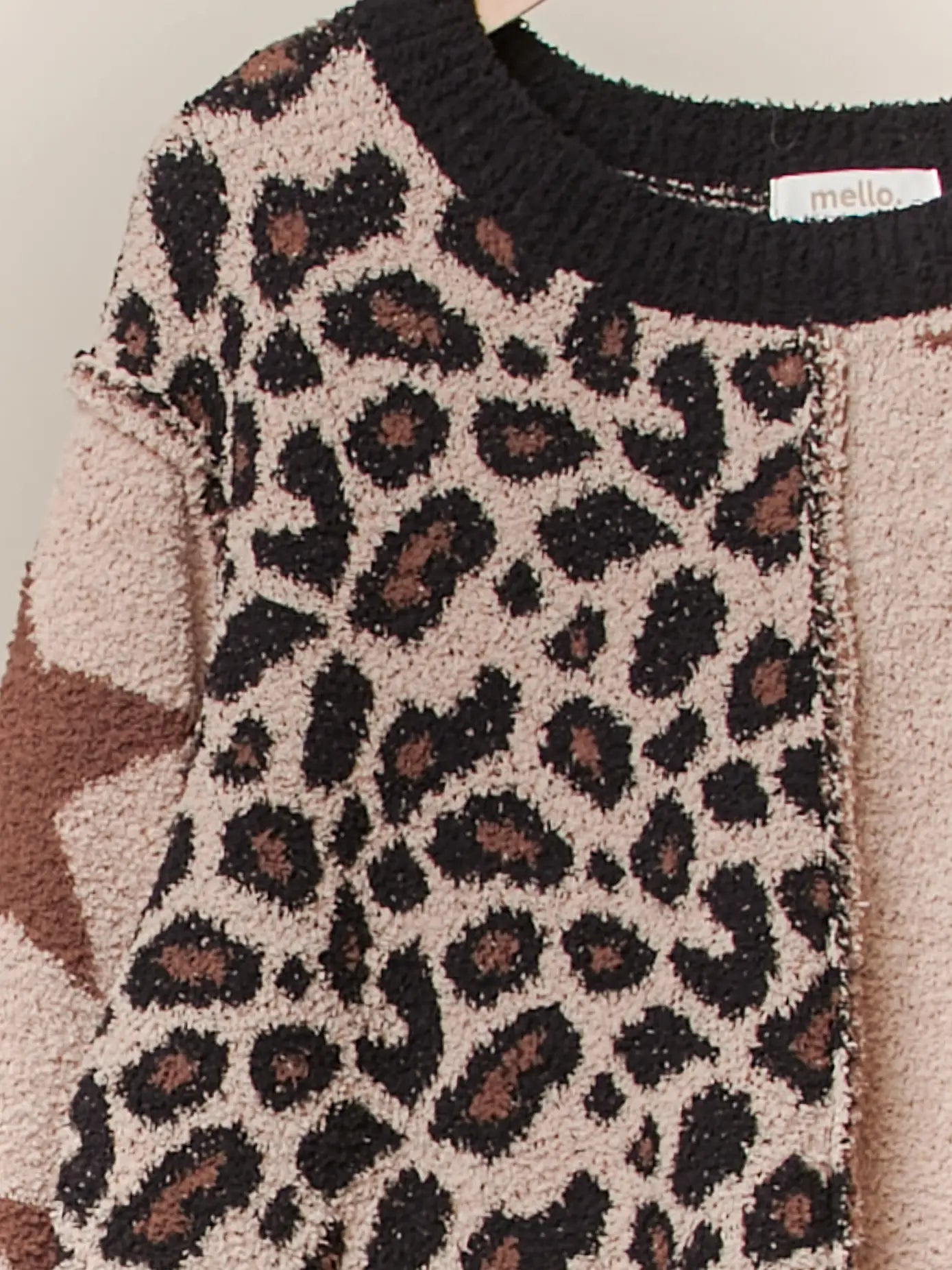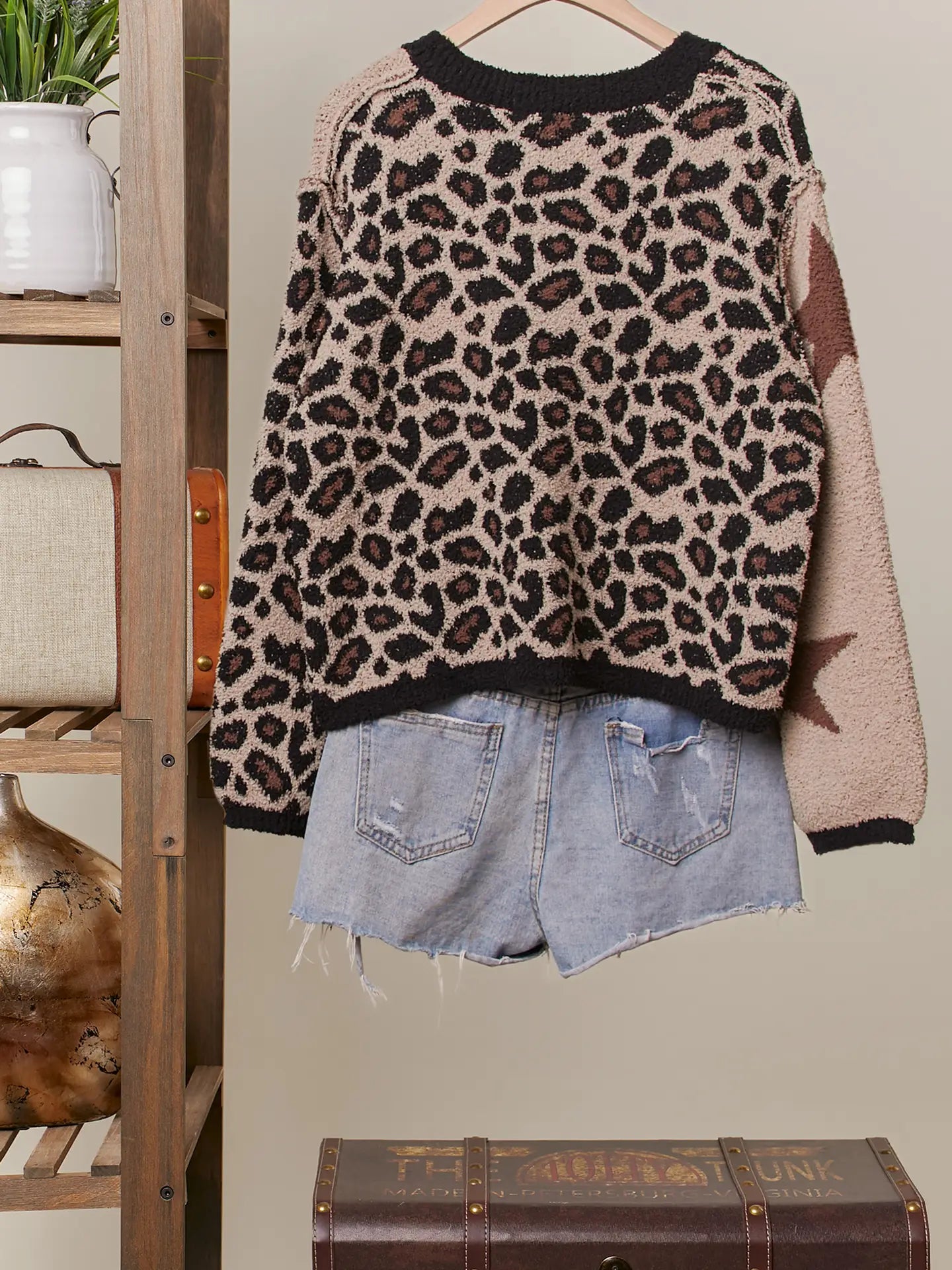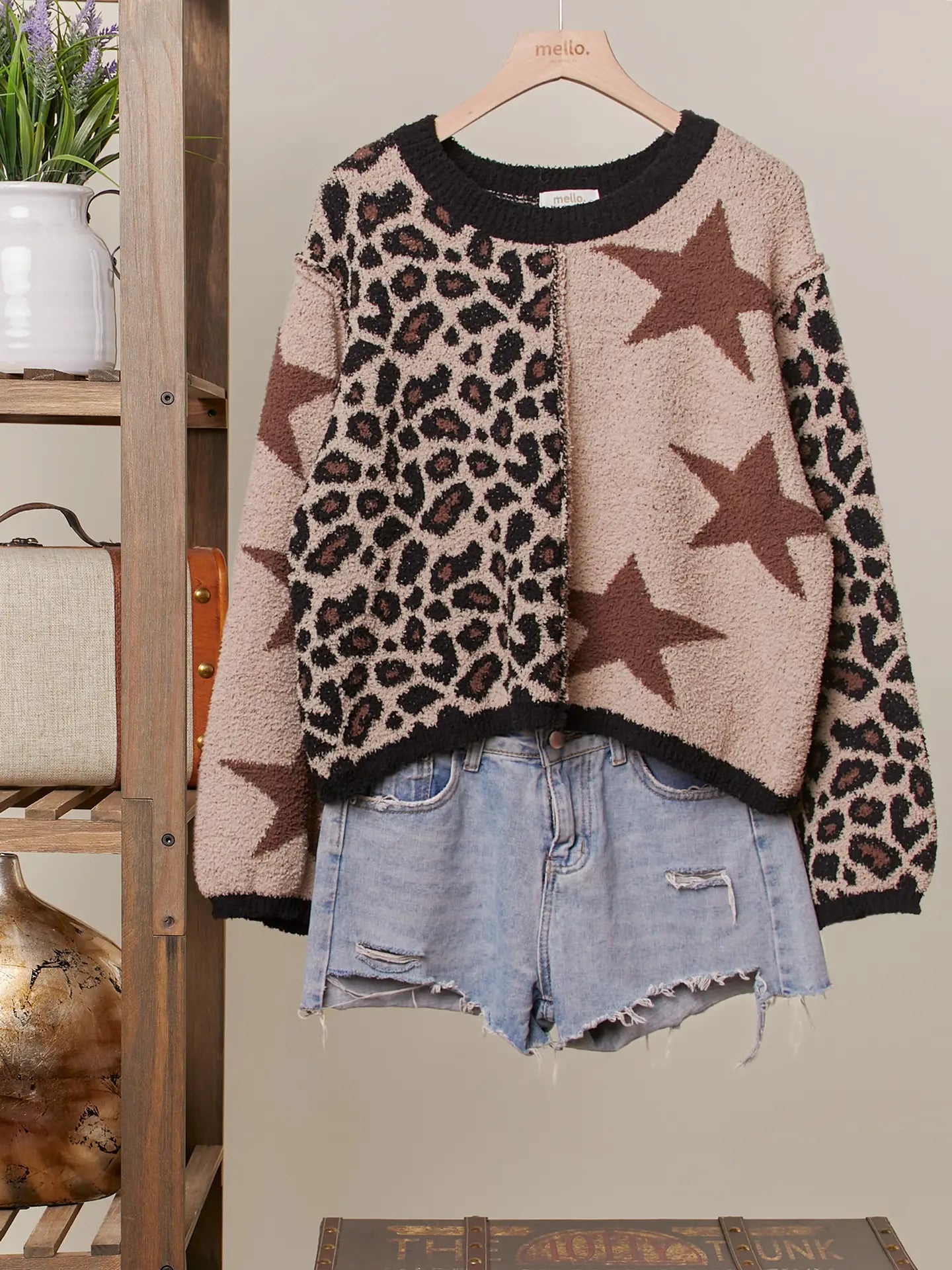 Wrap yourself in effortless style with this leopard star pattern round neck sweater. Crafted from incredibly soft, cozy fabric, it's the perfect layering piece for chilly days or casual lounging. The eye-catching leopard star design adds a playful touch to your everyday wardrobe, while the classic round neckline keeps things timeless and versatile. Whether you're pairing it with jeans or dressing it up, this sweater delivers comfort without compromising on style. Discover why this cozy essential deserves a spot in your closet.
