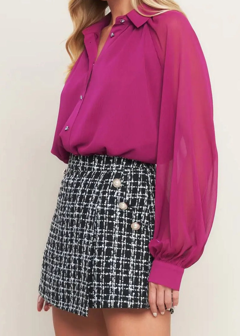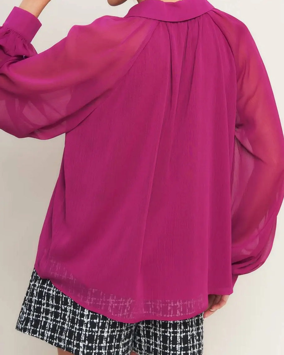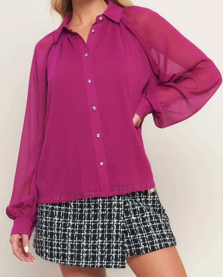 The Lover Girl Blouse combines timeless elegance with everyday comfort. This solid woven top features a classic shirt collar and jewel button-down front, creating a polished look perfect for any occasion. Raglan sleeves with finished cuffs offer a flattering silhouette, while the relaxed body ensures effortless movement and all-day wearability. Crafted from 100% polyester throughout, this versatile piece is easy to care for and maintains its shape beautifully. Whether dressed up for work or down for casual outings, this blouse is the go-to staple that elevates your wardrobe with understated sophistication.