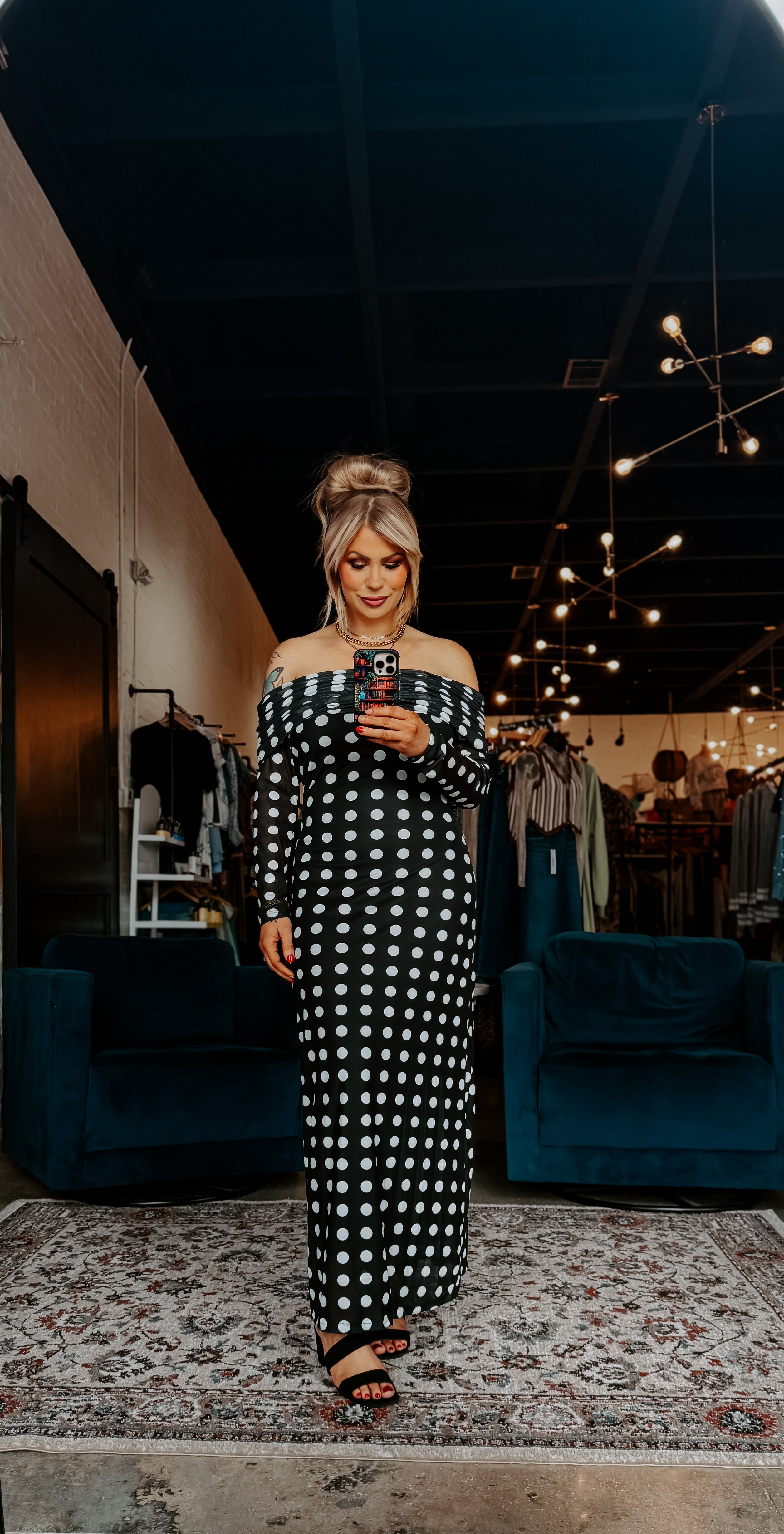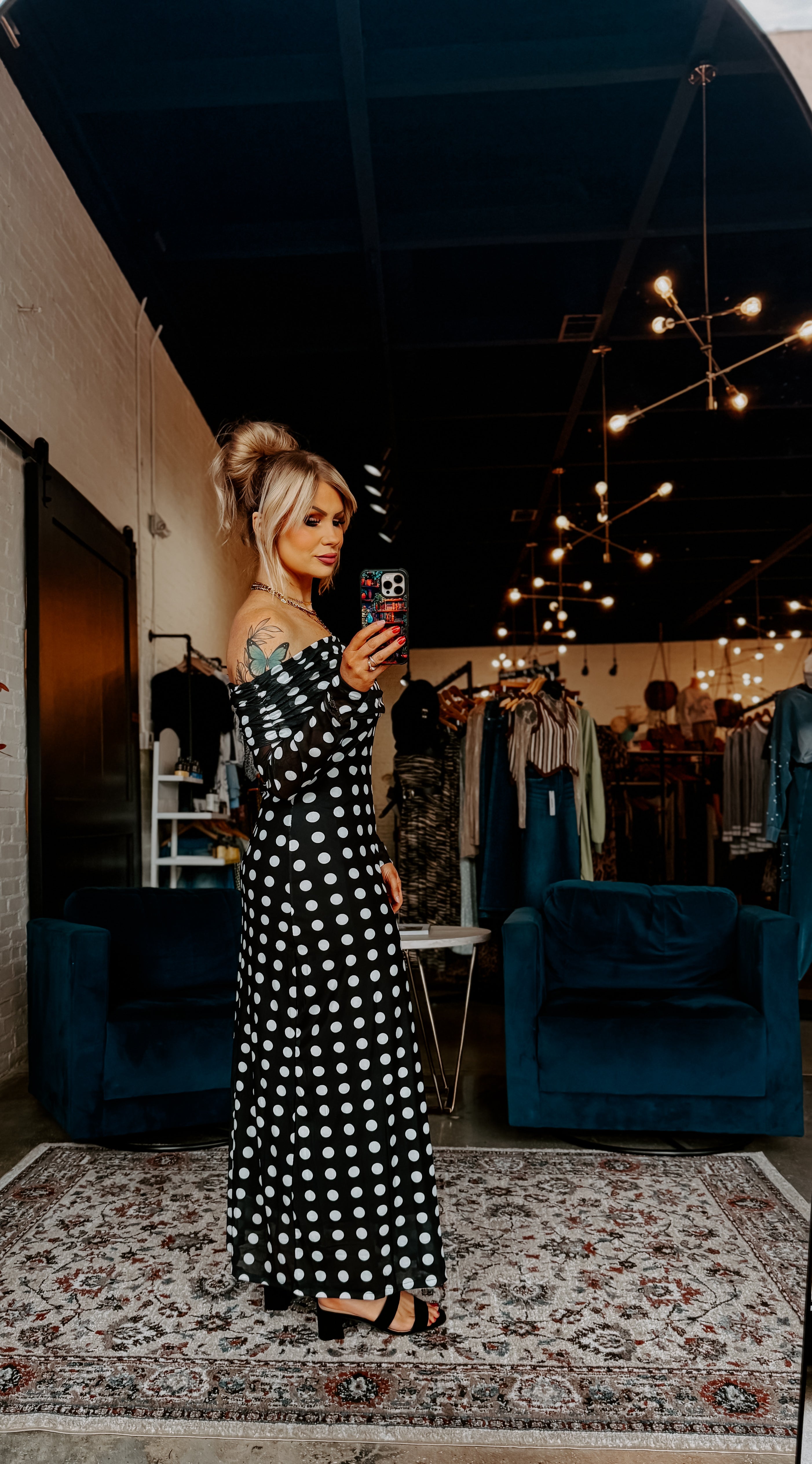 Elevate your evening look with this stunning mesh polka dot maxi dress. The sheer mesh fabric creates an alluring, sophisticated silhouette, while the classic polka dot pattern adds playful charm. The one-shoulder design offers modern elegance and flattering asymmetry that works beautifully for special occasions, date nights, or upscale events. The flowing maxi length provides graceful movement and timeless appeal. Perfect for those seeking a dress that balances bold style with refined femininity.