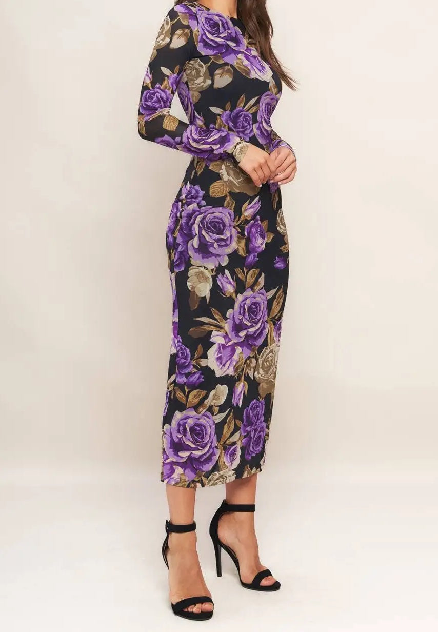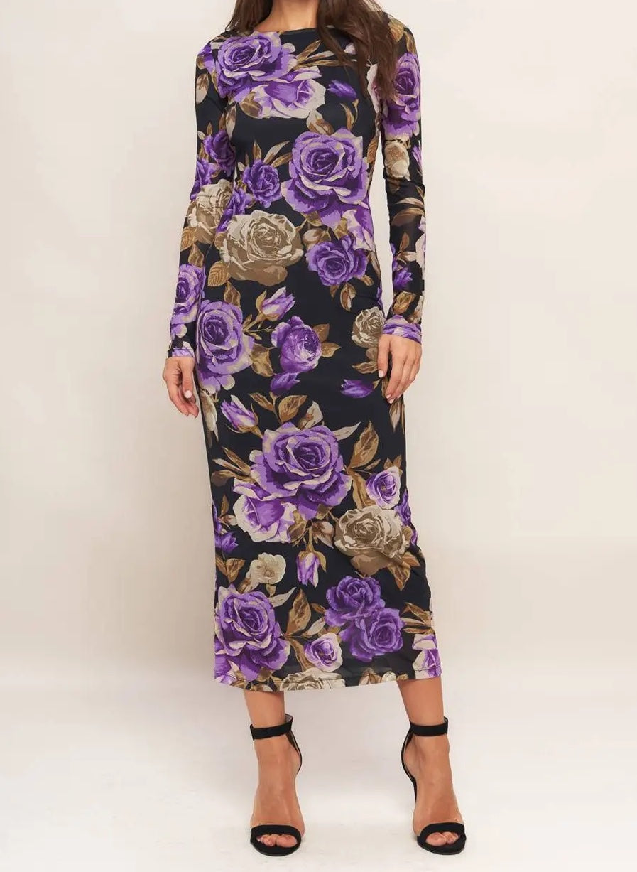 Elevate your wardrobe with this stunning power mesh midi dress that combines style with flattering functionality. The strategic body-contouring design smooths and shapes your silhouette while the printed pattern adds visual interest. Featuring a classic round neckline and elegant long sleeves, this versatile piece transitions seamlessly from day to night. The back neck button closure provides an easy, adjustable fit. Crafted from a premium blend of 95% polyester and 5% spandex with a fully lined interior, this dress offers comfort and durability you can rely on. Perfect for any occasion where you want to look and feel your absolute best.