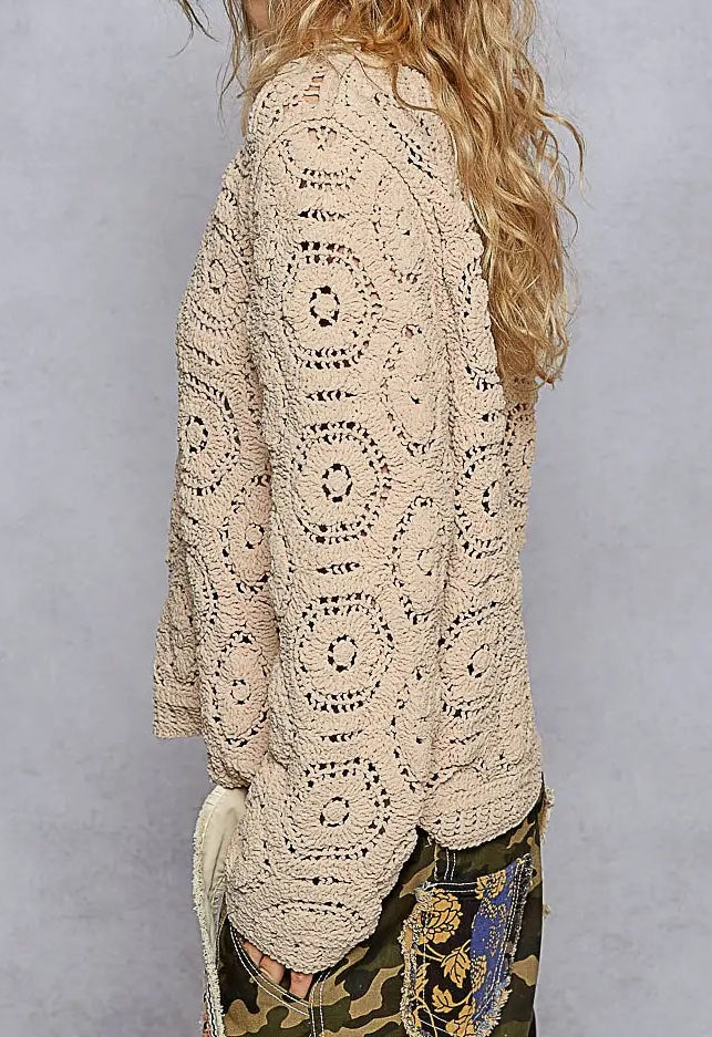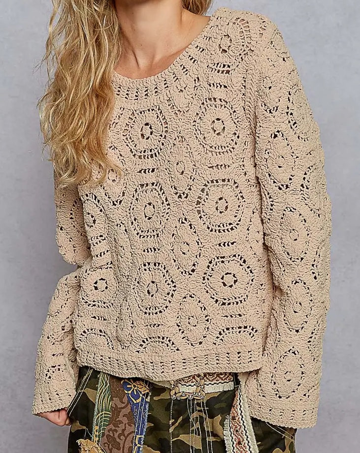 Embrace effortless comfort with this round neck long sleeve sweater, expertly crafted from soft knit crochet fabric. The stone-washed finish adds subtle texture and vintage charm to this versatile wardrobe essential. Perfect for layering or wearing solo, its relaxed fit flatters all body types. Ideal measurements: 19" bust, 22" front and back length, 24" sleeves, and 15" shoulder width. Whether you're heading to the office or enjoying a casual weekend, this timeless piece delivers both style and coziness in one sophisticated package.