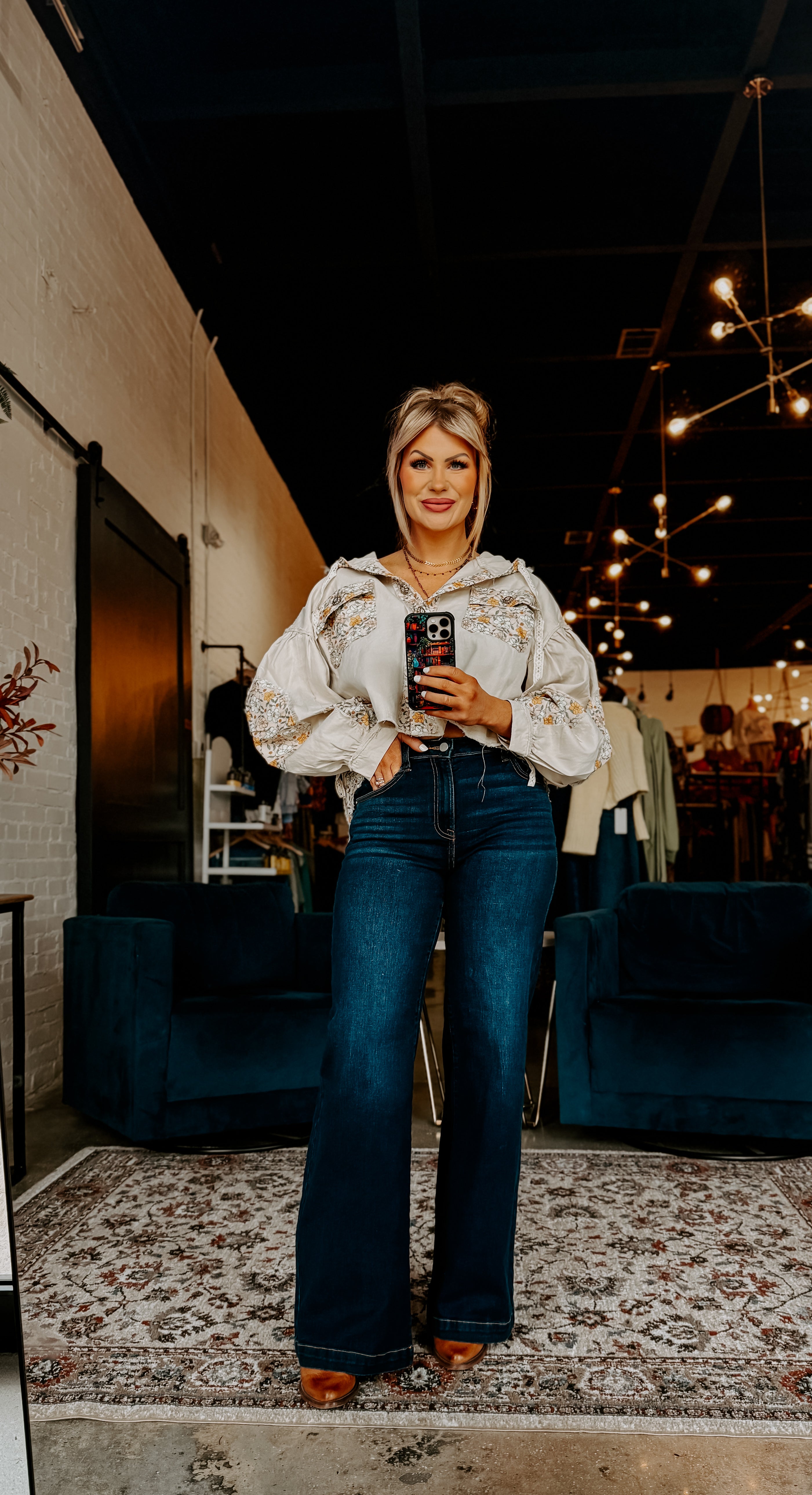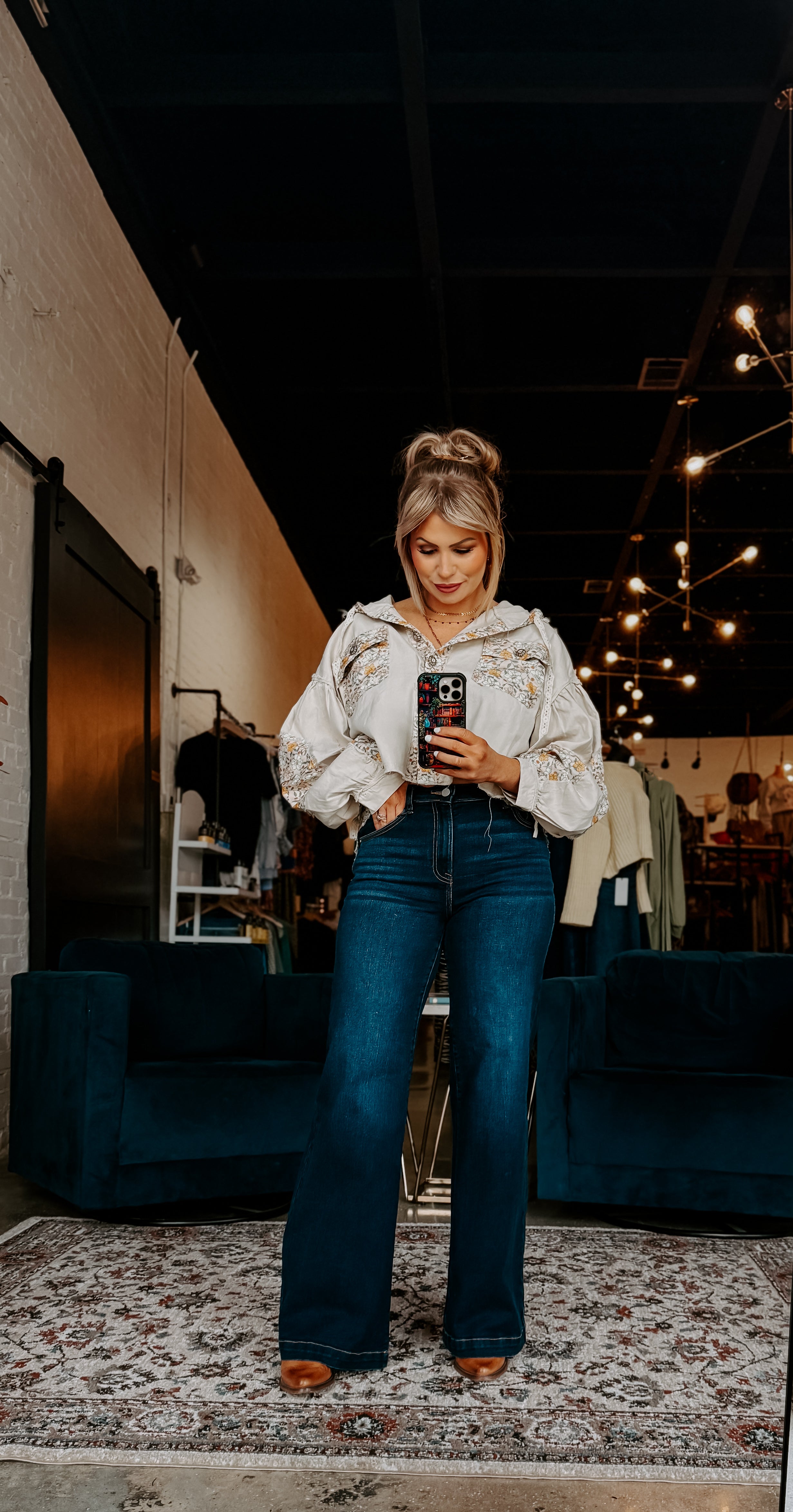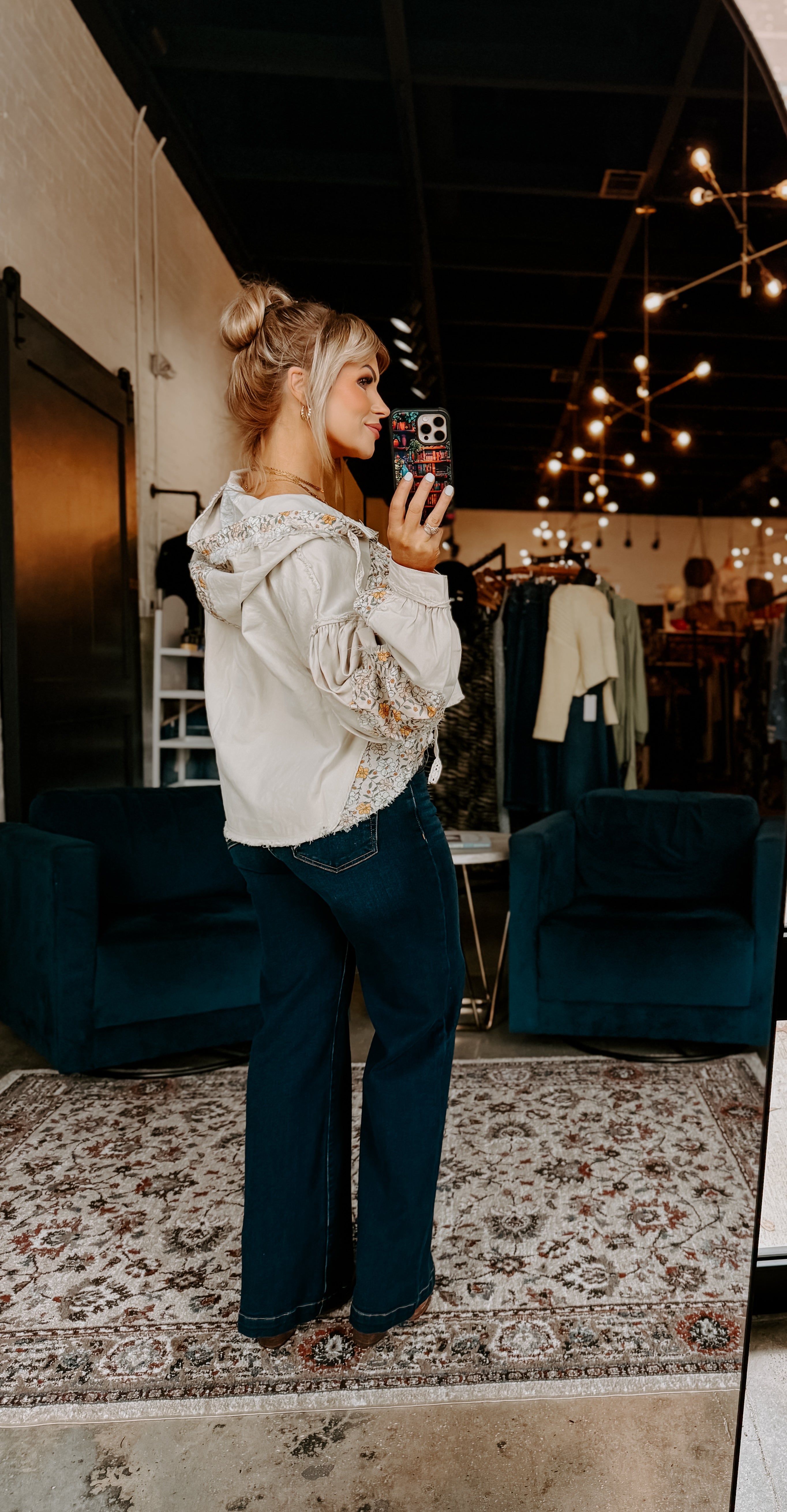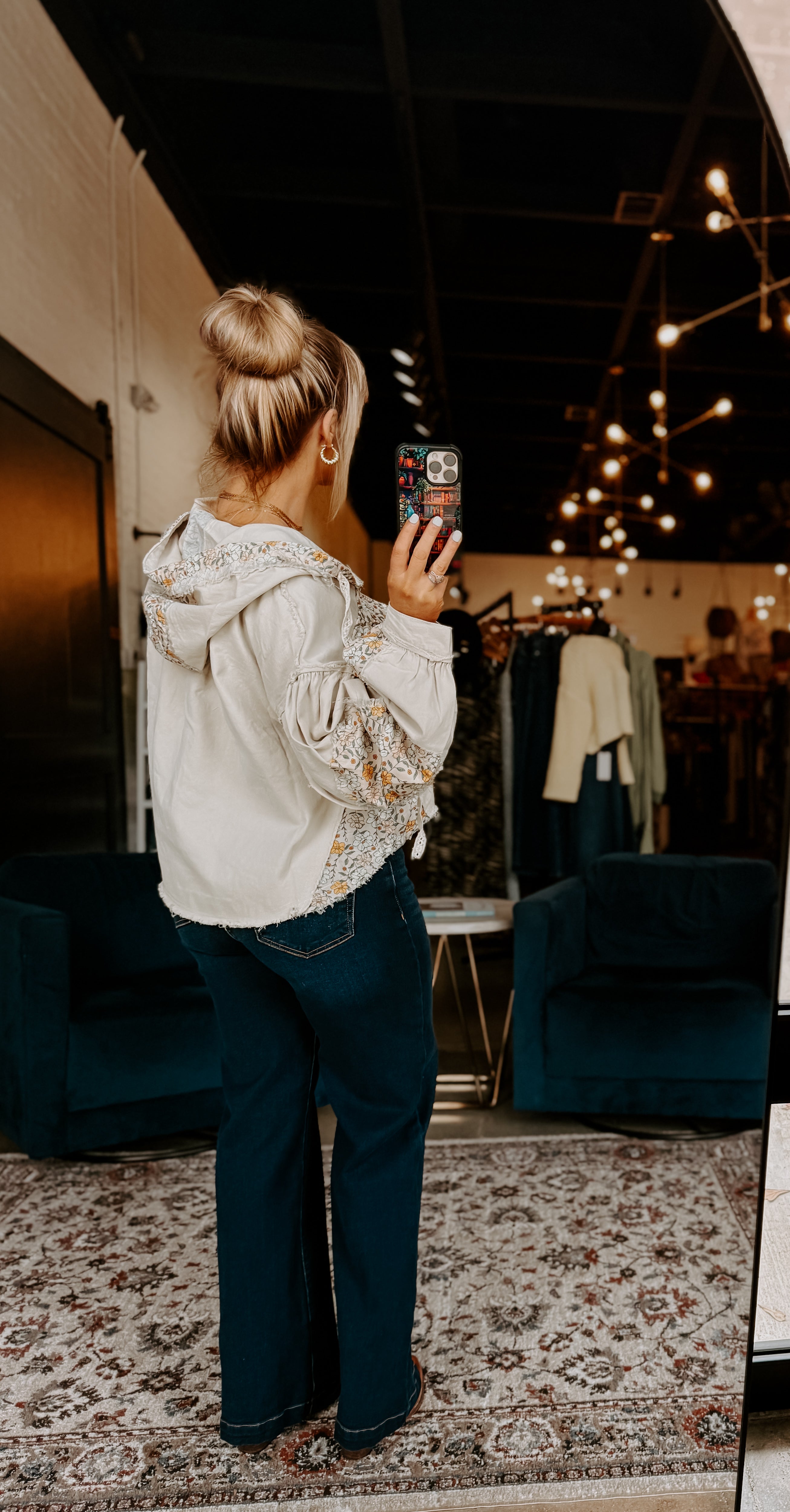 Elevate your wardrobe with this striking cropped twill top, featuring a sophisticated placket jacket design that commands attention. The voluminous balloon sleeves add contemporary flair, while the frayed edges and delicate pointed floral pattern create visual interest and texture. Cut to a flattering cropped length, this piece transitions seamlessly from casual outings to elevated occasions. The structured twill fabric ensures durability and maintains its shape, making it a versatile staple you'll reach for again and again. Perfect for layering or wearing solo, this top brings effortless style and personality to any ensemble.