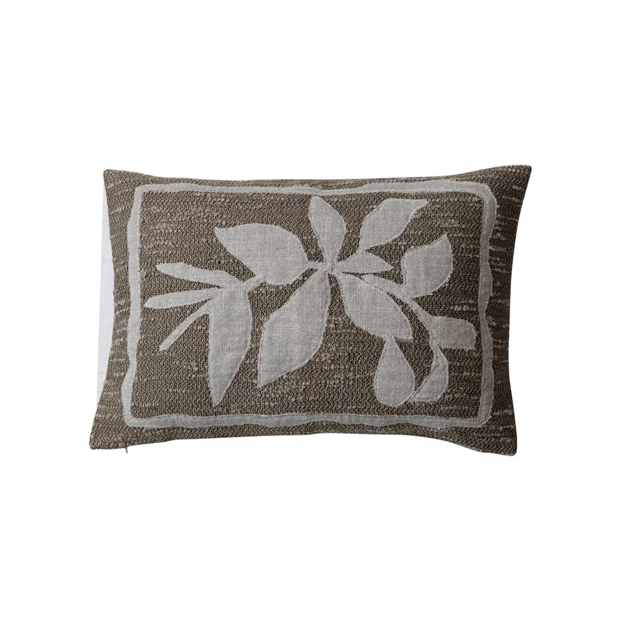 24"L x 16"H Woven Fabric Indoor/Outdoor Lumbar Pillow w/ Appliqued Botanicals
