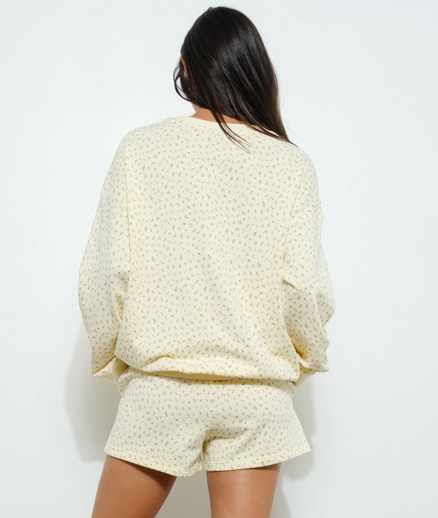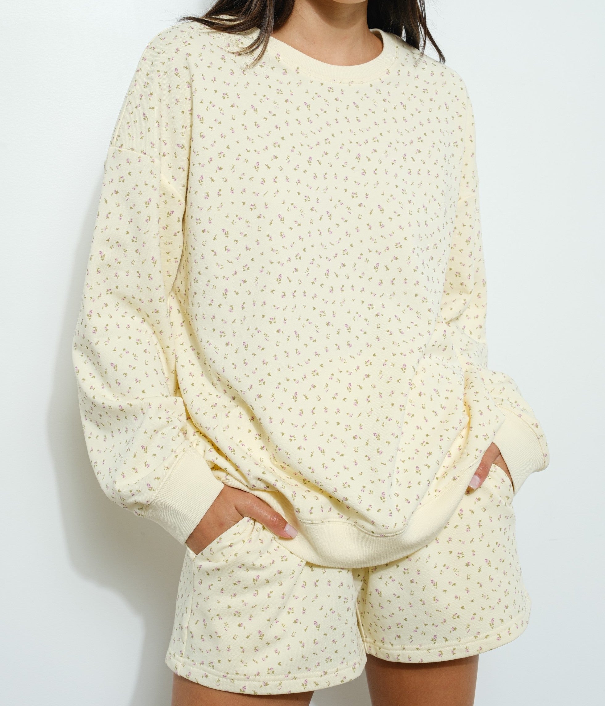 Unwind in style with our Ditsy Floral Sweatshirt. Crafted from premium french terry fabric, its oversized fit offers both comfort and fashion. The all over ditsy floral print adds a touch of sophistication to any ensemble. Elevate your wardrobe with this must-have piece.