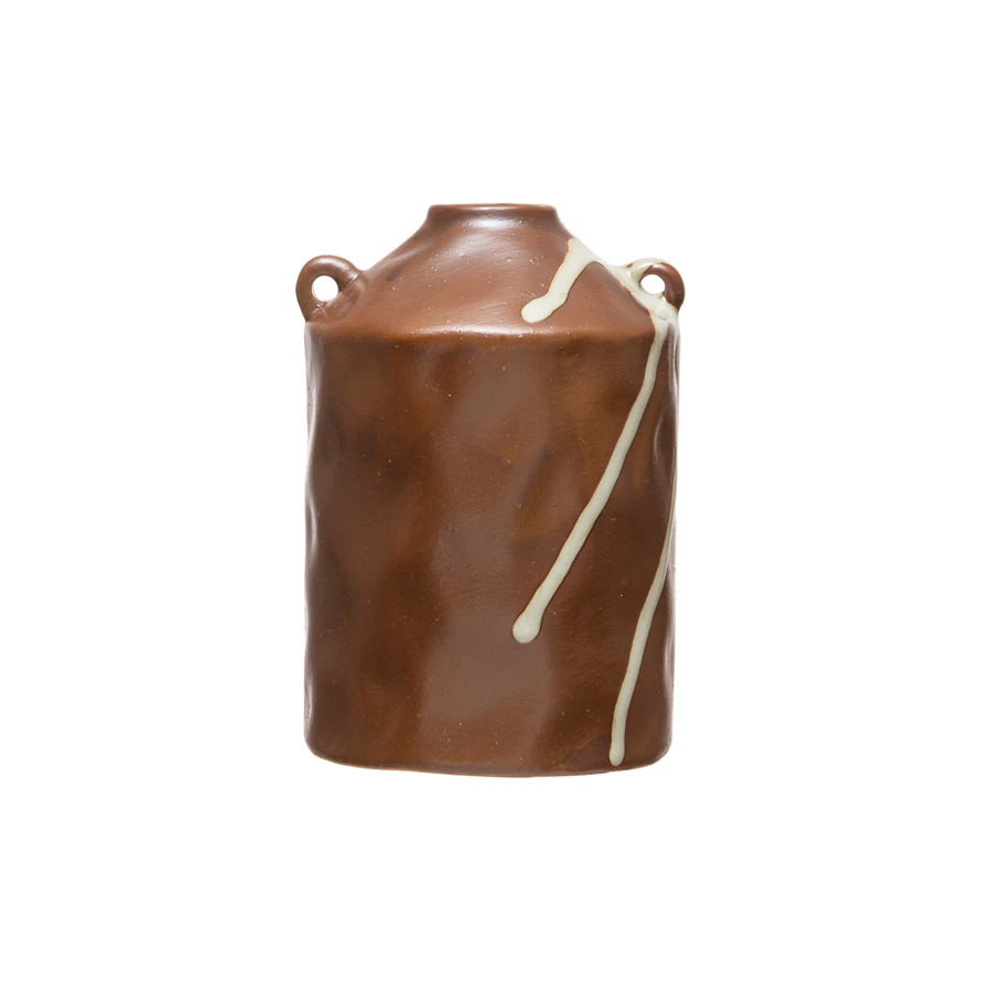 Add a touch of rustic elegance to your home with our handmade Stoneware Vase! Its unique brown and white drip glaze adds character and charm to any space. Display your favorite flowers or use it on its own as a beautiful centerpiece. Elevate your decor with this versatile and one-of-a-kind piece