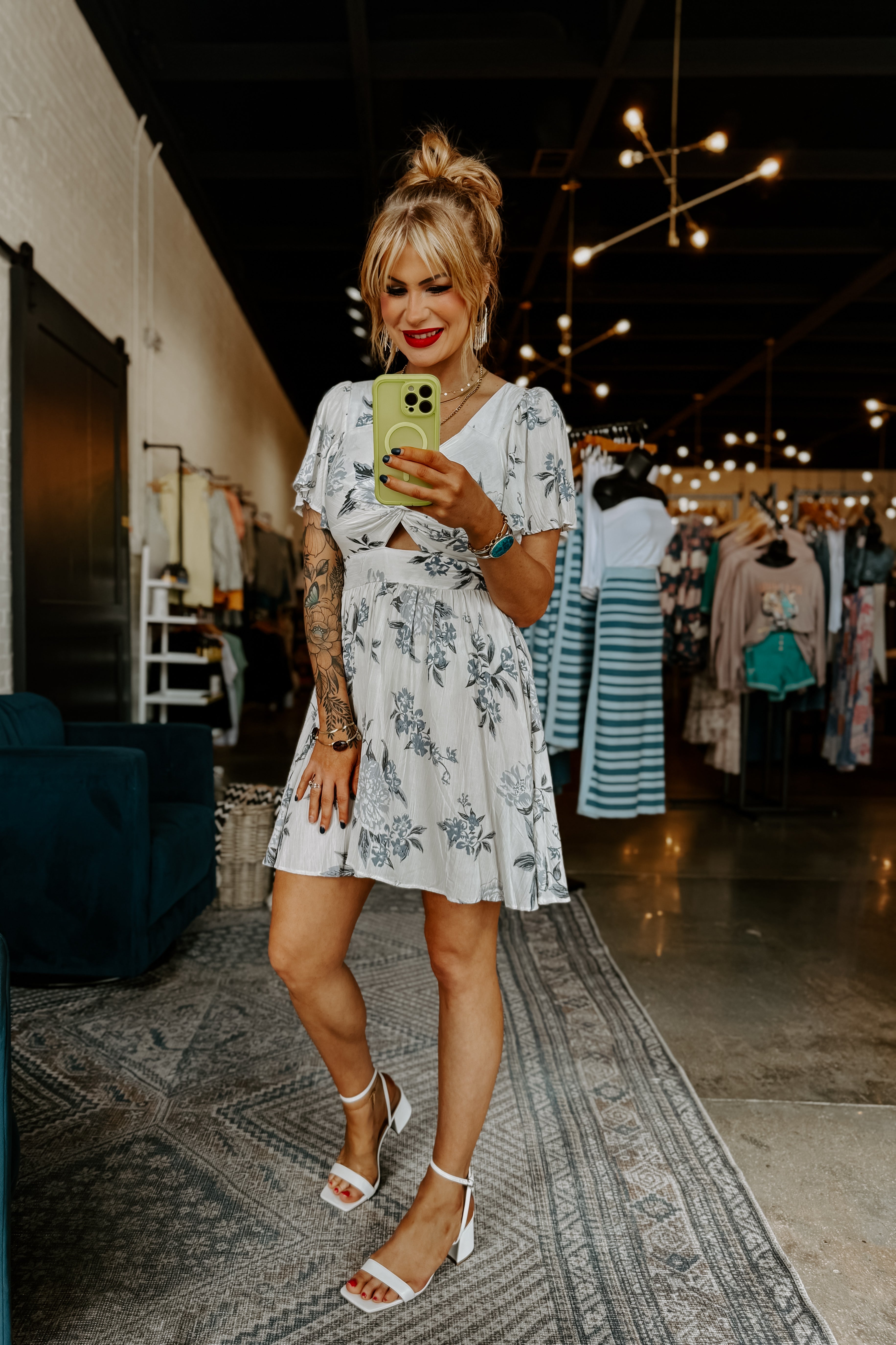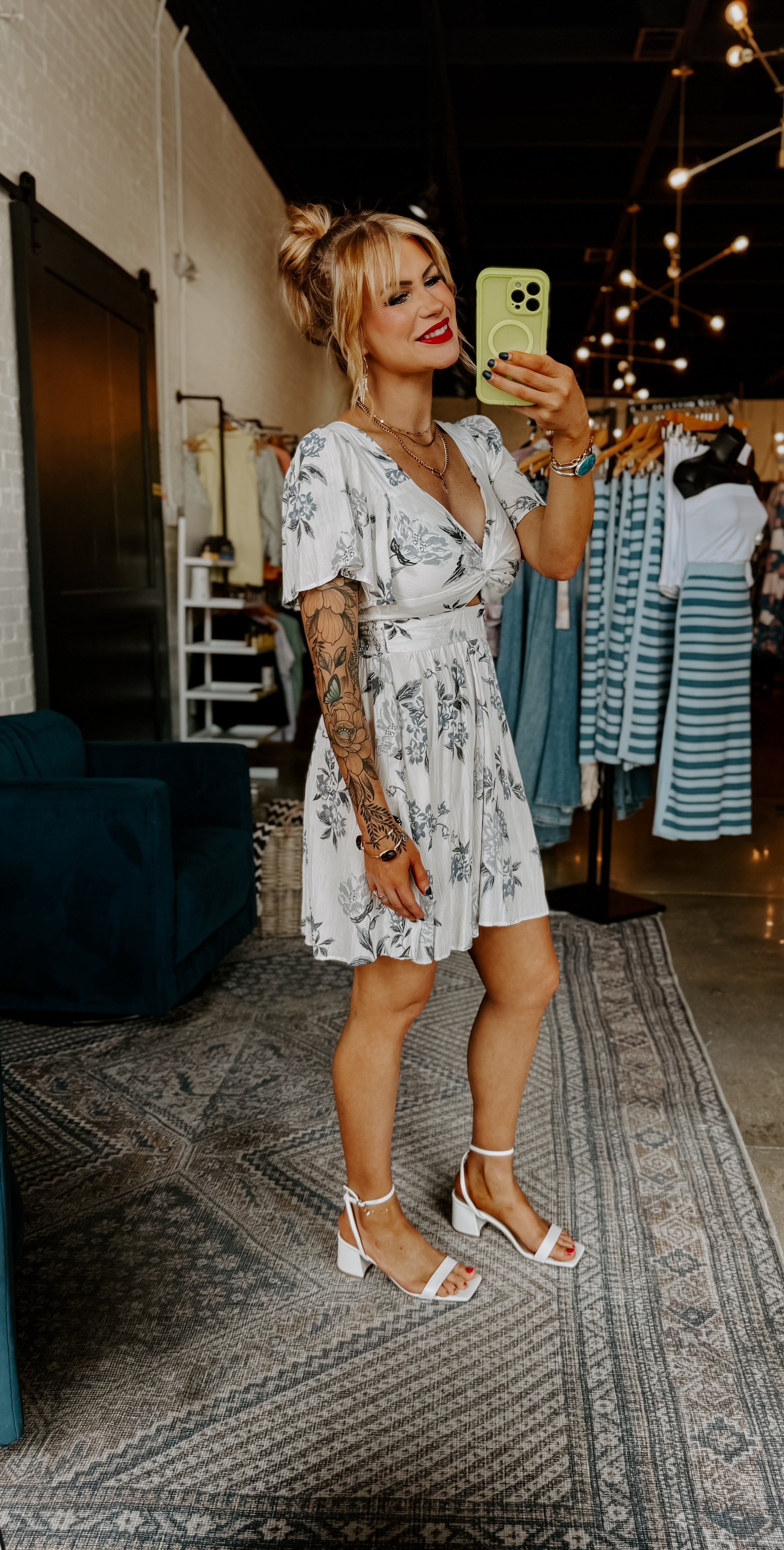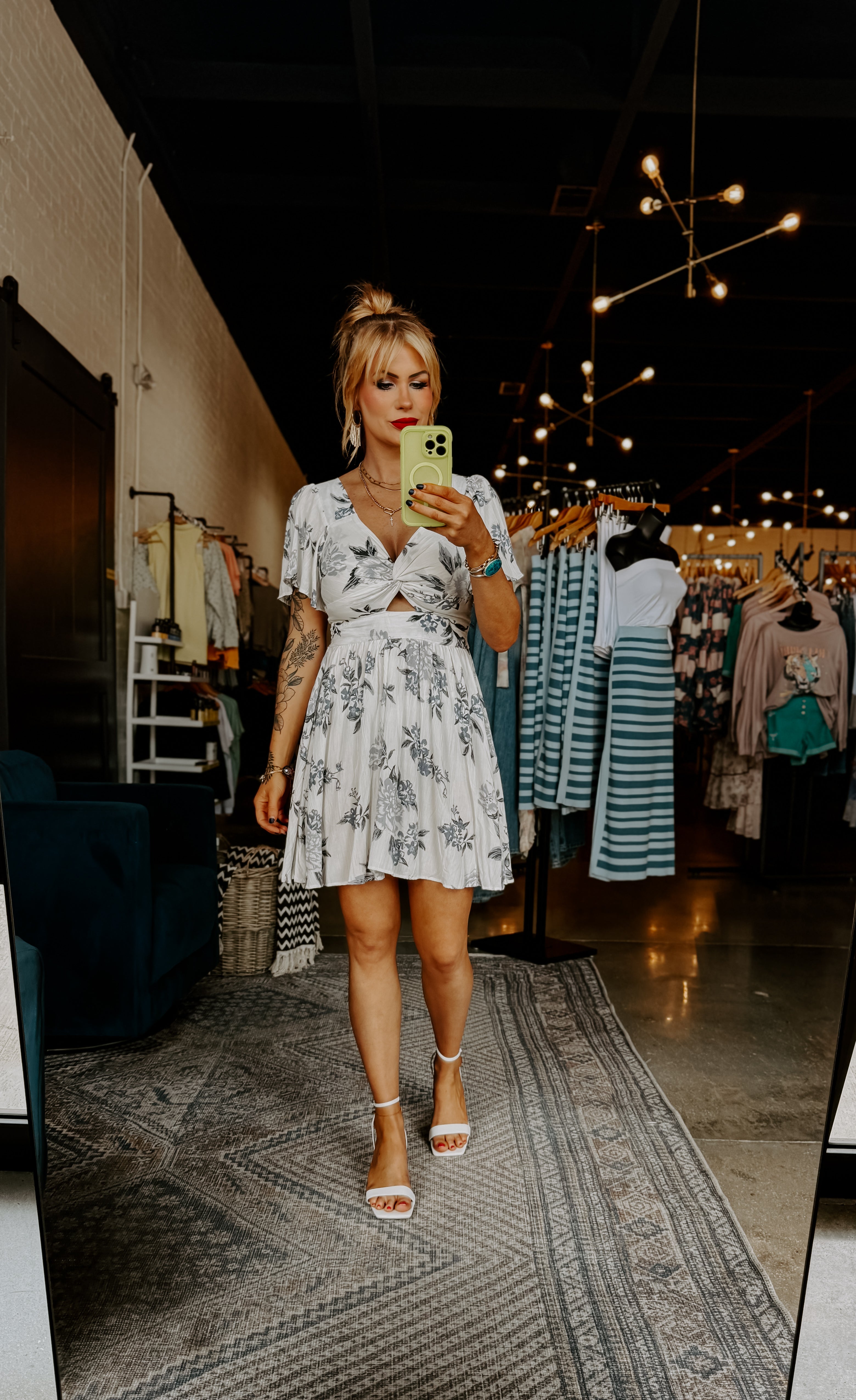 This dress is a twist on a classic with its playful V neck and cut out design. Perfect for a night out or a day at the beach. Ready to make a statement? Look no further!