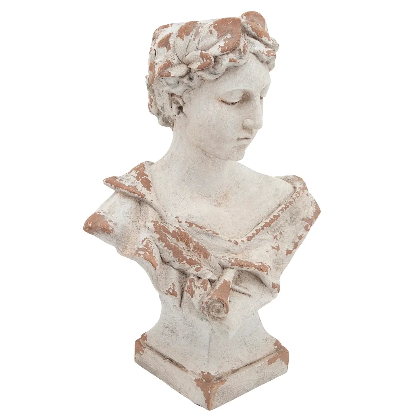 Bring timeless elegance to your home or garden with this exquisite polyresin garden statuary. Designed with intricate details and a classic white finish, this decorative statue adds a touch of sophistication to any space. Whether placed indoors as a striking accent piece or outdoors as a charming garden feature, it enhances the ambiance with its graceful presence. Crafted from high-quality polyresin, this statue is both lightweight and durable, ensuring longevity without compromising on style. The weather-resistant material makes it ideal for year-round outdoor display, allowing it to withstand the elements while maintaining its beauty. The distressed white finish gives it an antique-inspired look, perfect for adding vintage charm to your décor.