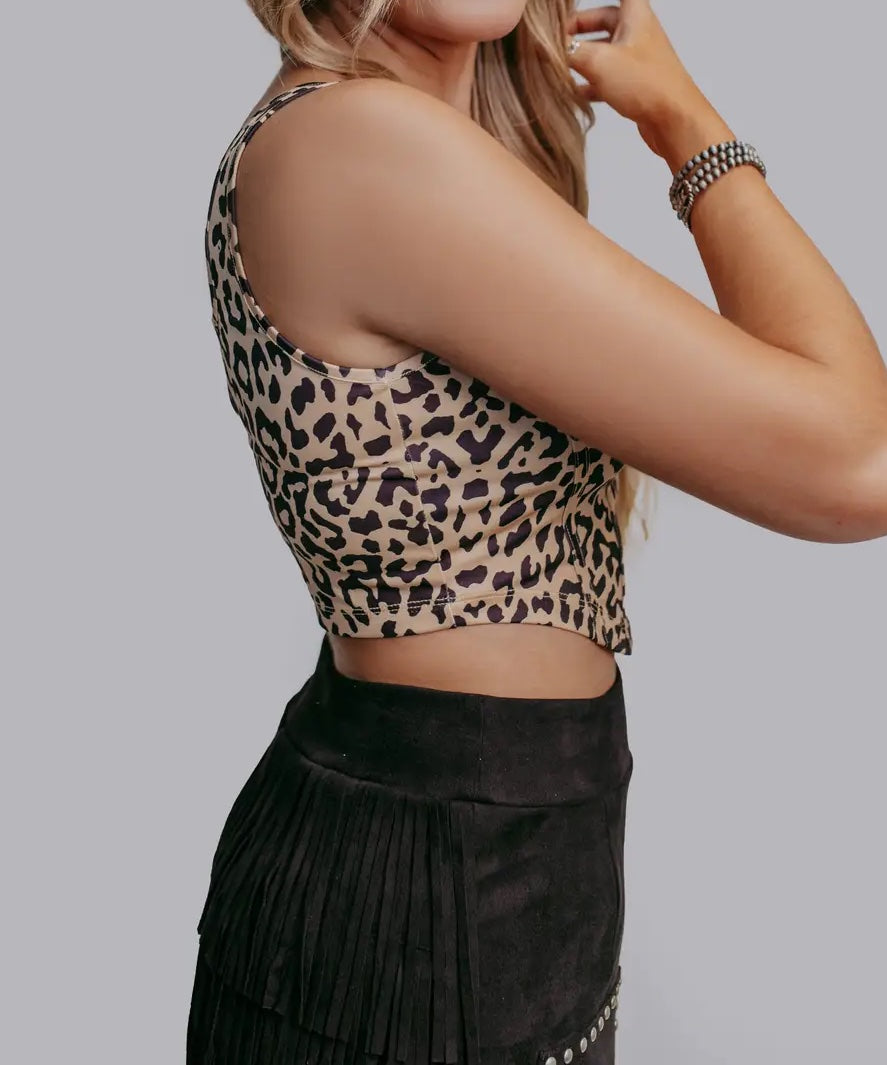 Indulge in luxury with our stunning Leopard Corset Top. Made with stretch fabric, this versatile top can be worn as a stylish top or as an athletic top. Embrace your wild side and elevate your wardrobe with this statement piece.