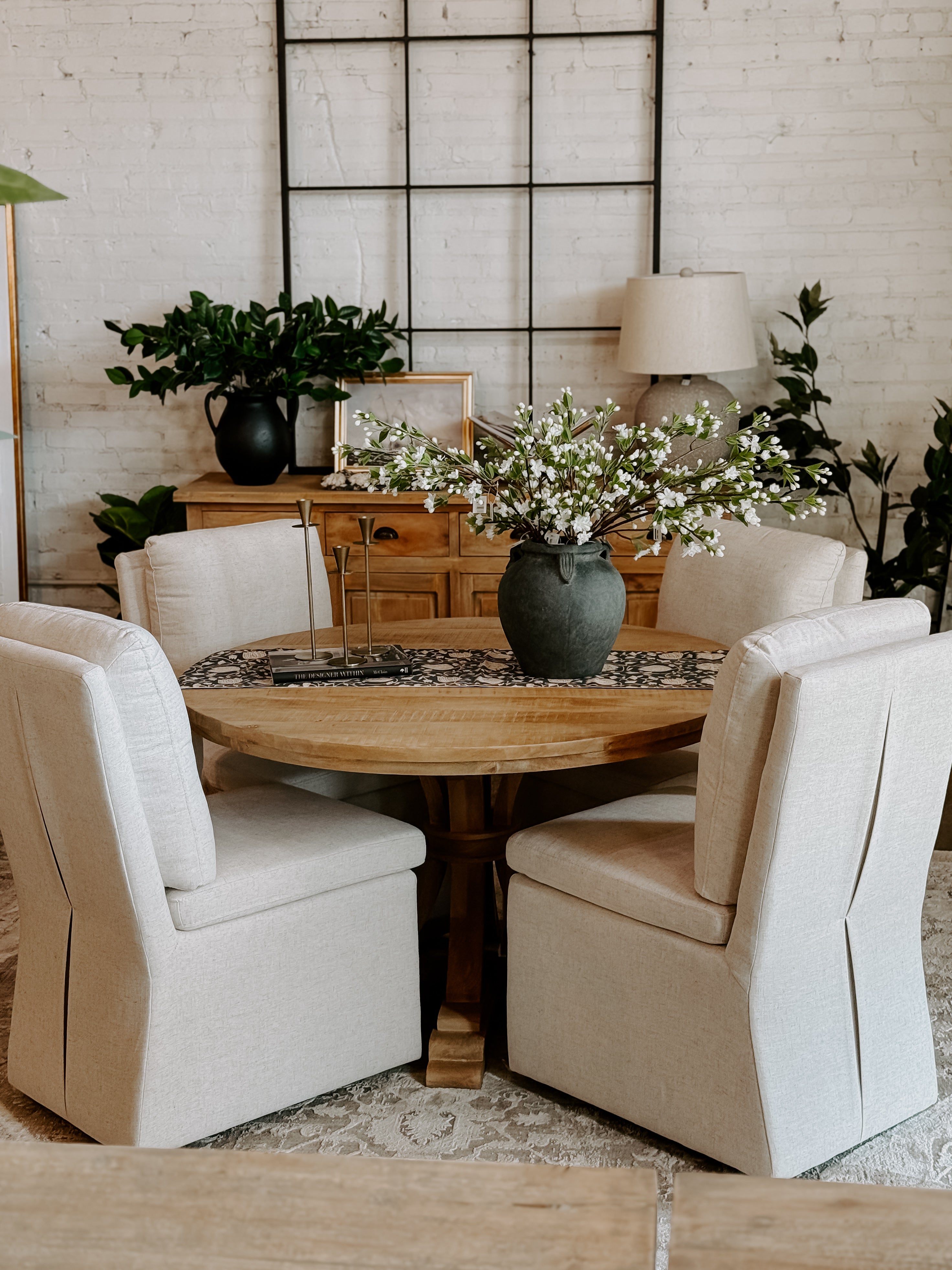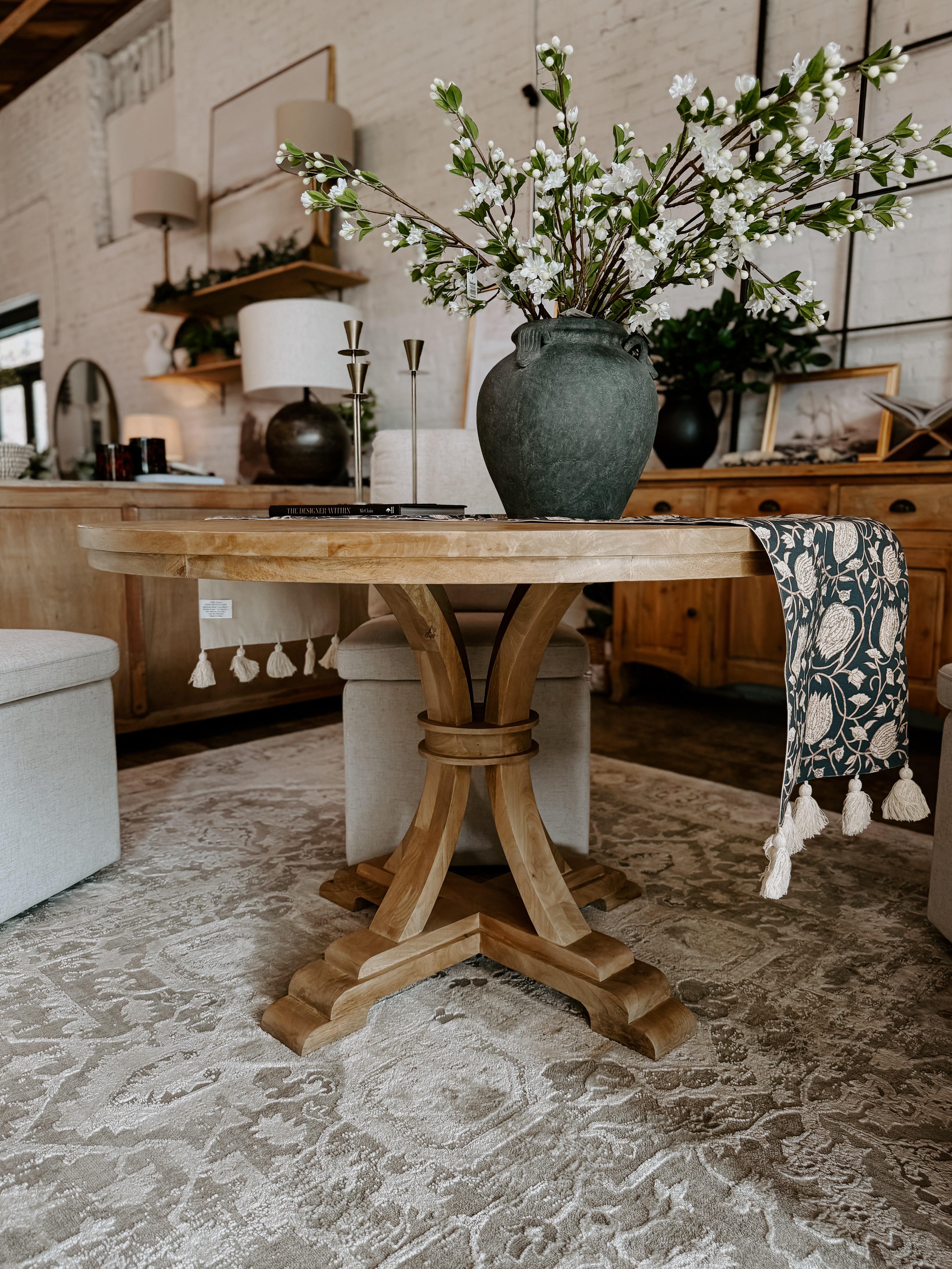 Enhance your dining experience with our 48" bleached color mango wood dining table. Made from durable mango wood, this table adds a touch of elegance to any space. Enjoy the natural beauty and unique grain patterns of mango wood while entertaining guests or sharing meals with loved ones.