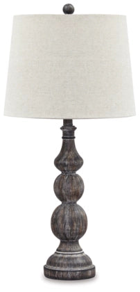 Add a touch of timeworn sophistication to your space with this beautifully crafted table lamp. The black finish with two-tone gradations and turned base silhouette contrast against the neutral drum shade. Enjoy versatile lighting with the 3-way switch and use of a 1 type A bulb (not included) up to 150 watts or CFL 25 watts. UL Listed. Cleaning is a breeze with a soft, dry cloth