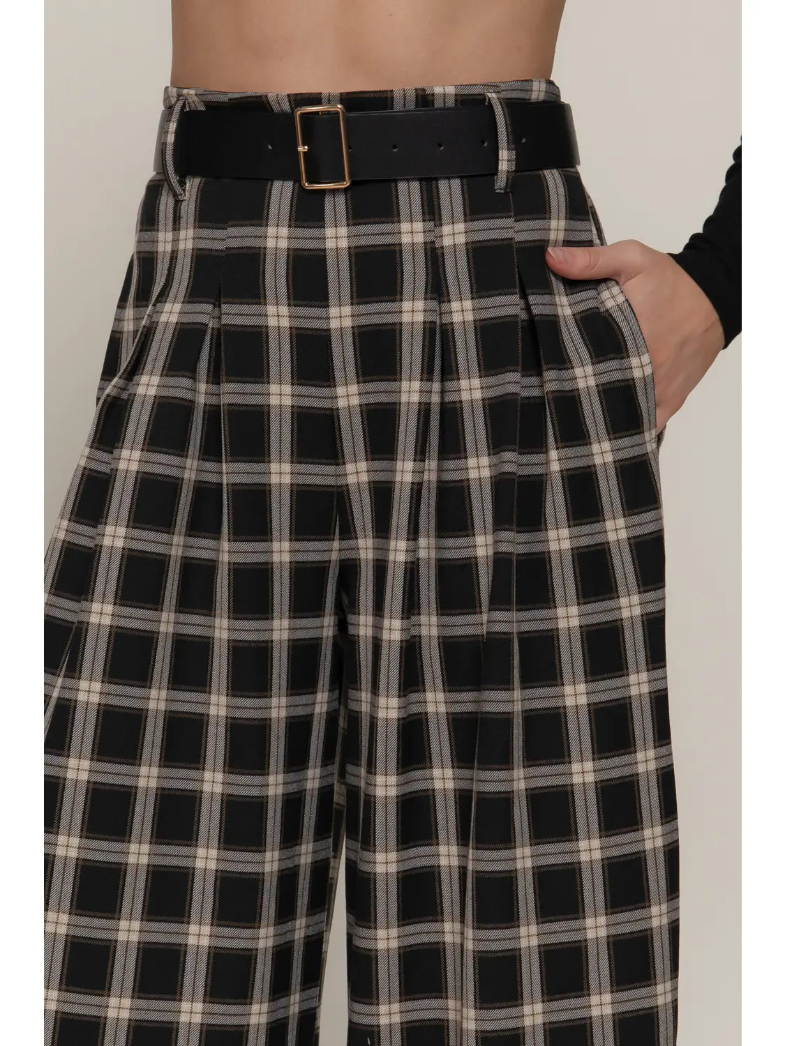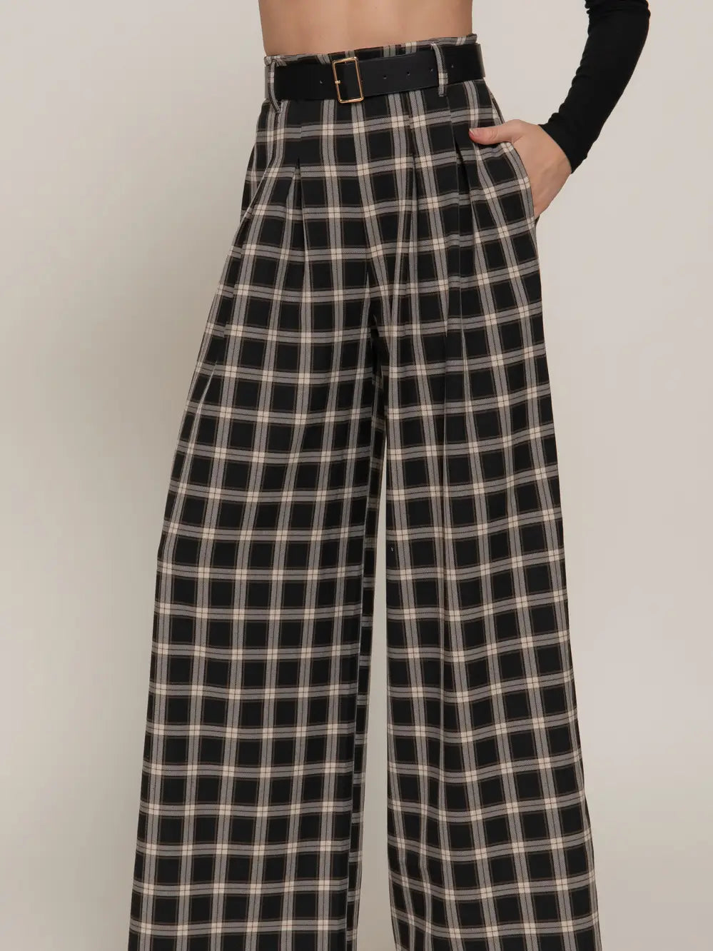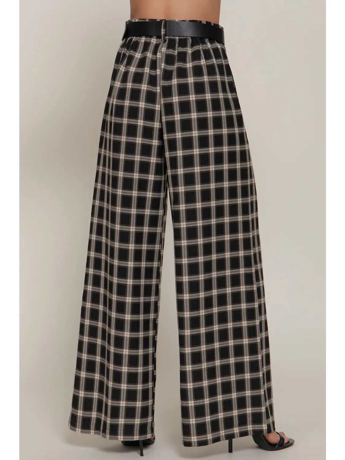 Make a statement with these striking plaid wide-leg pants, complete with a coordinating belt for instant styling ease.