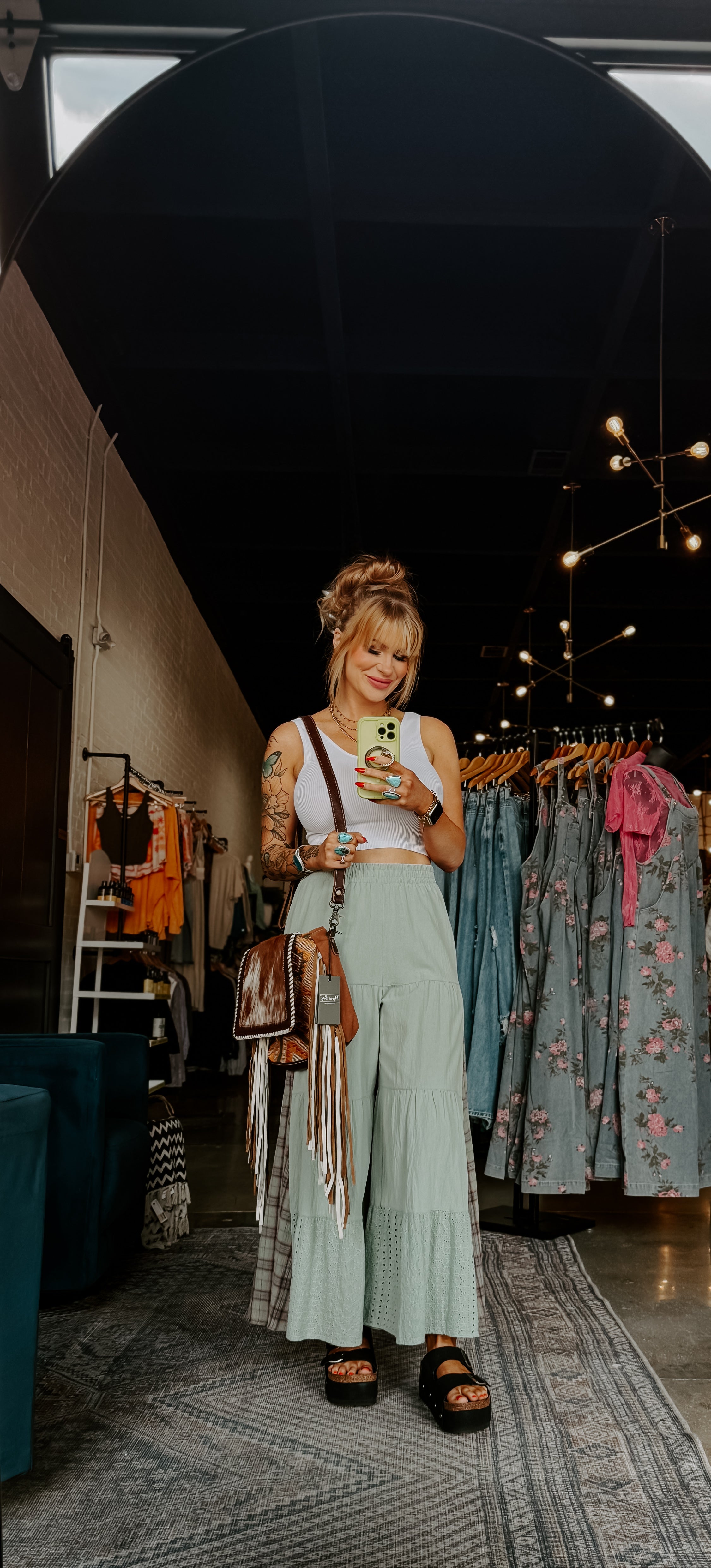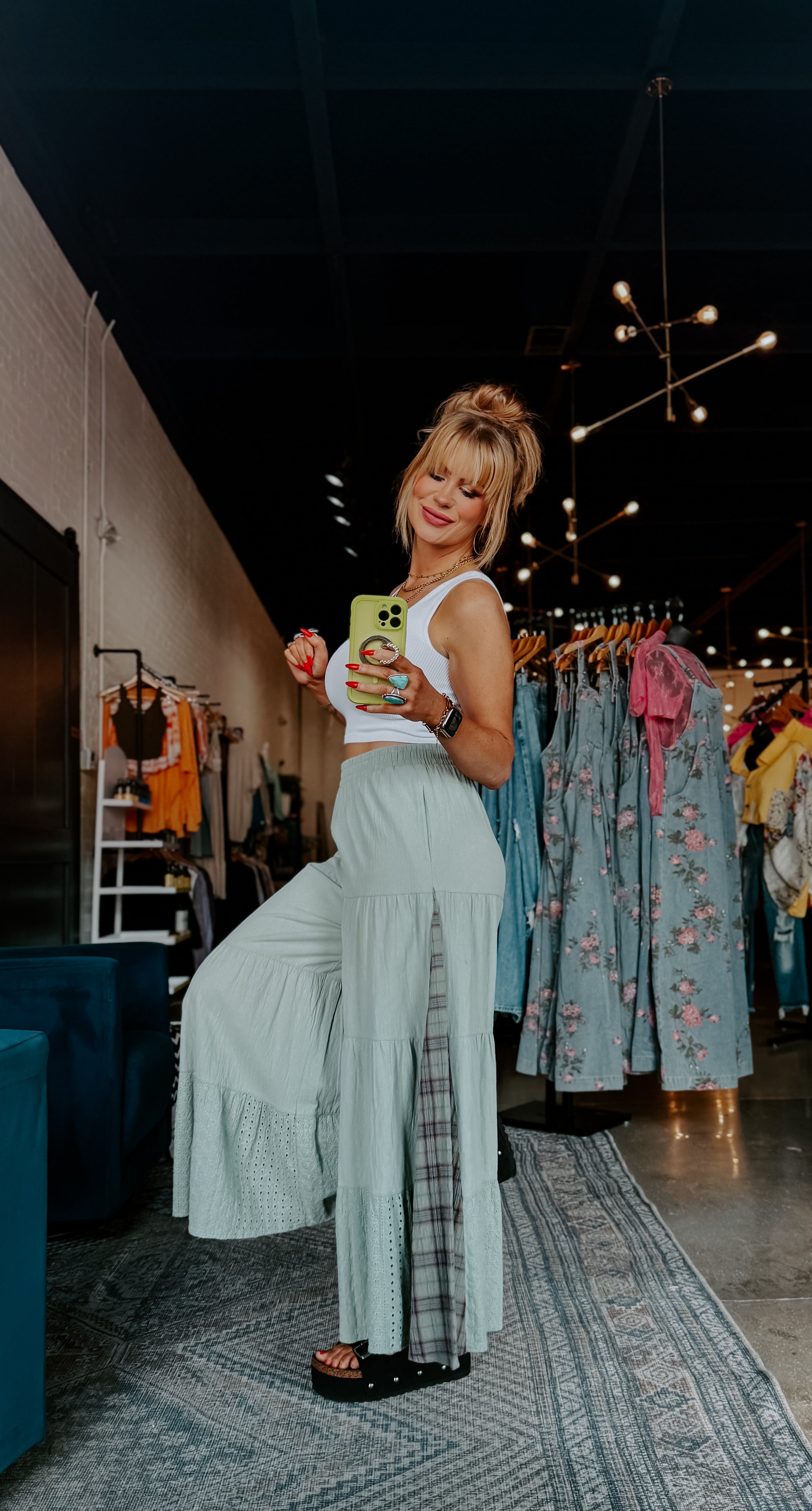 Elevate your wardrobe with our Acid-Washed Tired Palazzo Pants! Effortlessly stylish, these pants feature contrast fabric panels and an elastic waistband for ultimate comfort. The acid-washed design adds a touch of edgy flair. Perfect for a day out or a night on the town.
