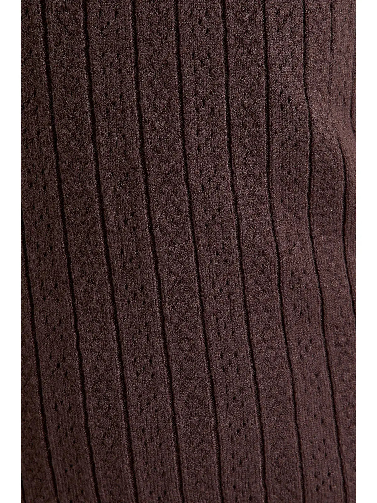 Embrace cozy elegance with this Long Sleeve Round Neck Pointelle Sweater Dress in a rich dark brown. Crafted for comfort and style, its delicate pointelle knit adds subtle texture, while the round neck and long sleeves offer a flattering, timeless silhouette. Perfect for layering or wearing solo, this dress combines warmth with effortless sophistication for your everyday wardrobe.