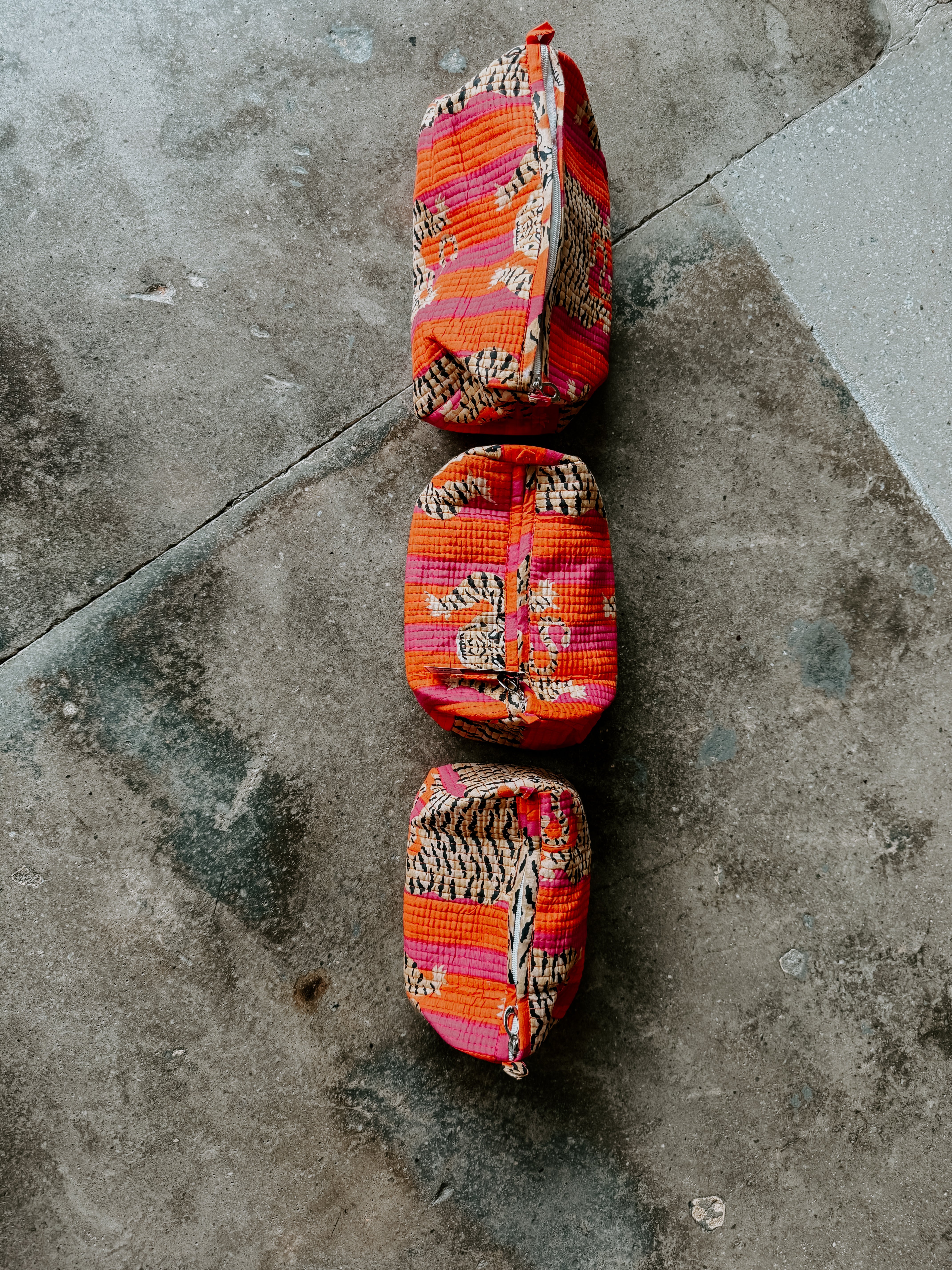 Add a splash of charm to your beauty routine with our hand-block printed cotton quilted makeup bags! Available in three handy sizes, each bag features inner pockets to keep your essentials organized and a sturdy zipper to secure your treasures. Fully lined with waterproof fabric, these bags protect against spills while showcasing vibrant, intricate designs. Stylish, practical, and ready for any adventure—your perfect travel companion awaits!