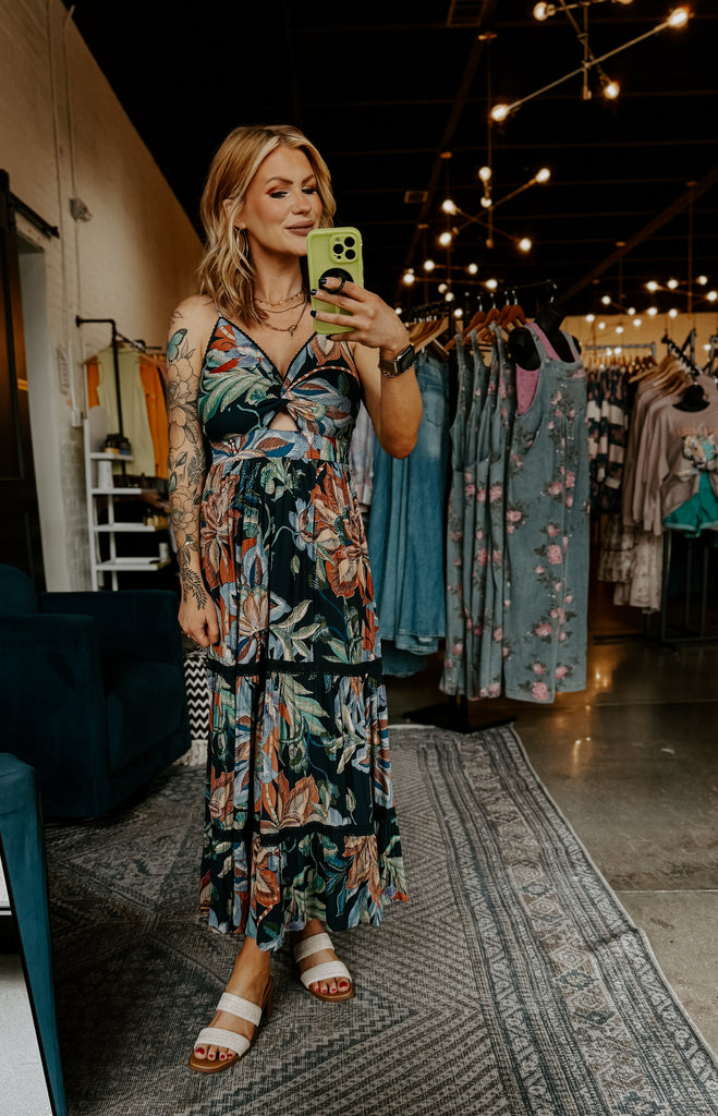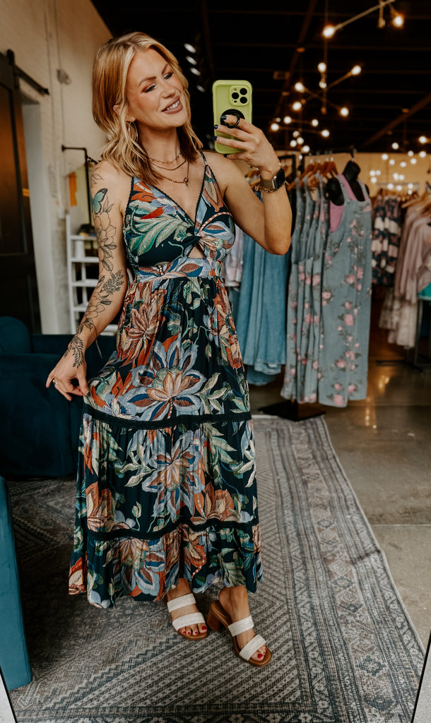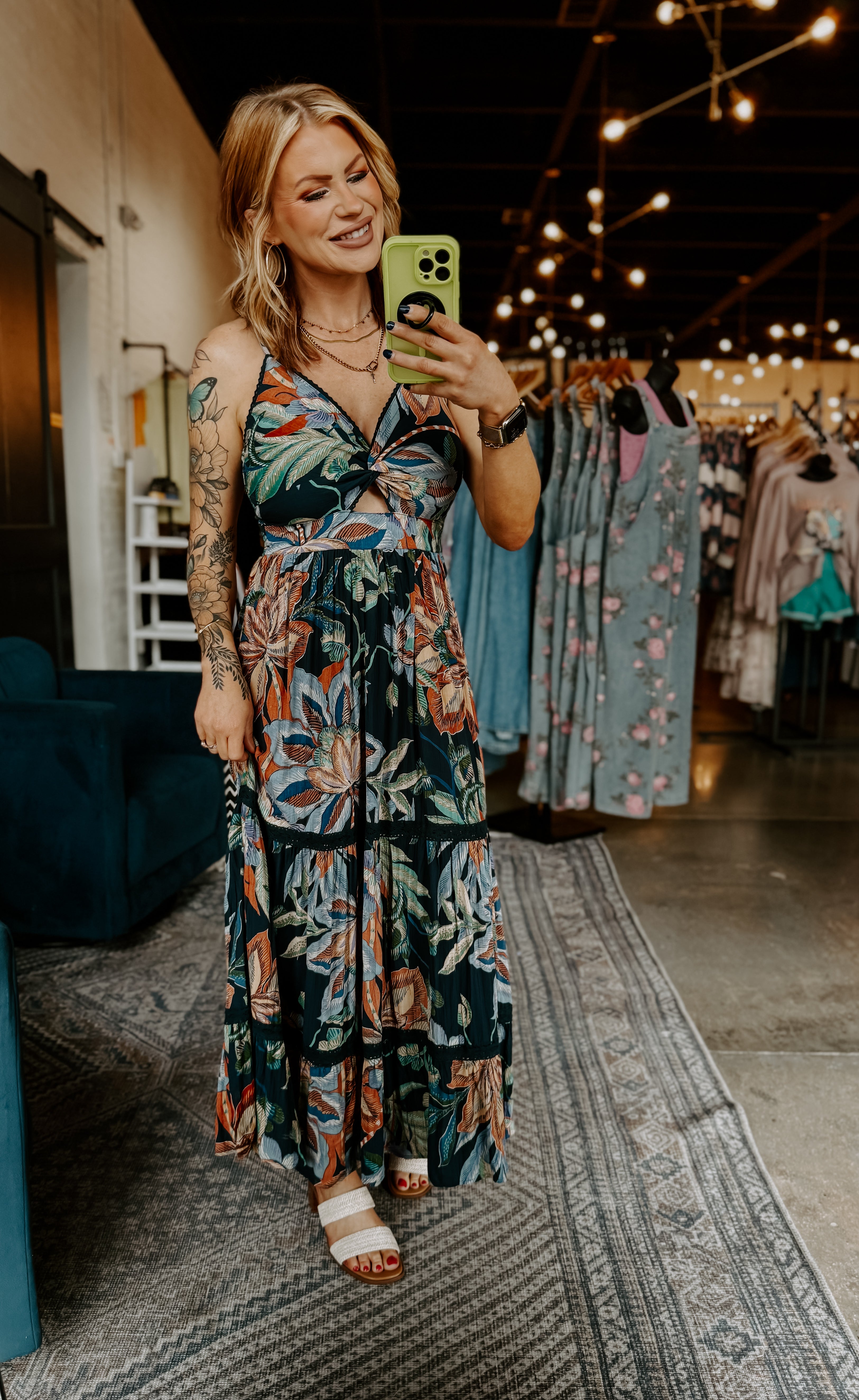 Step out in style with our V Neck Twist Front Cut Out Maxi Dress! This dress features a playful twist front and cut out detail, adding a touch of unique charm to your look. Perfect for any occasion, it offers both comfort and style, making heads turn wherever you go. (Dance the night away in this quirky and stylish maxi dress!)