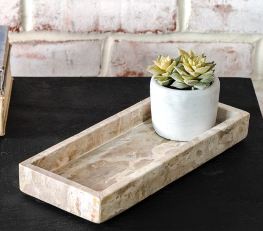 Elevate your vanity with our luxurious 10" X 4.25" BEIGE MARBLE VANITY TRAY! Made of elegant beige marble, this tray adds a touch of sophistication to any bathroom or dresser. Keep your beauty essentials organized and easily accessible. Transform your daily routine into a pampering experience.