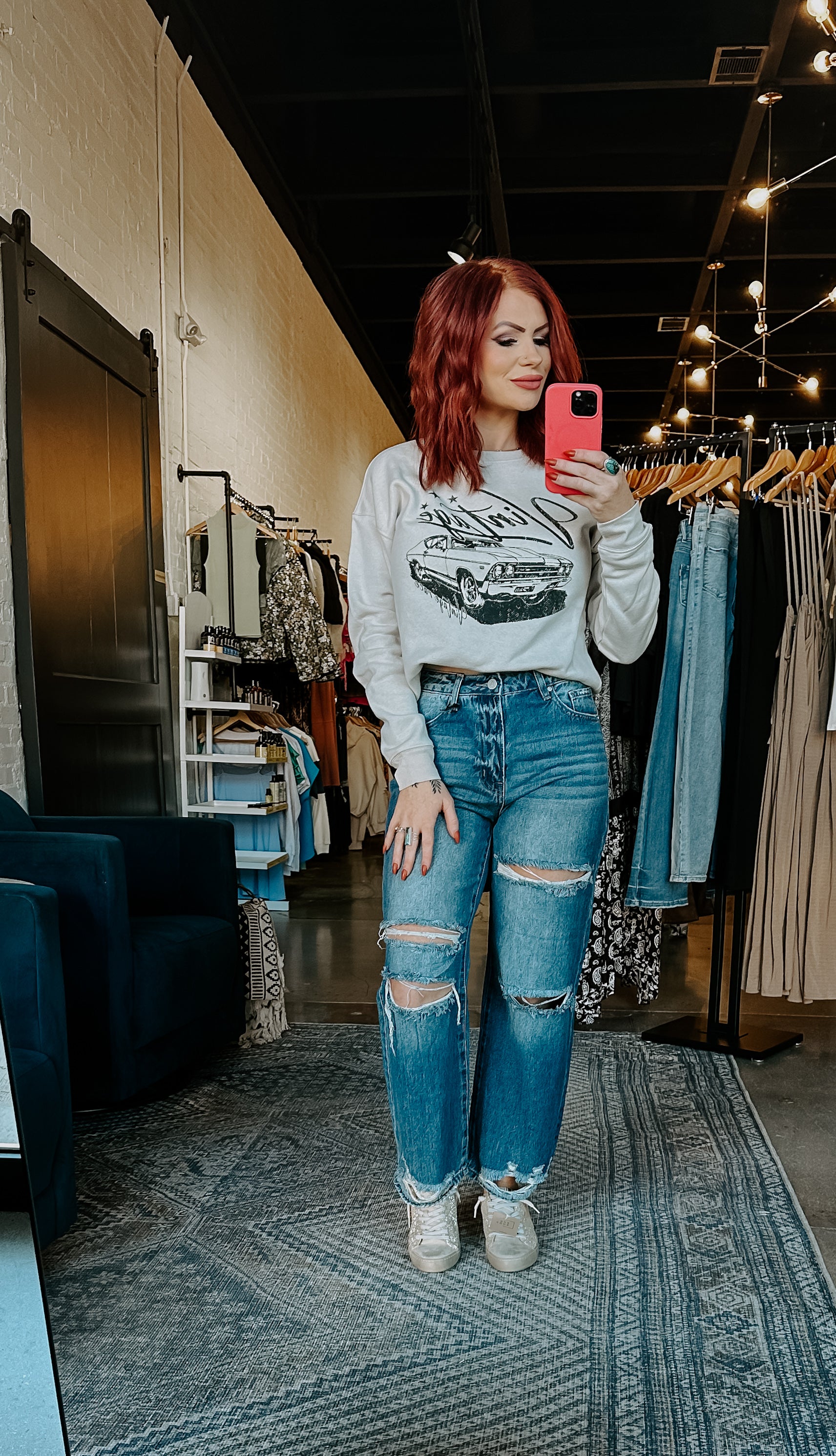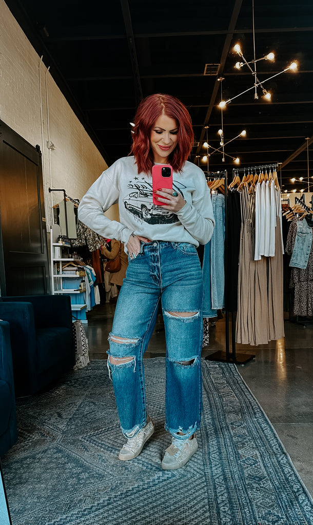 Indulge in luxury and style with our Vintage Race Graphic Sweatshirt. Crafted with high-quality materials, this sophisticated sweatshirt features a unique vintage race graphic design. Perfect for the fashion-forward individual looking to make a statement, experience the ultimate combination of comfort and exclusivity.