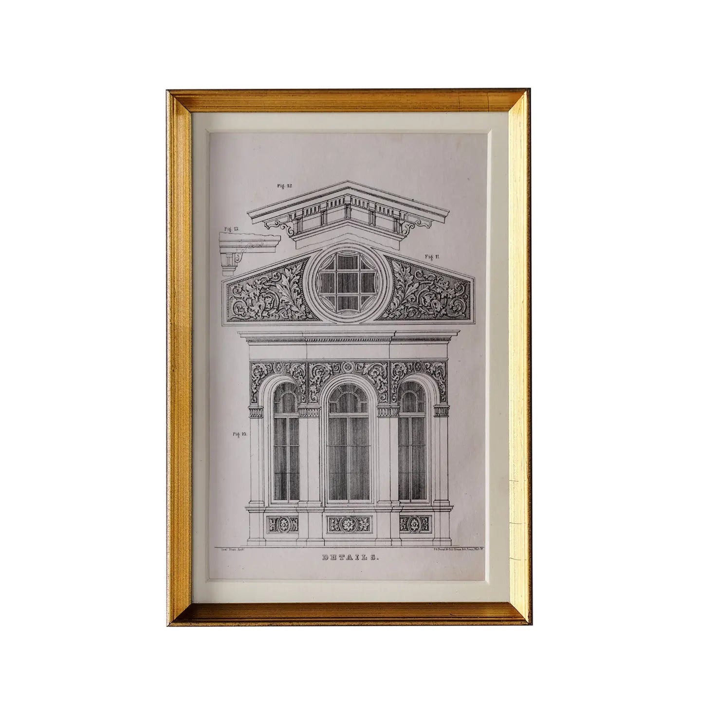 Add a touch of vintage charm with the Dorset Matted Frame. These traditionally styled frame features an antique gold finish and can be hung or displayed on a tabletop. Each frame comes with a unique black-and-white architectural sketch print on art paper. Elevate your decor with the Dorset Matted Frames. (Hang it or put it down, either way it's gold! Vintage sketch included!)