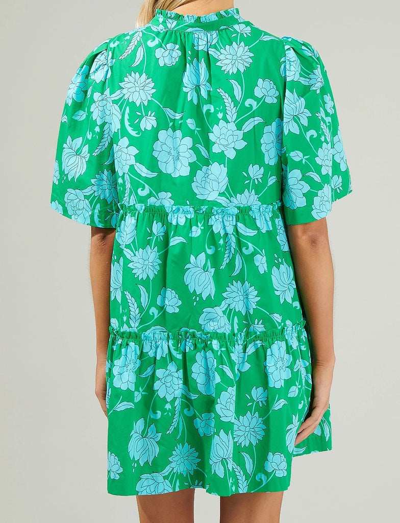 Elevate your style with the Waterlilly Floral-Print Shift Dress! Its breathable fabric, gathered shoulders, and pockets provide both comfort and functionality. The split neckline and ruffle-lined tiers add a touch of elegance. Perfect for both casual and dressy occasions.
