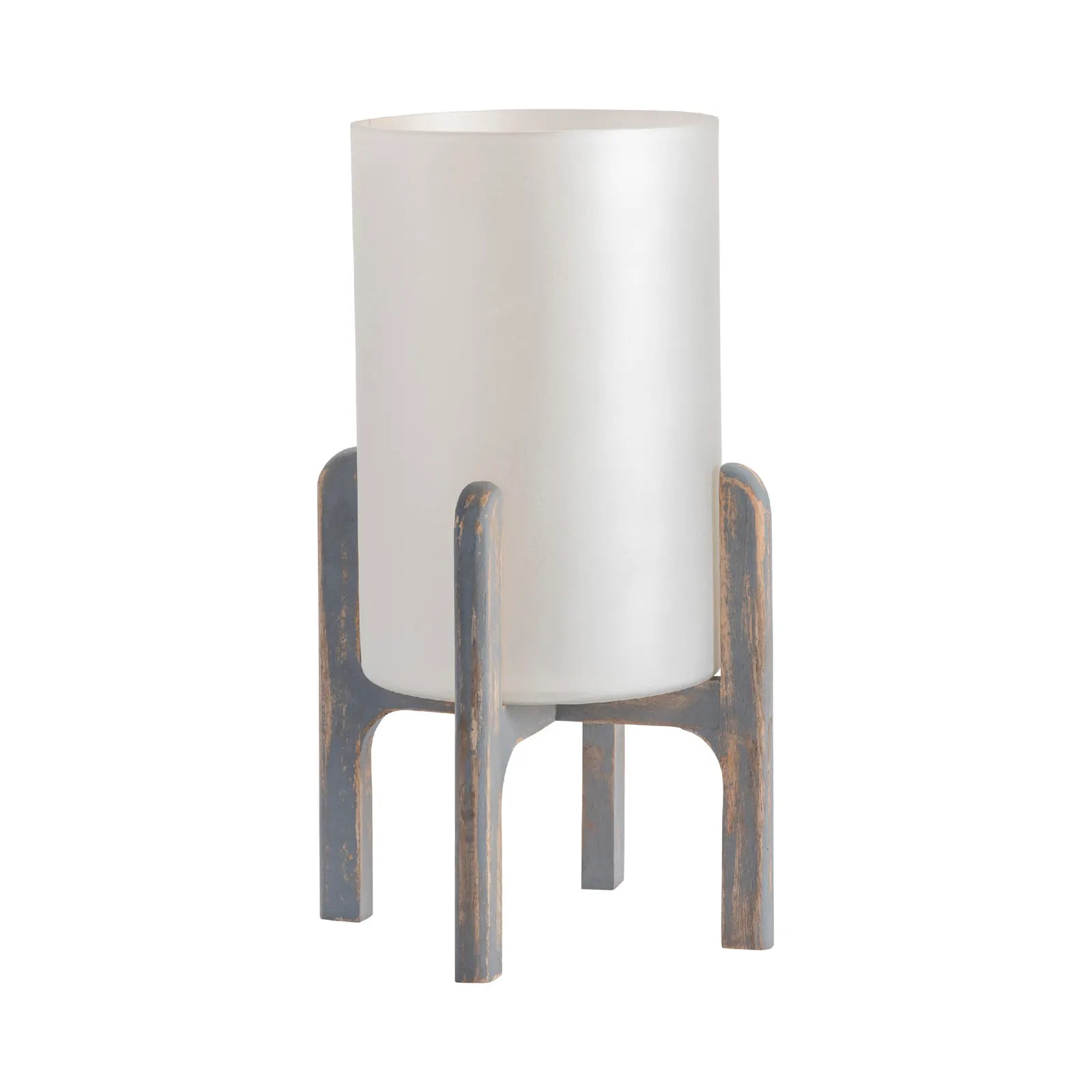 The Crestview Collection Wells Medium Hurricane is the ideal home for a candle or plant. Accent your table or shelf with this decorative, coastal hurricane. A wooden planter stand finished in brown supports a cream-finished cylindrical hurricane to give you a calming piece that will blend with any decor style.